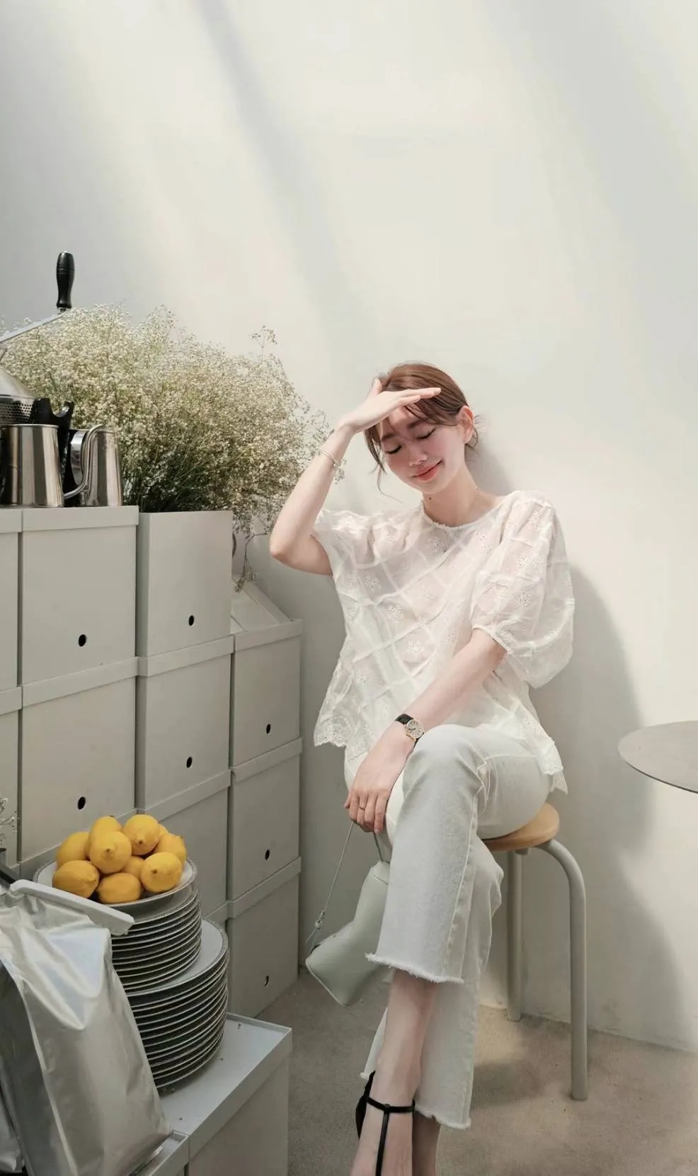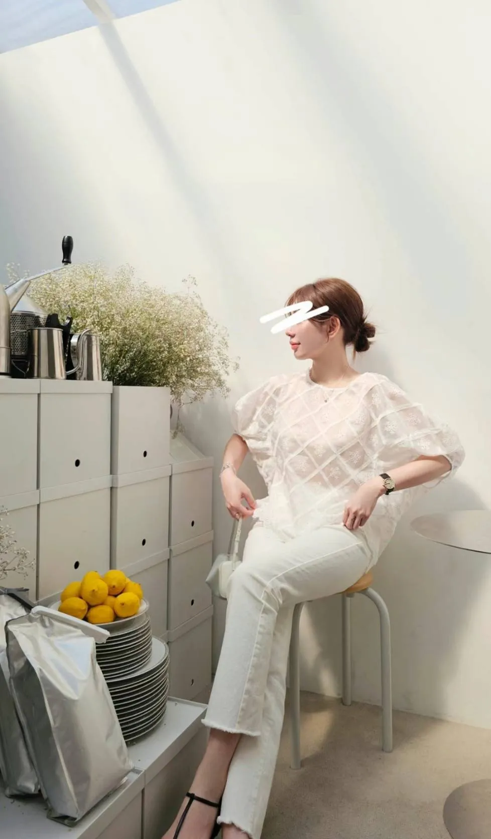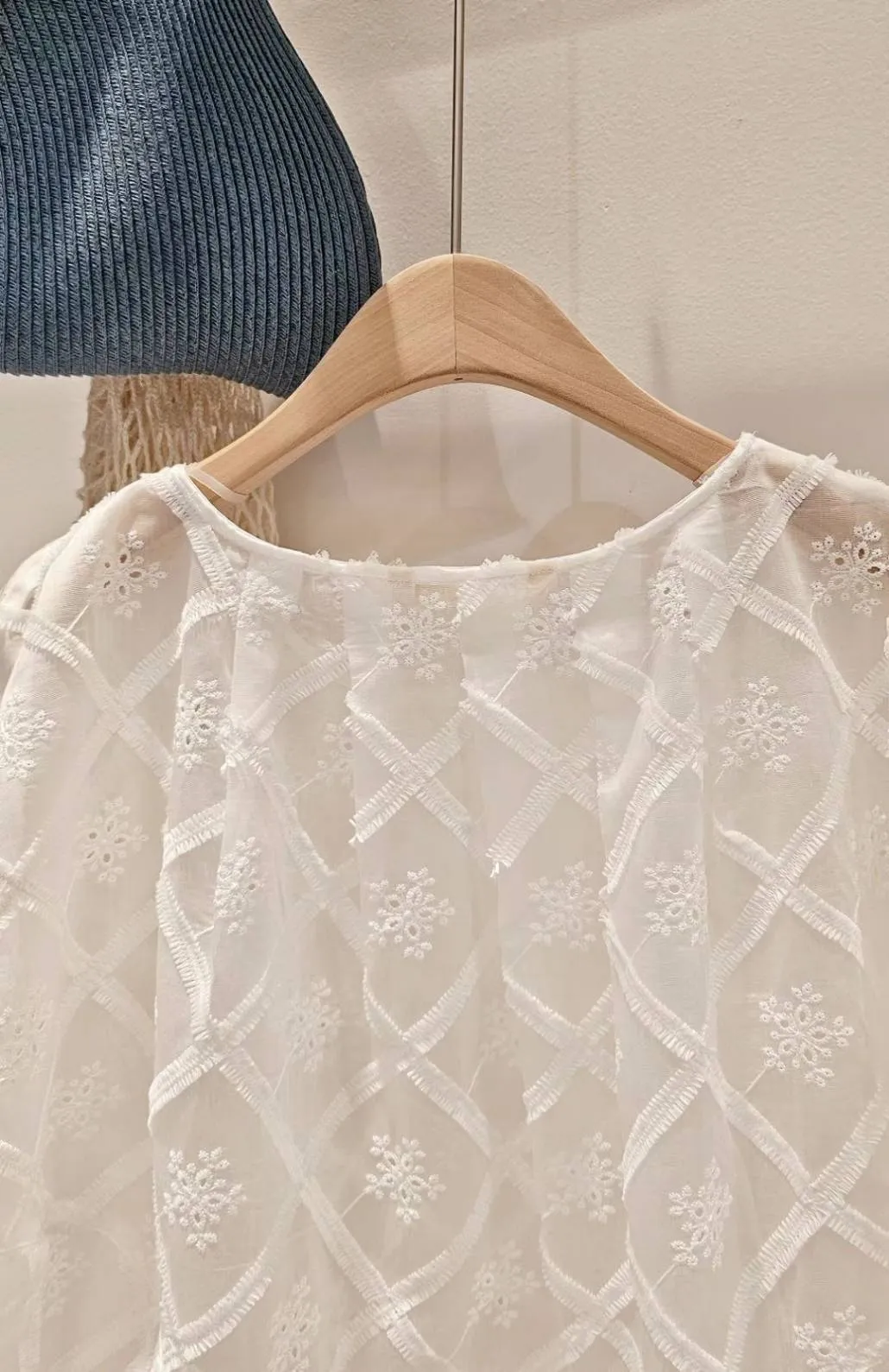天絲空氣感刺繡氣球袖罩衫/白色