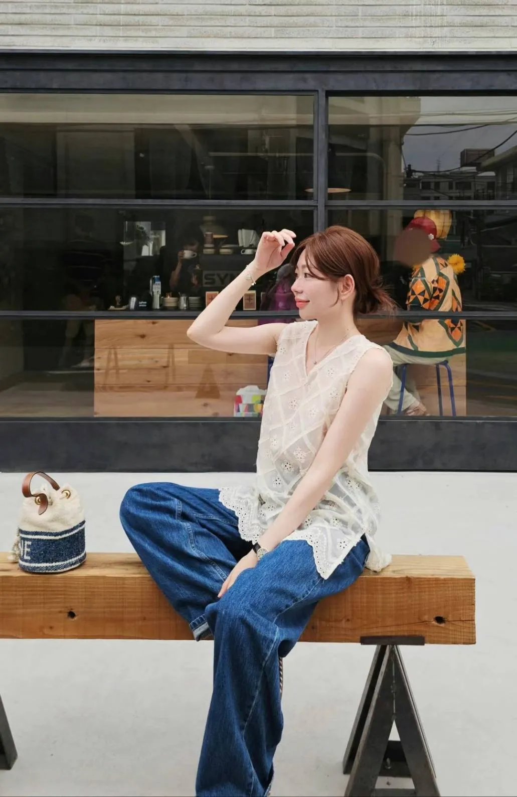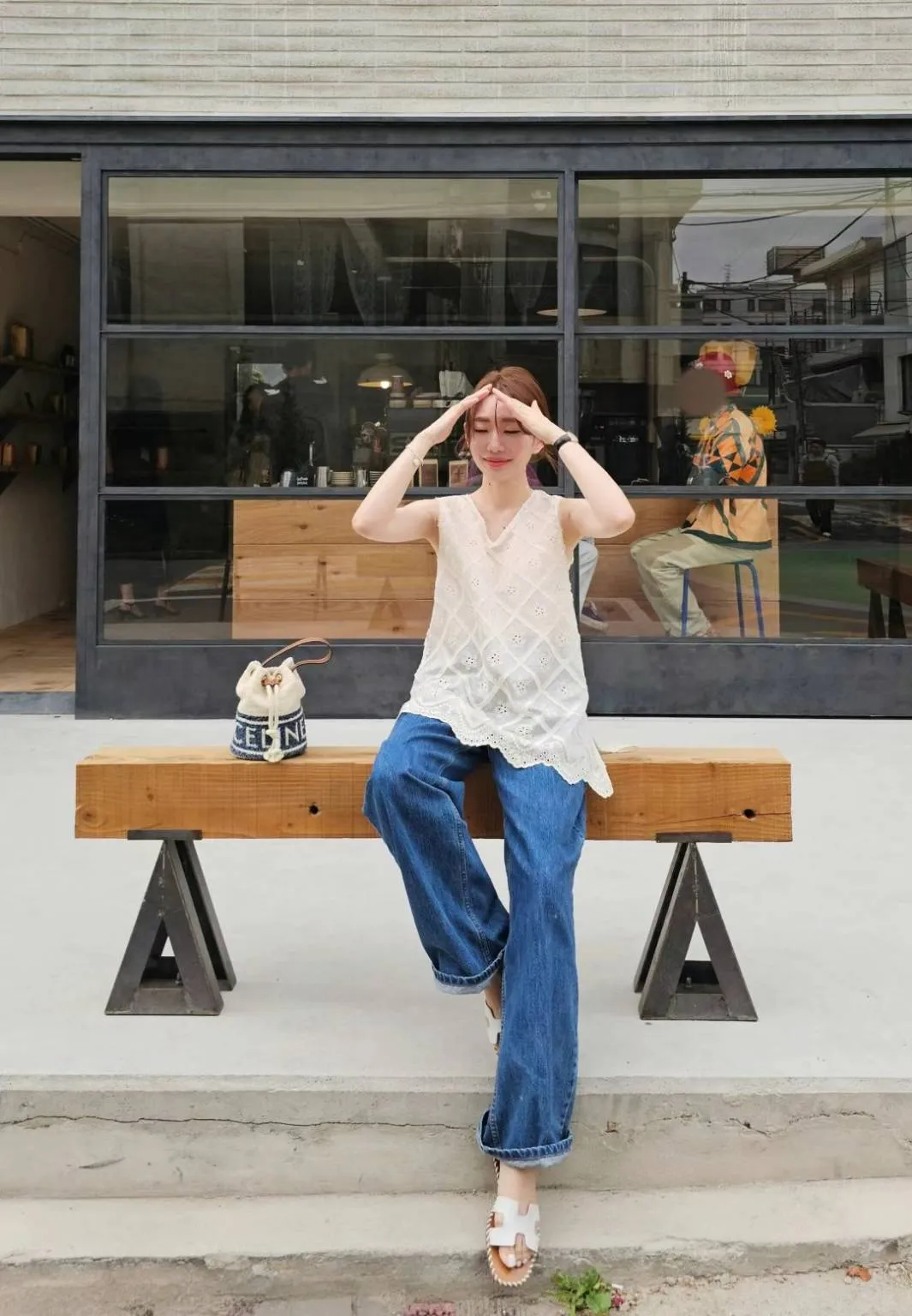 ★搭配:高質感寬筒牛仔褲