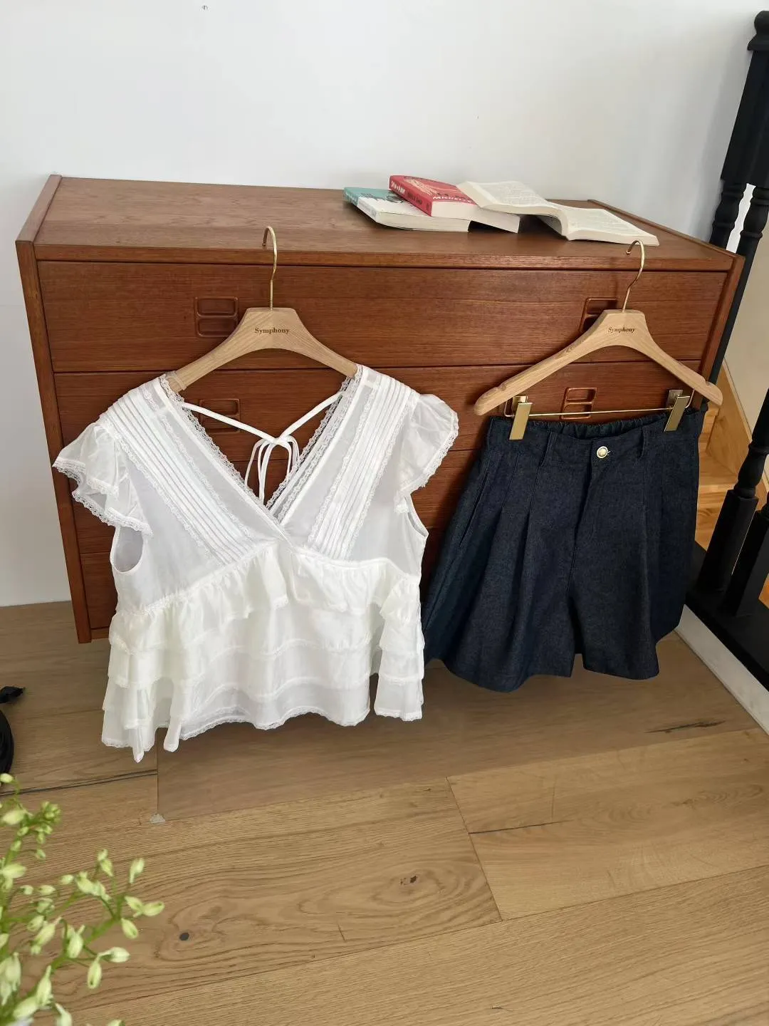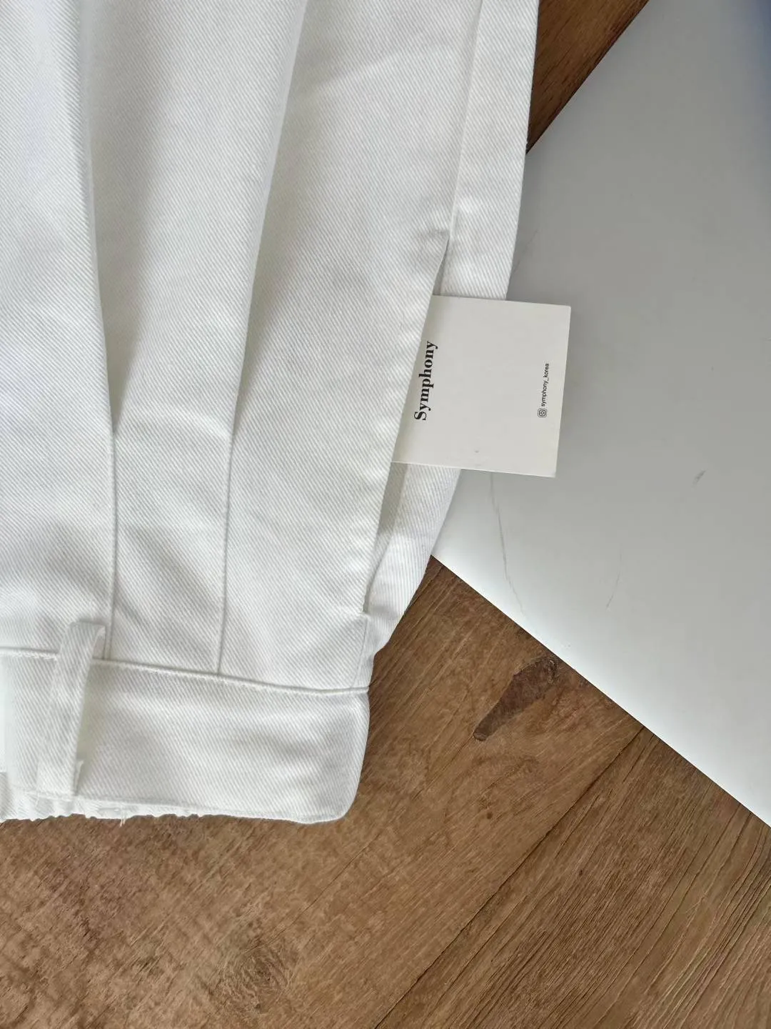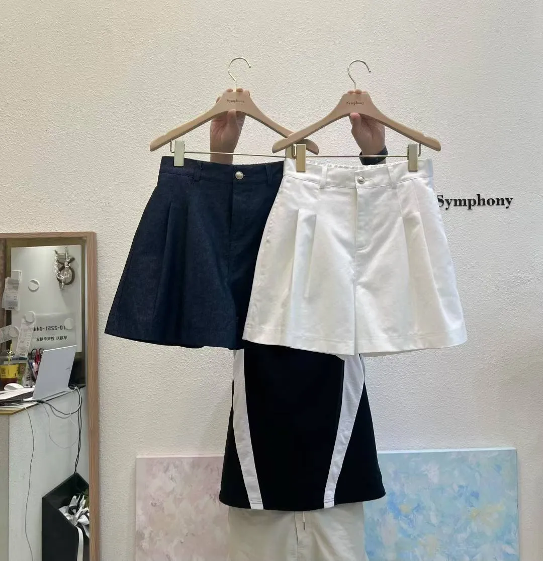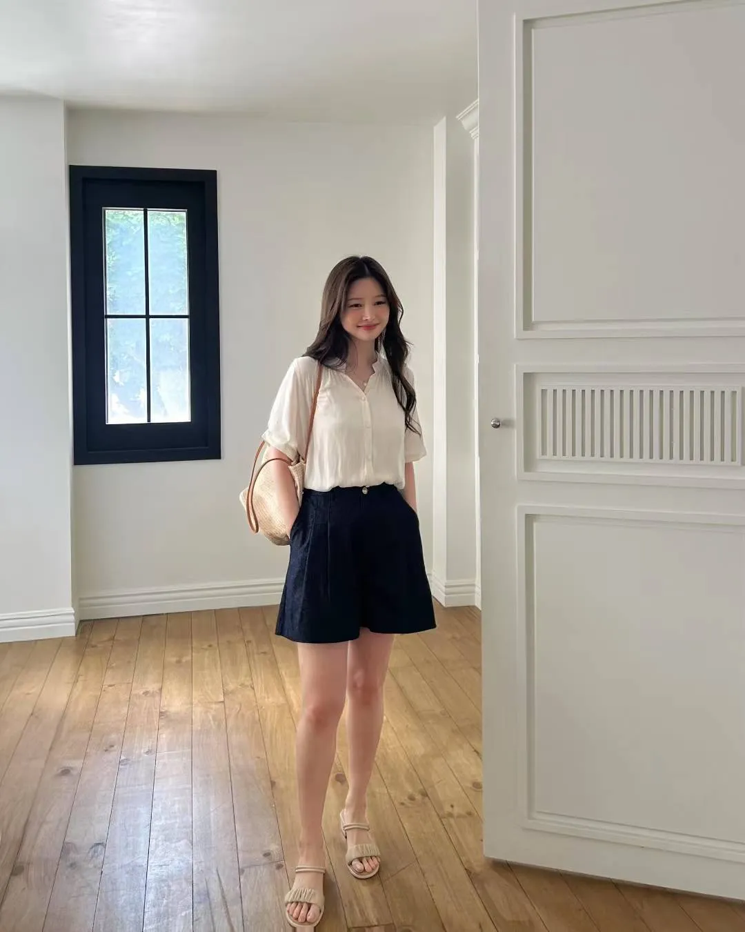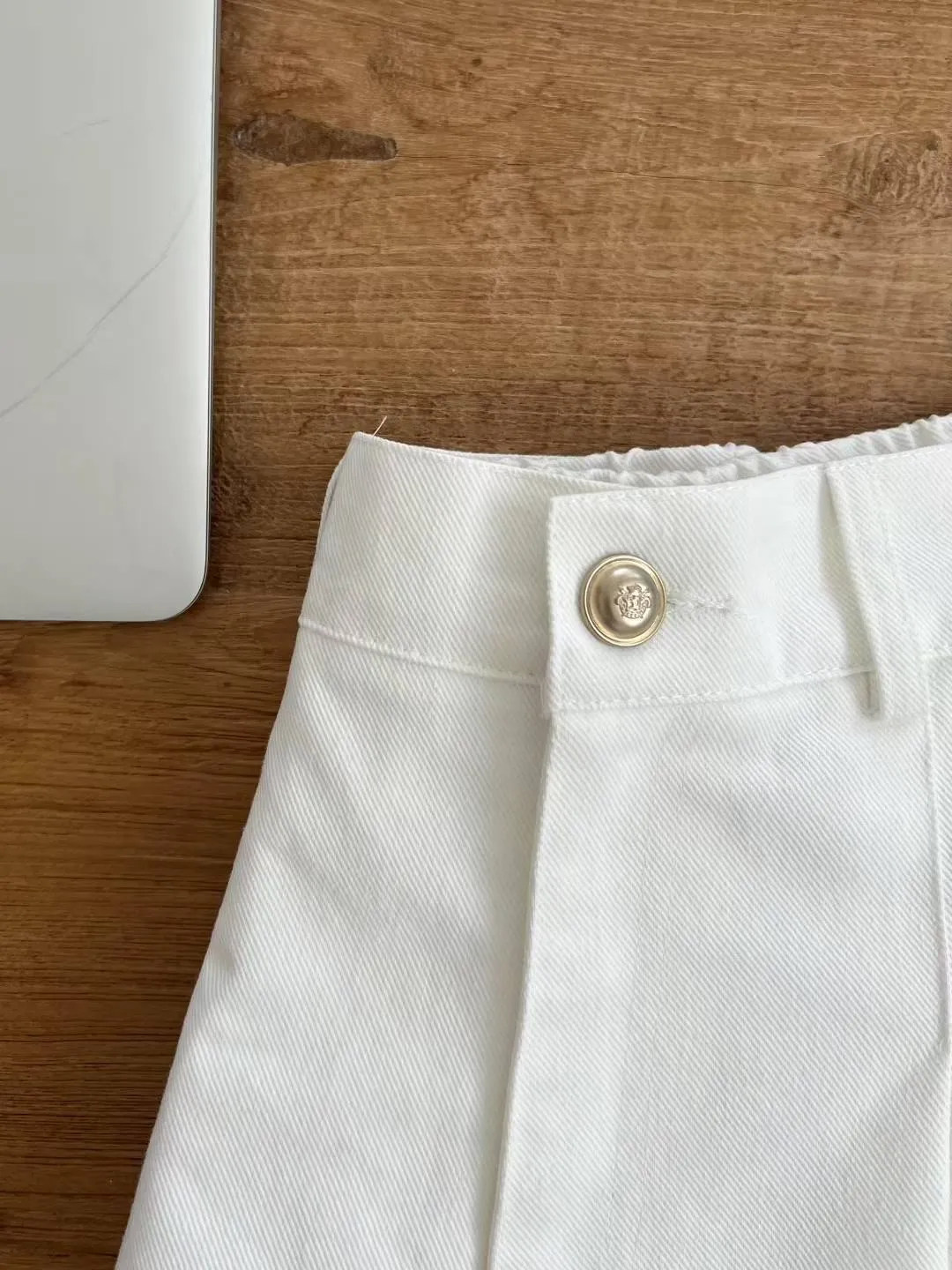 雙摺牛仔短褲▸象牙白▸海軍藍