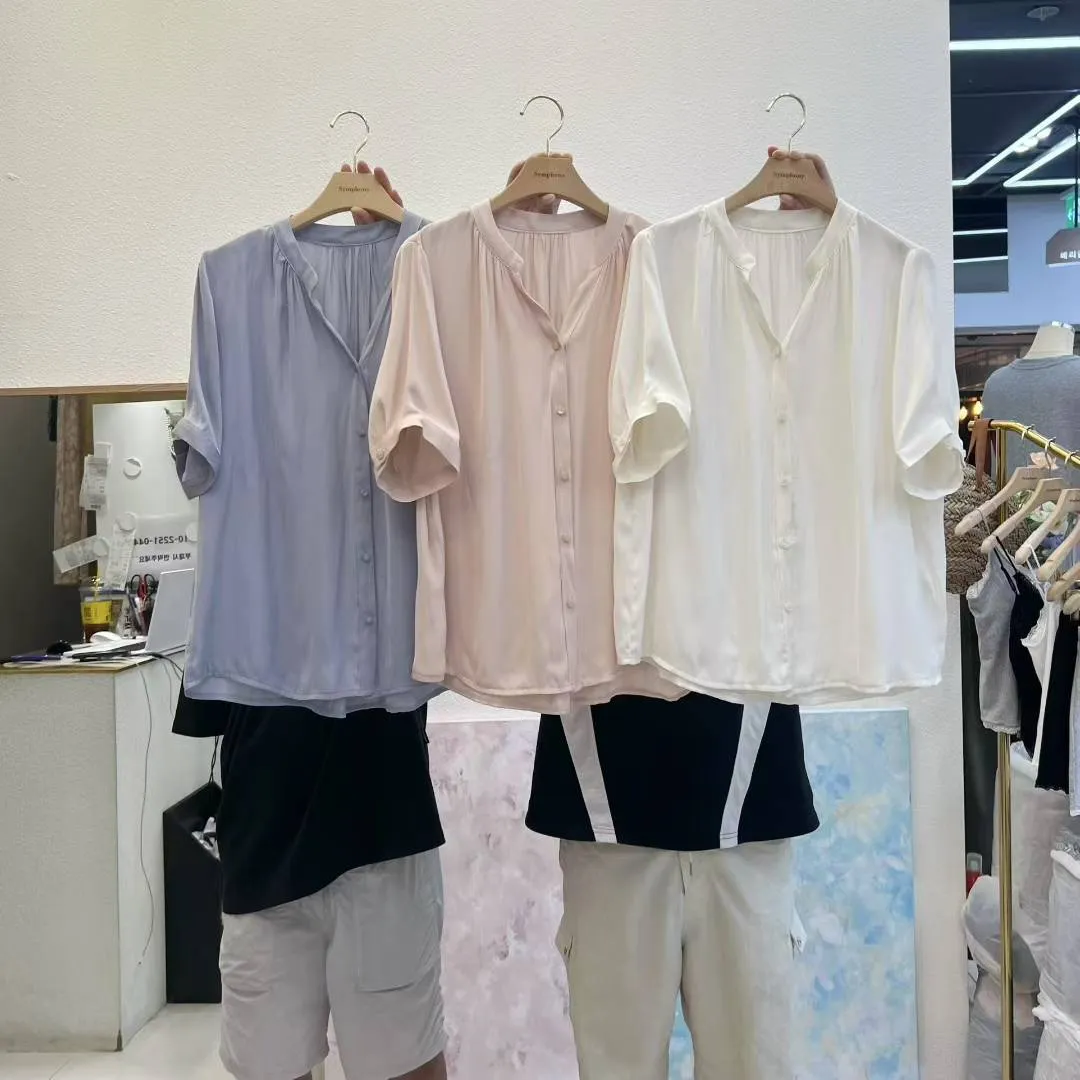 ✤高級天絲涼感牛奶絲滑短袖上衣▸藍▸粉▸象牙白