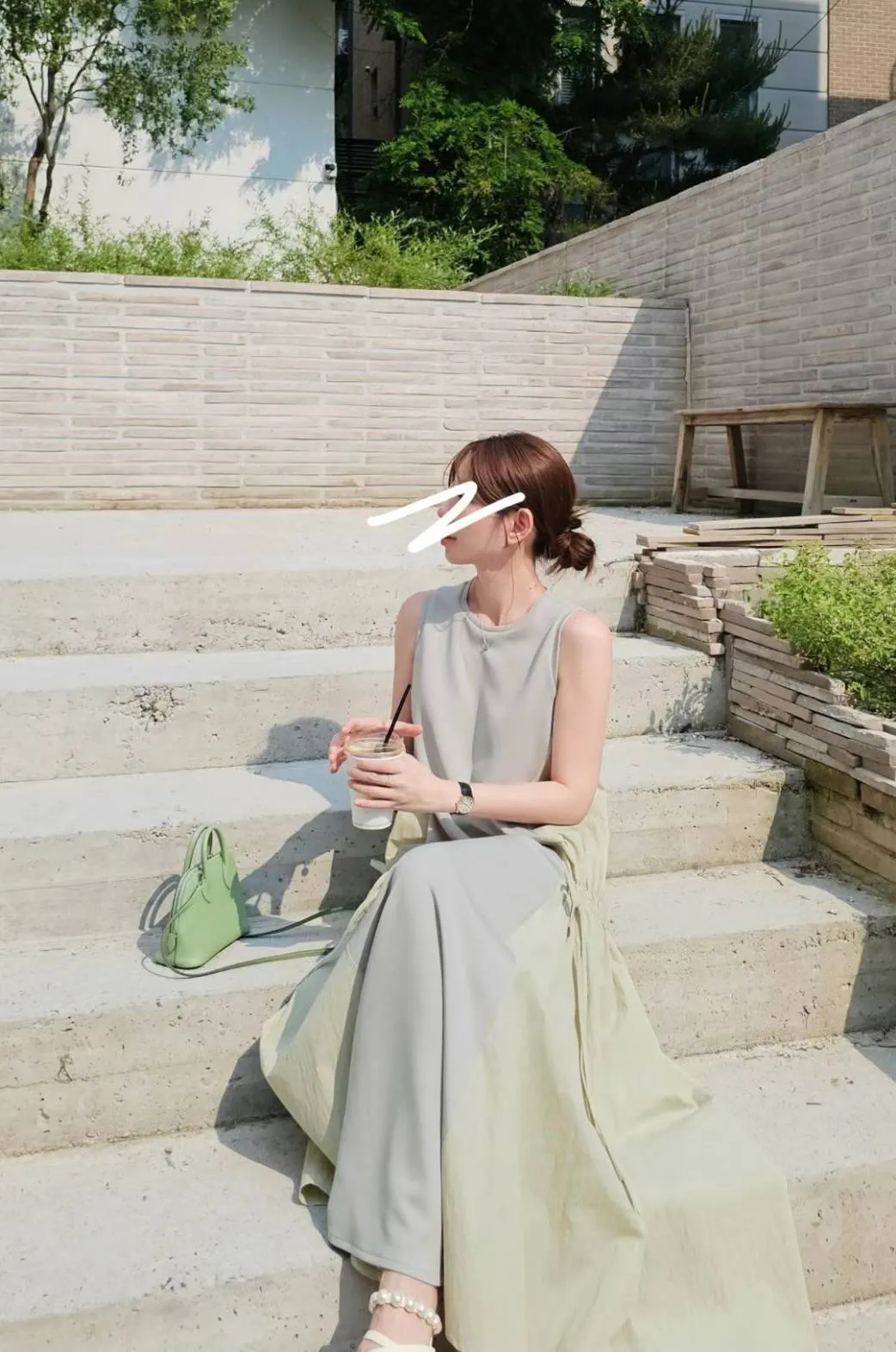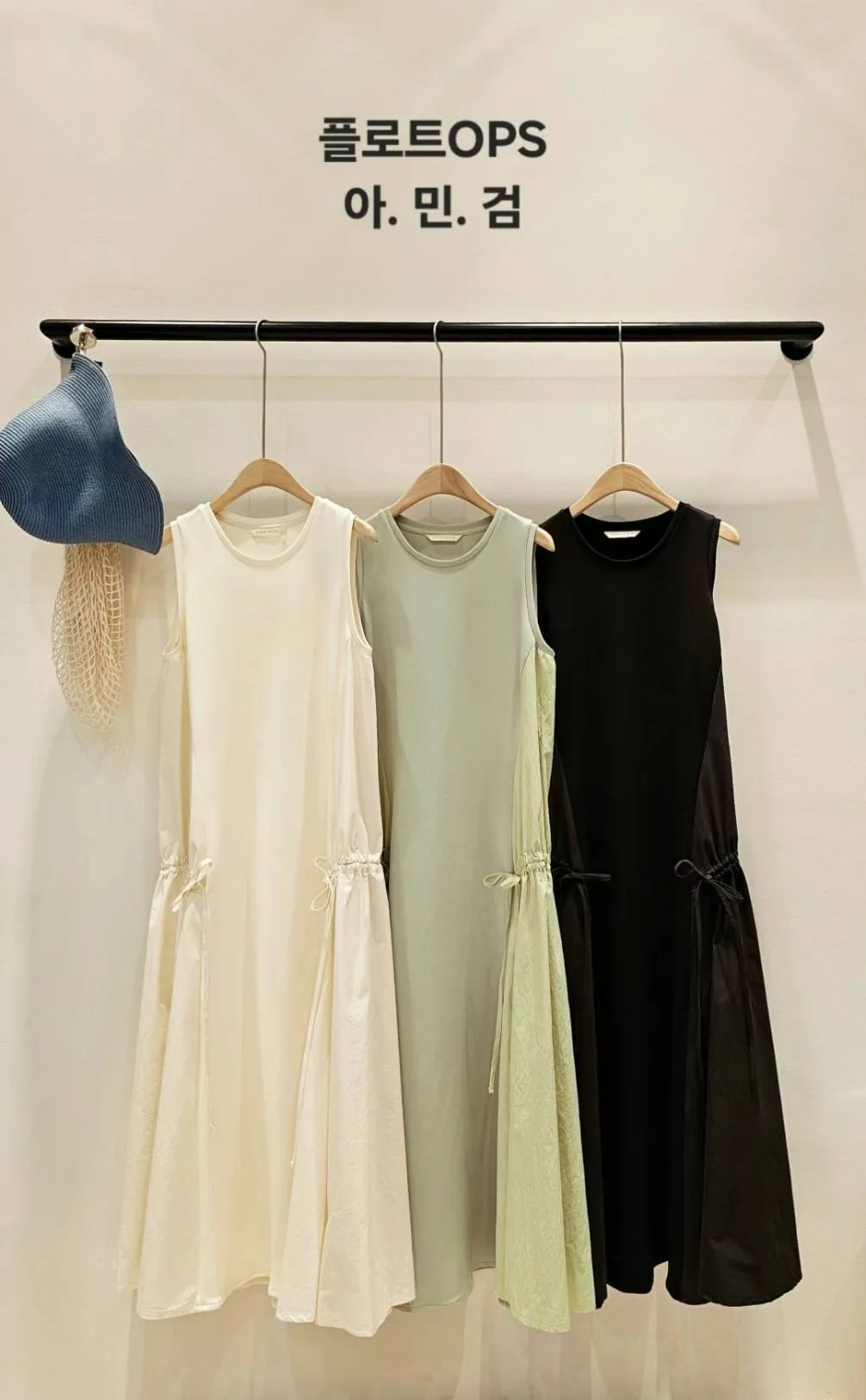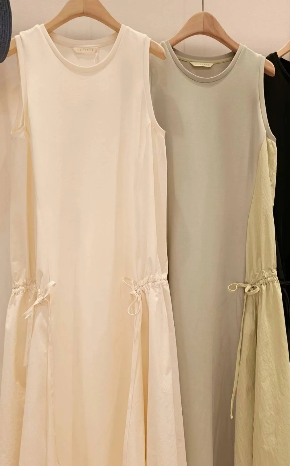 全店正韓選品✤異材質綁帶傘狀長洋裝▸薄荷色