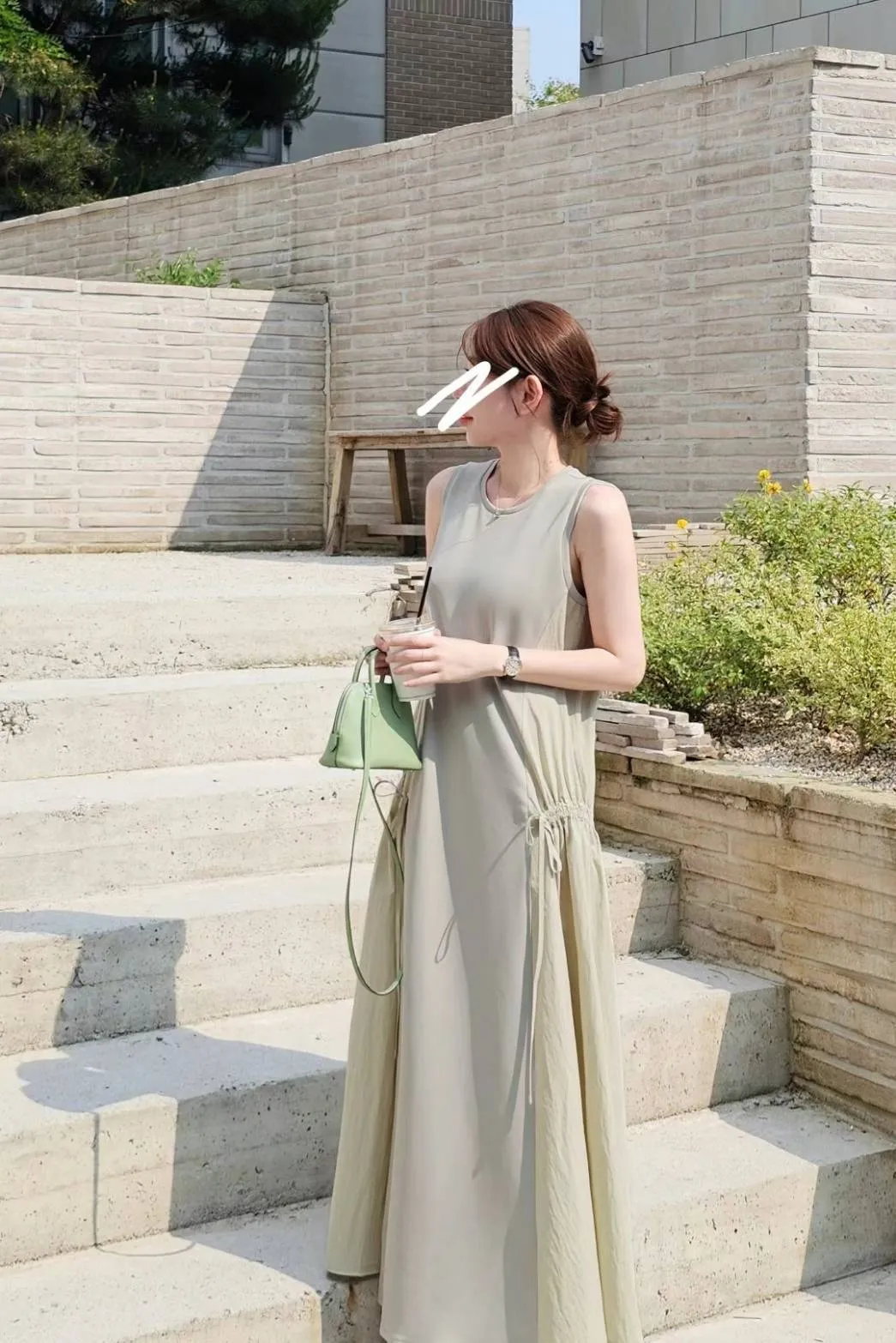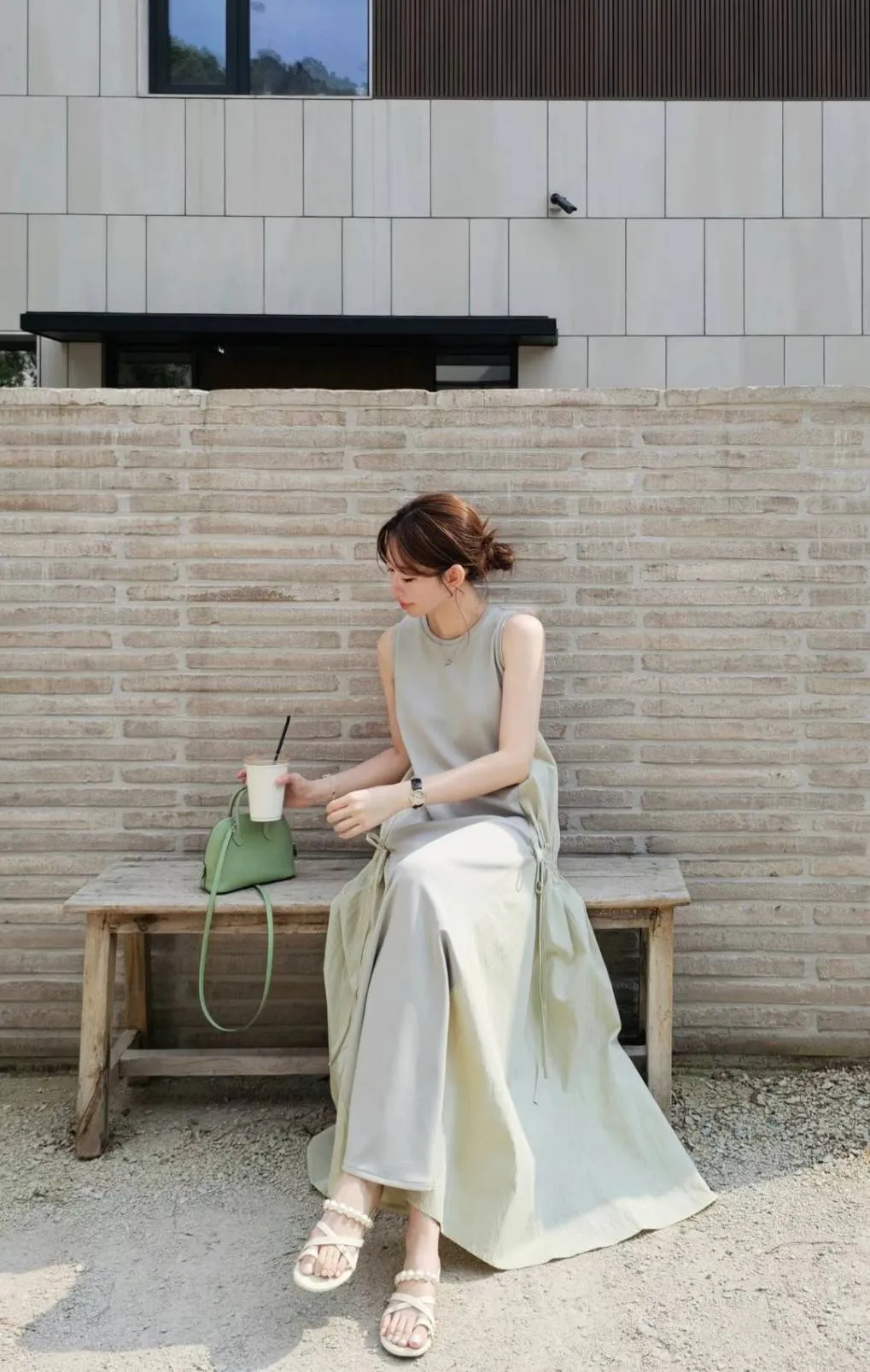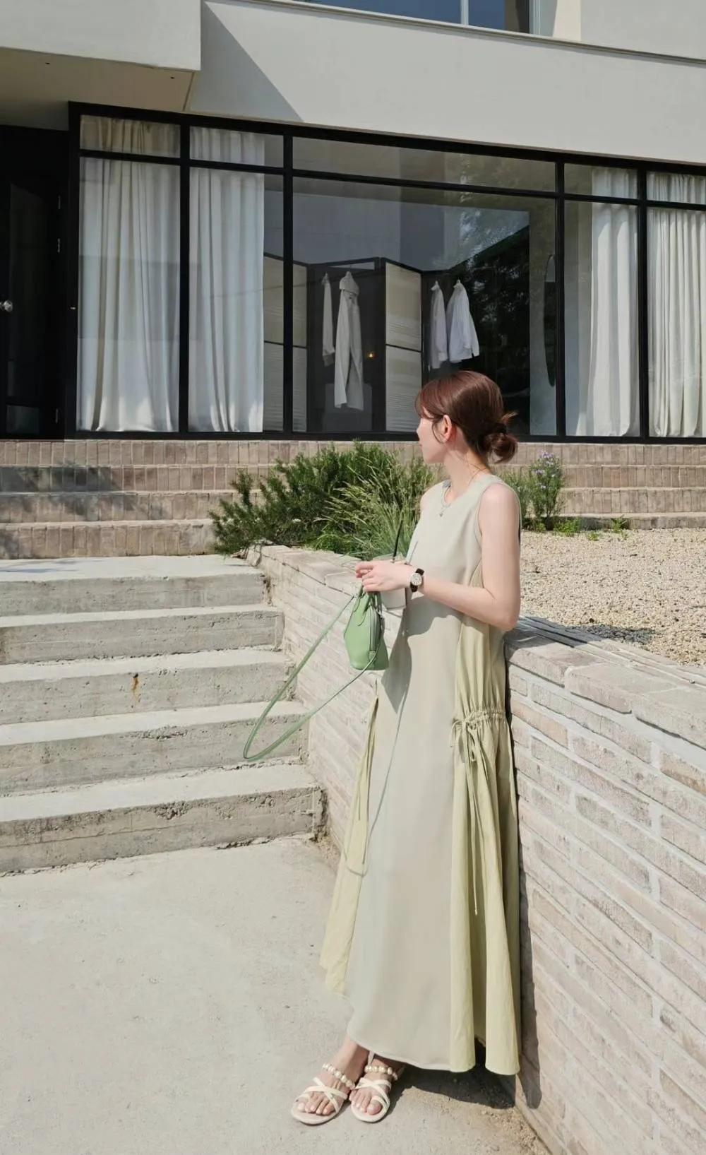 全店正韓選品✤異材質綁帶傘狀長洋裝▸薄荷色