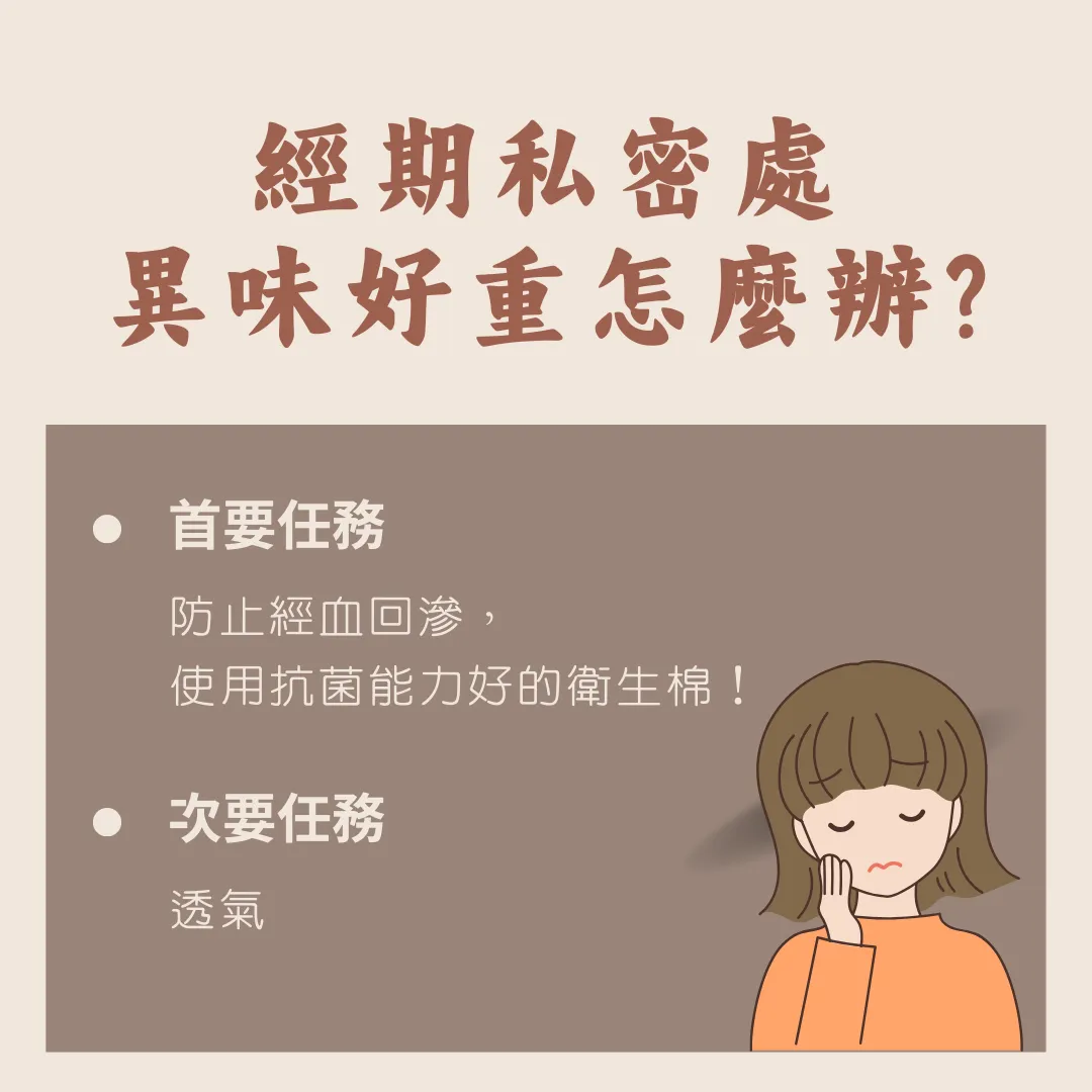 那個來的時候容易產生大量細菌,有異味是很正常的現象。🔻如何減輕異味?🔻我們在衛生棉的草本中添加了苦參以及蛇床子。它們能夠在衛生棉上面建立一層保護膜,用來隔絕這些細菌,避免發生二次或交叉感染🔄加上獨家設計防回滲🚫透氣底層🌬️大大減少更多細菌的滋生🦠異味自然就減輕許多囉~~~😉