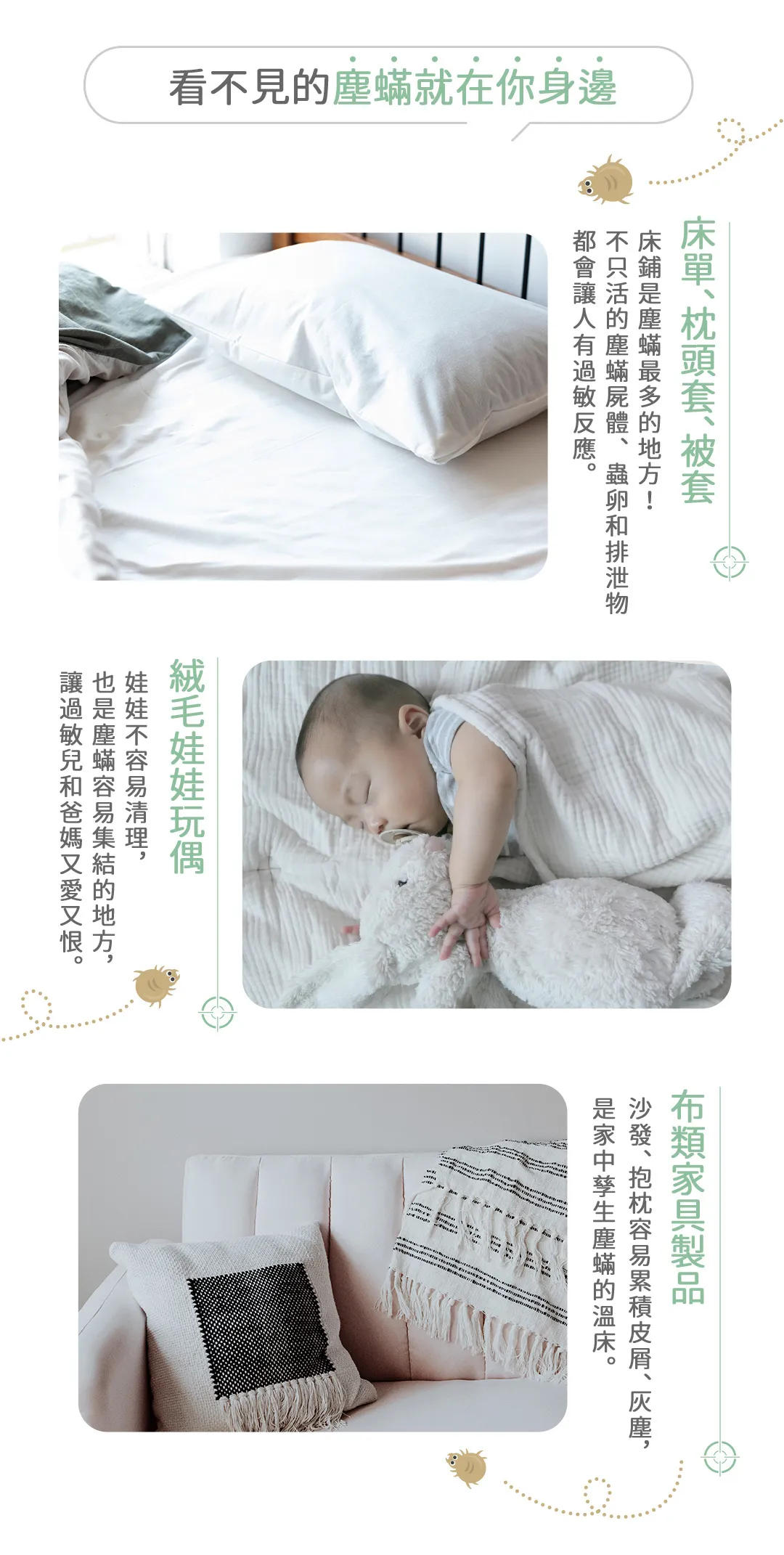 ✔獨家ProtEx敏原防護因子,洗淨塵蟎屍體、蟲卵、排泄物