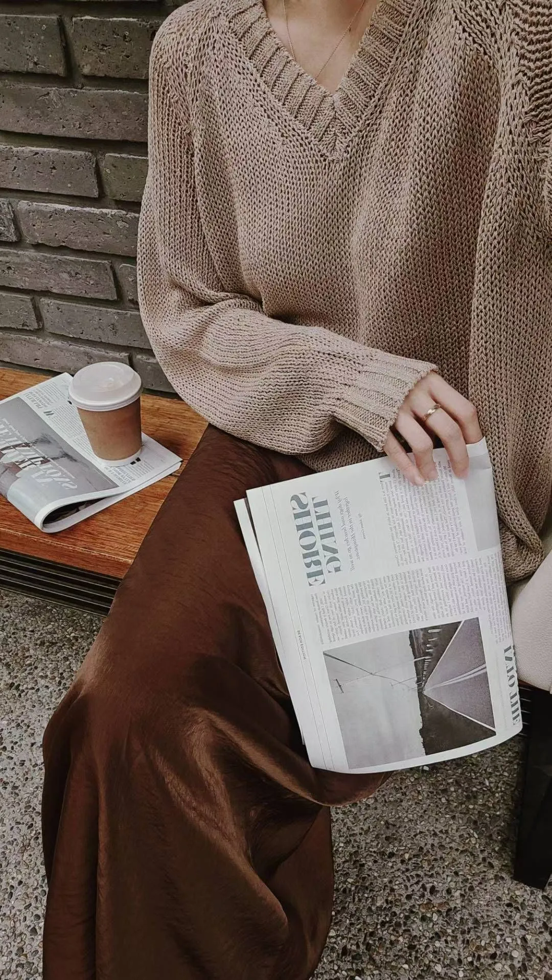 基礎經典V領針織衫版型,隨性慵懶鬆弛感滿滿,