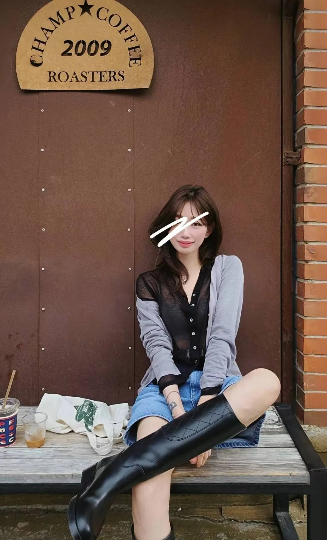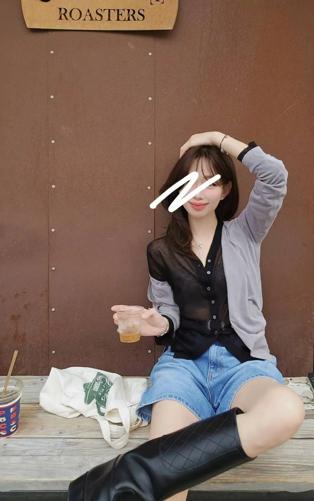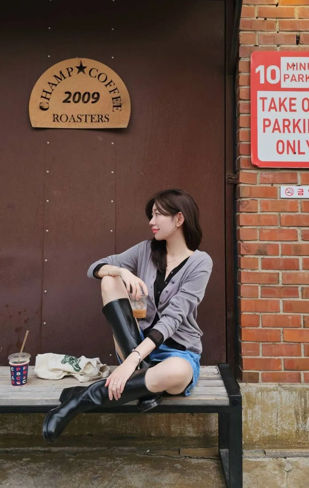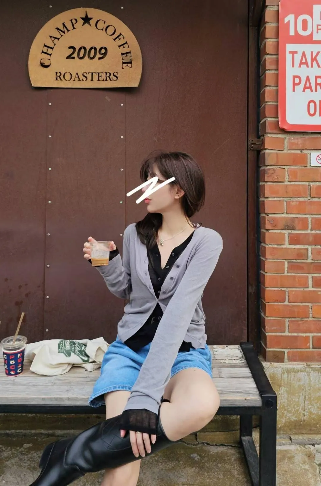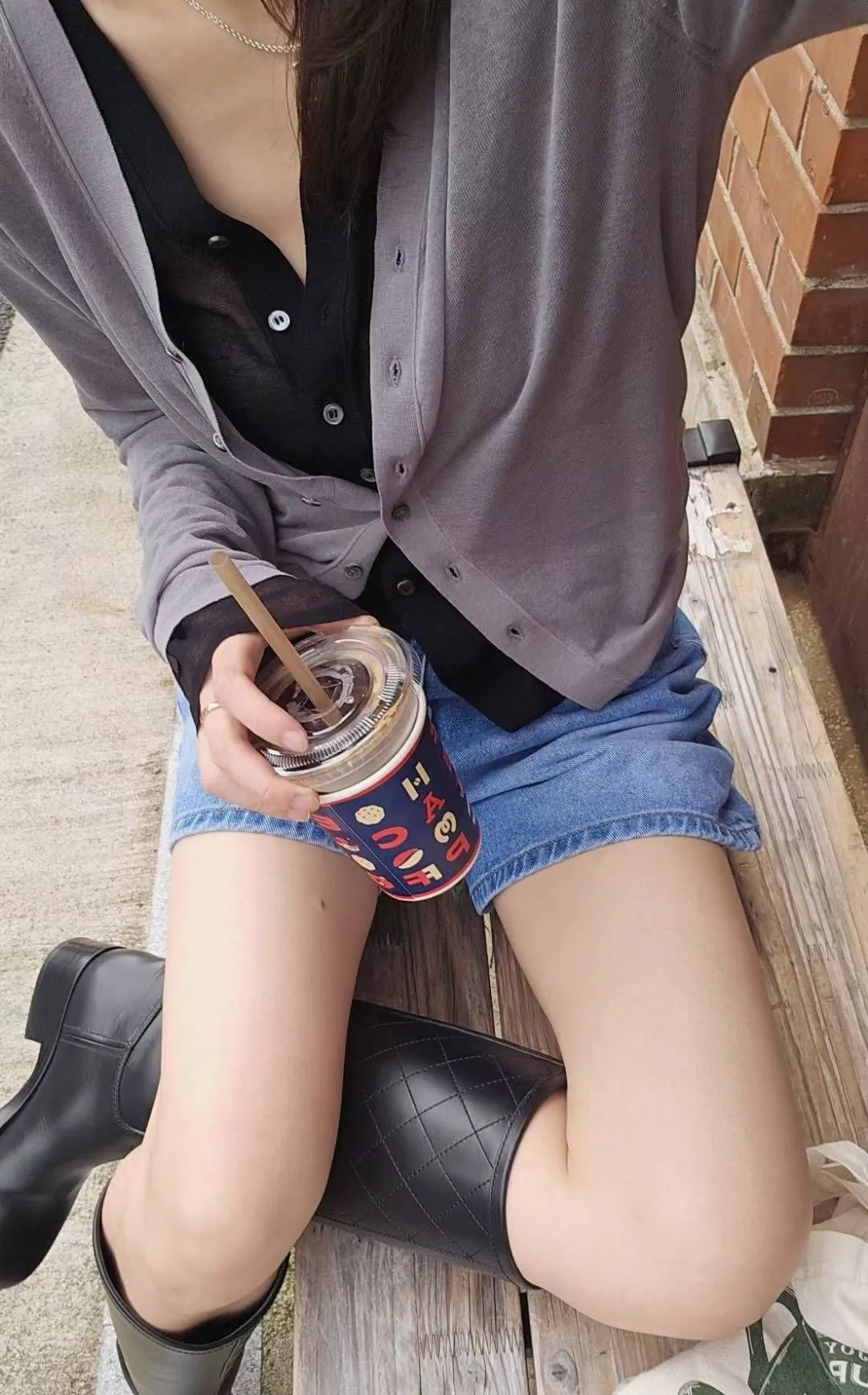 ★搭配:灰+黑色疊穿/ 時髦牛仔短褲