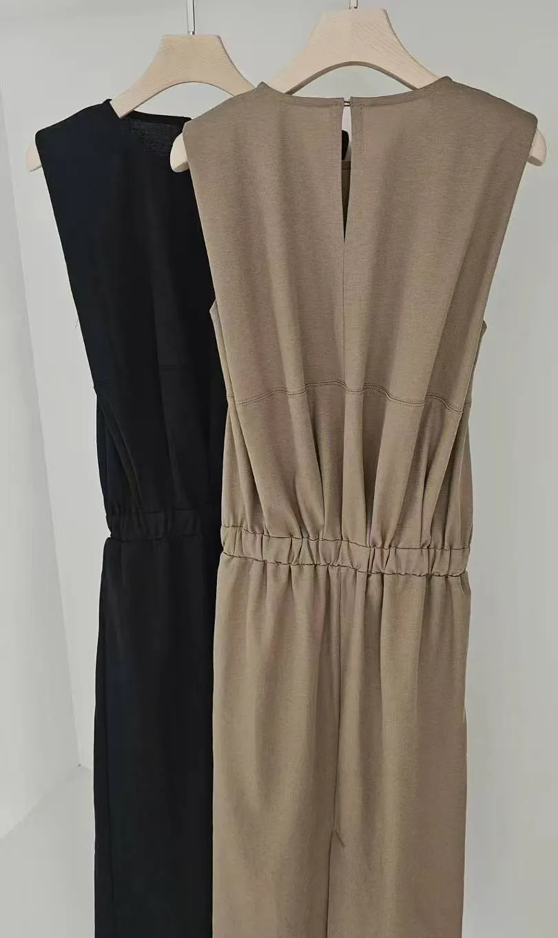 腰部有鬆緊,兩側口袋,後開衩,有內裡
