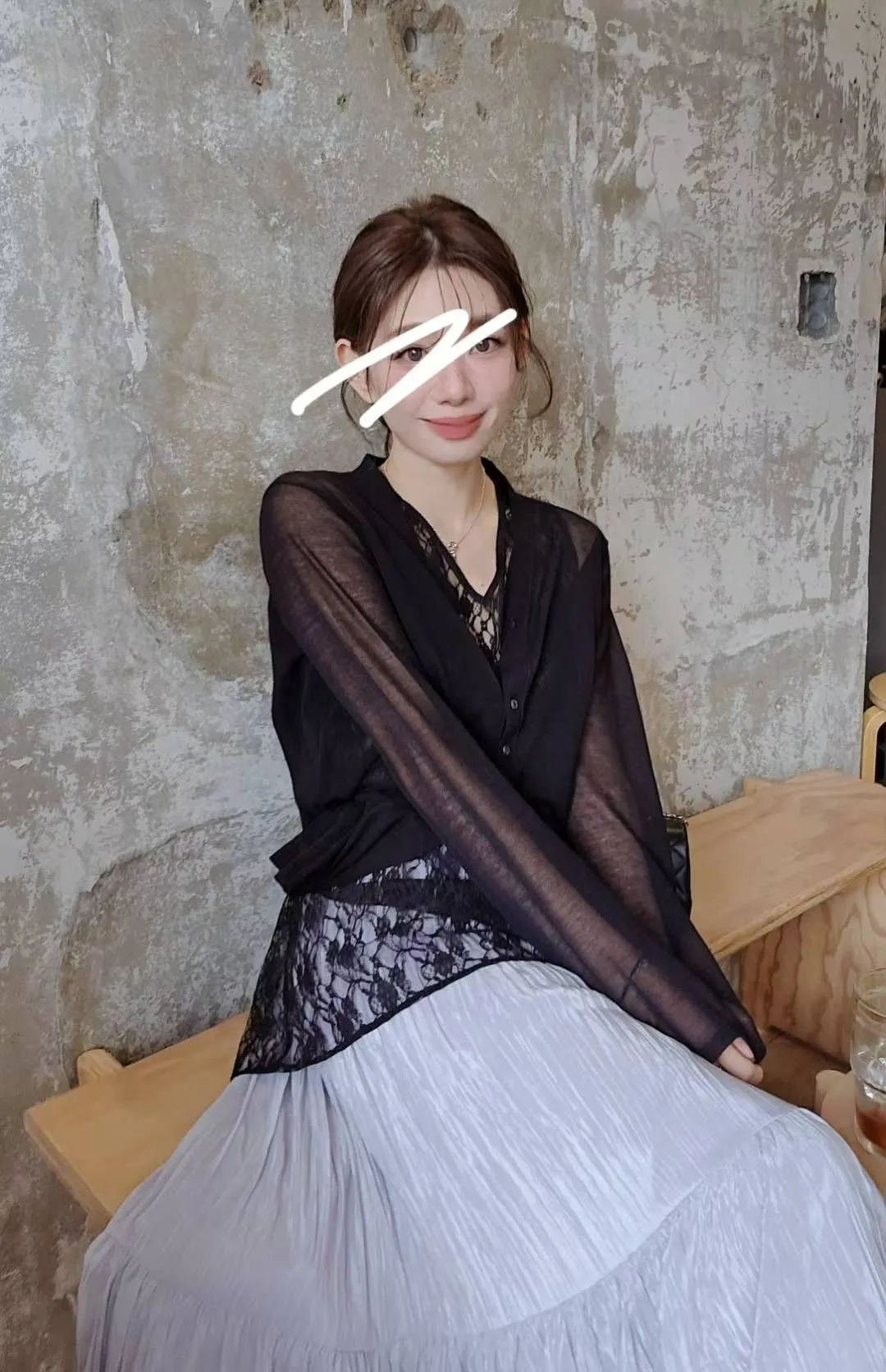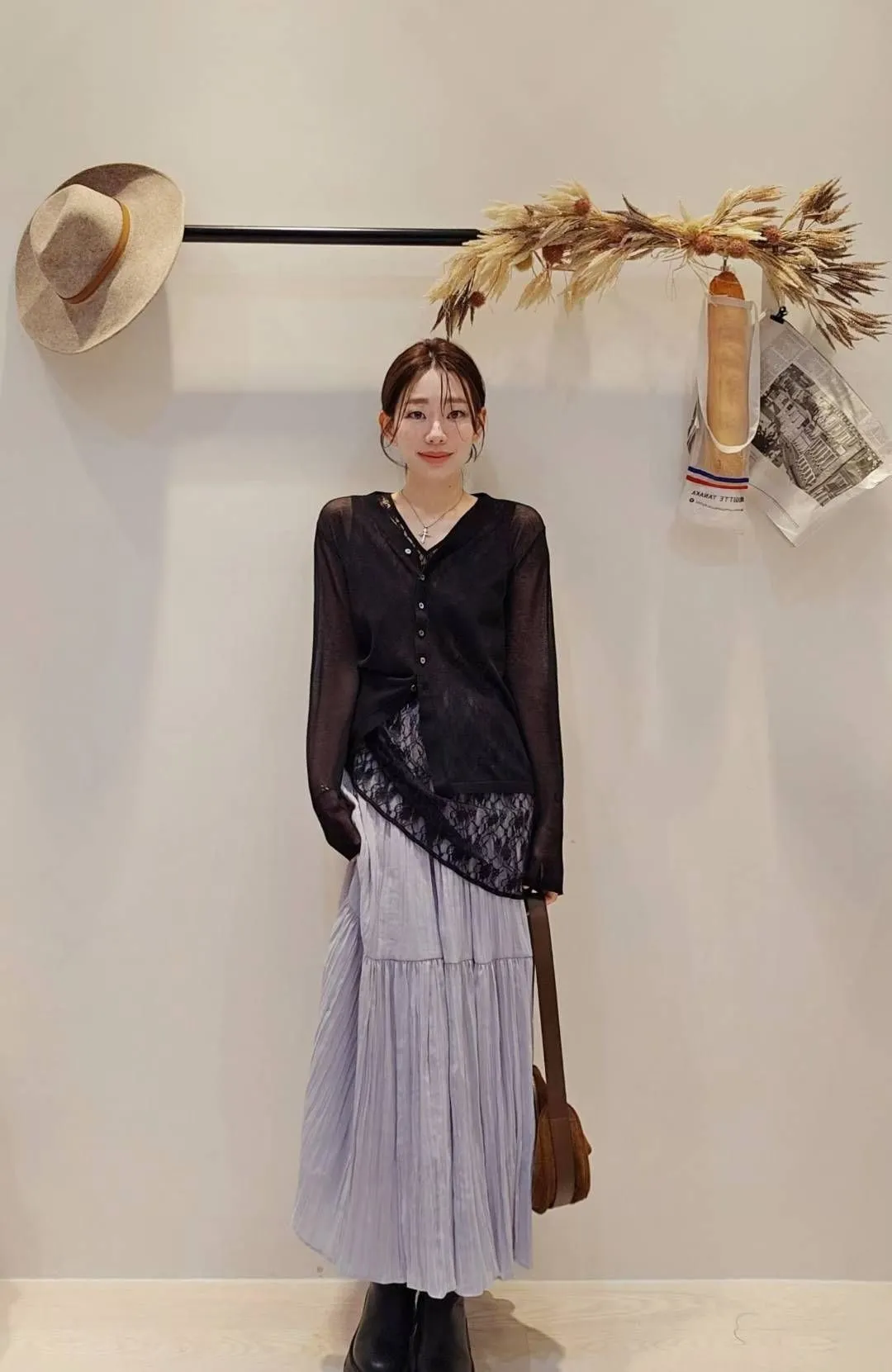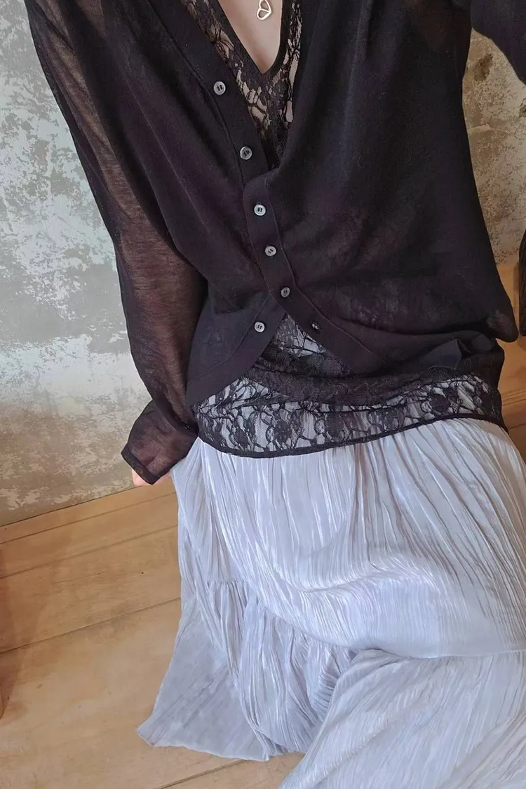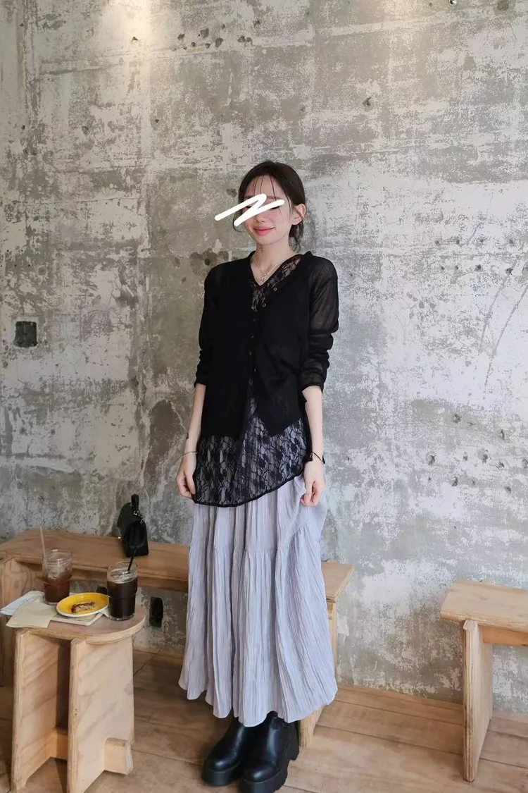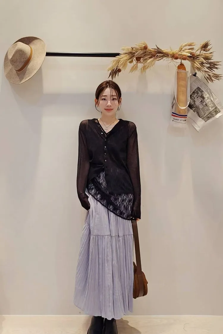 ★搭配:空氣感透肌針織開衫+仙女的皺皺傘裙