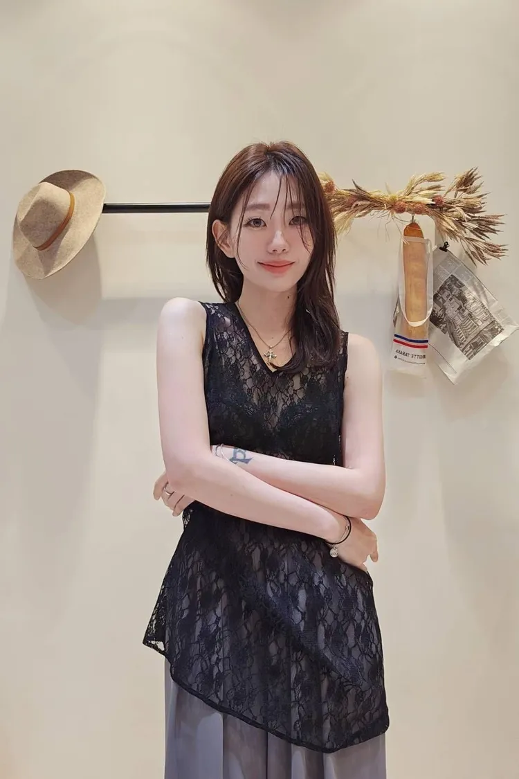 搭配好物V領蕾絲長背心/