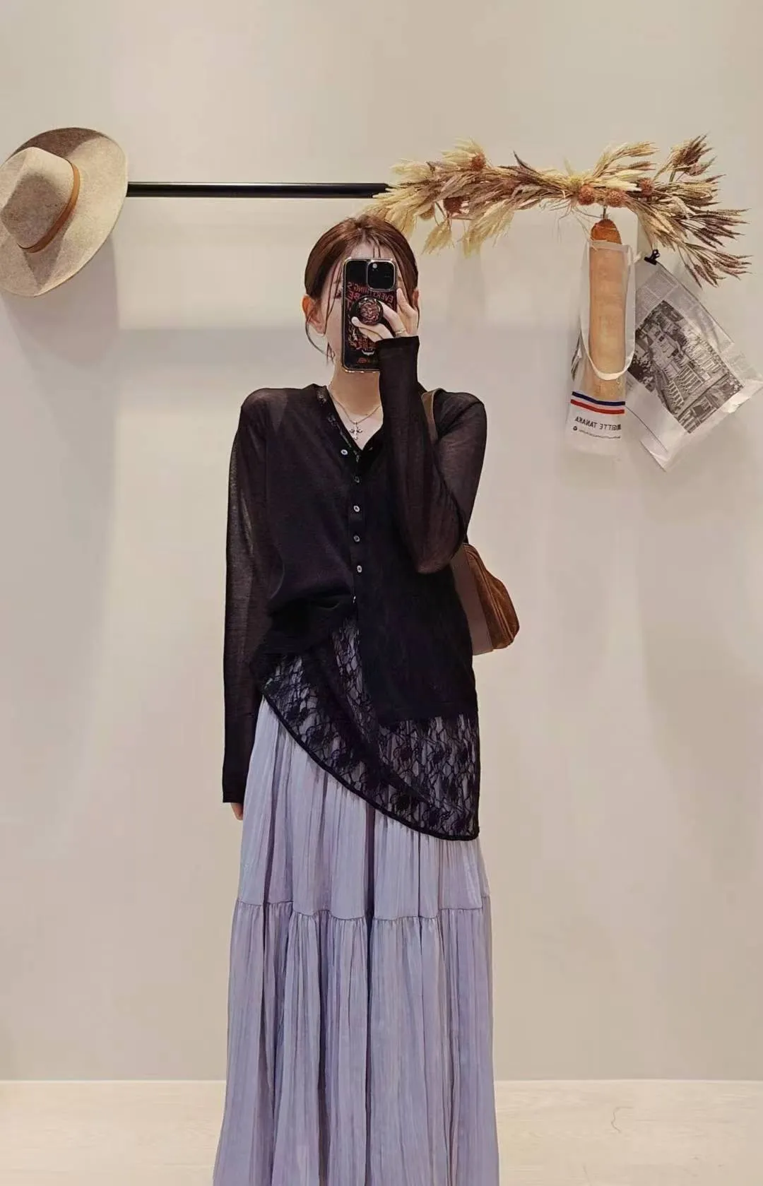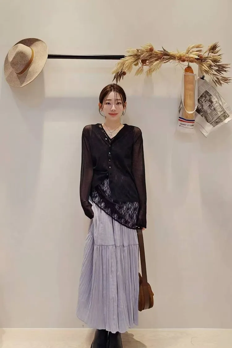 ★搭配:透肌感超細針織開衫+未來款蕾絲背心