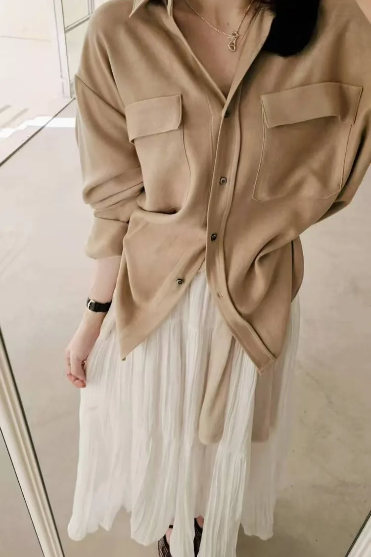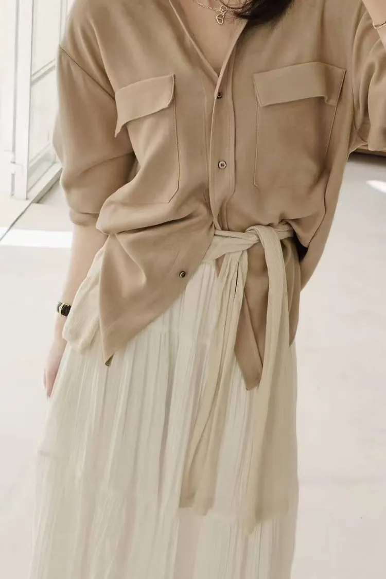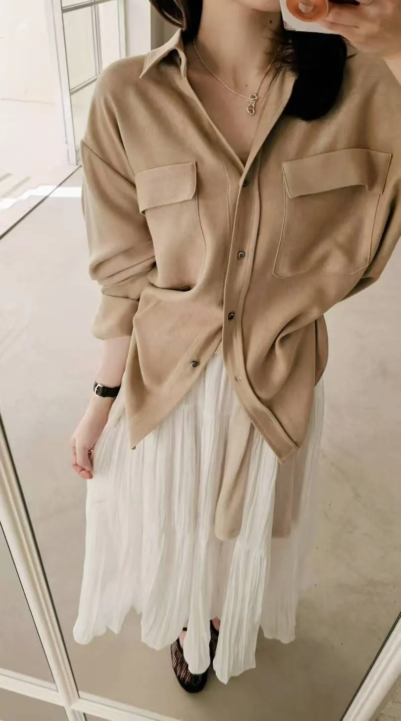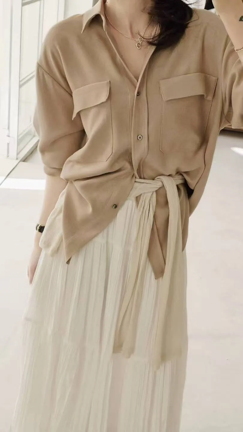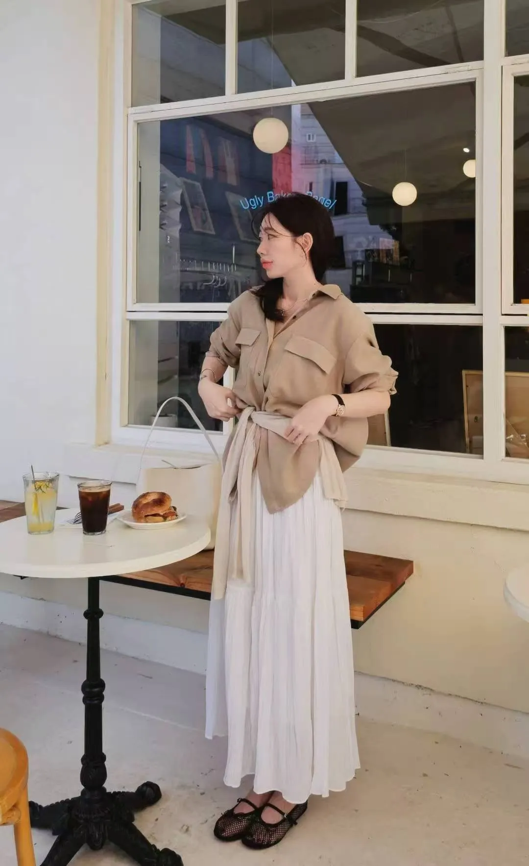 ★搭配:亨利領天絲羊毛T+未來款長裙