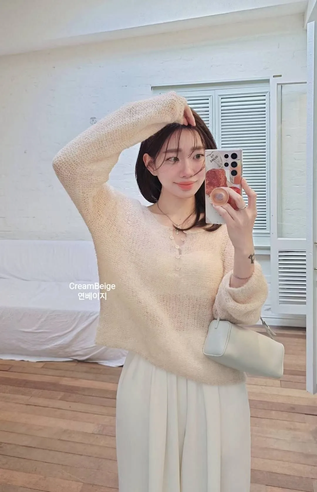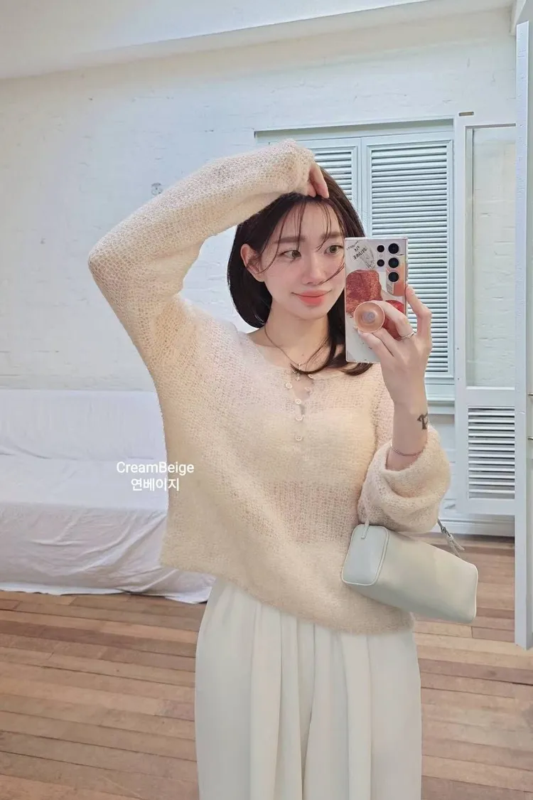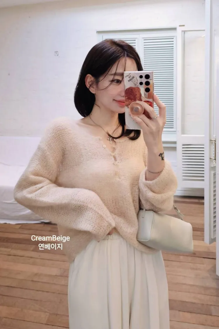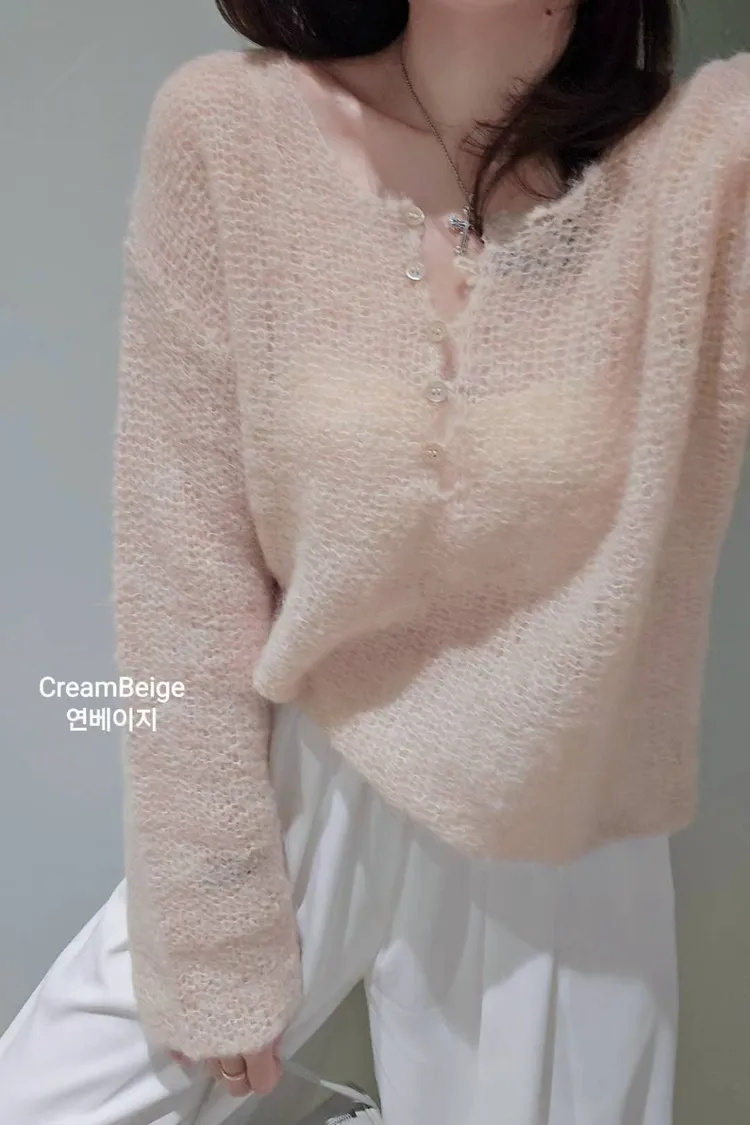 ✤全店正韓選品✤溫柔到心坎的羊駝毛毛衣▸淺杏▸米白▸珊瑚粉