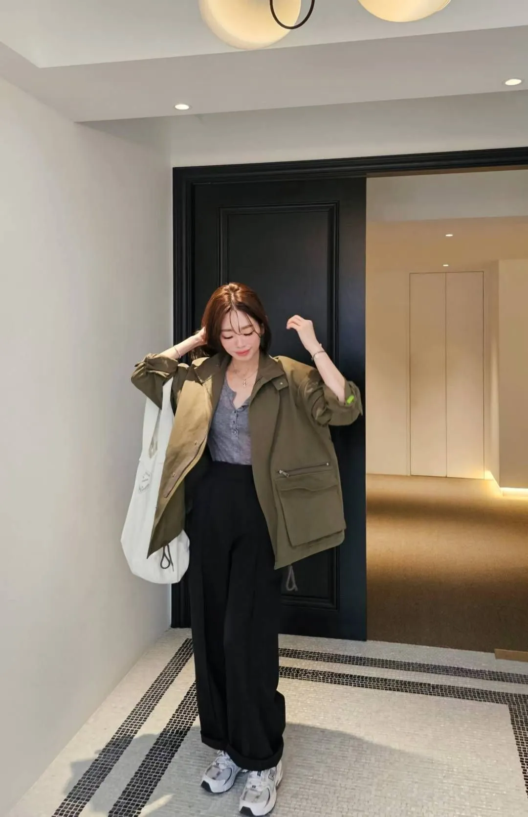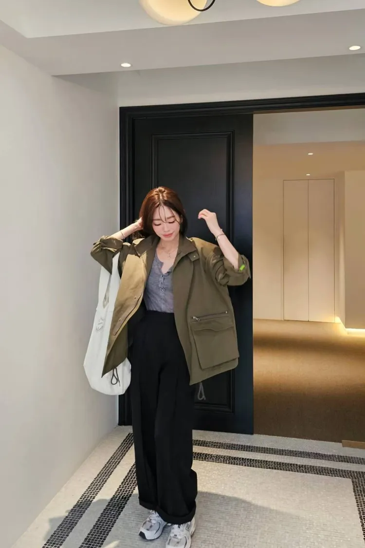 ★搭配:亨利領天絲羊毛T+俐落工裝休閒外套