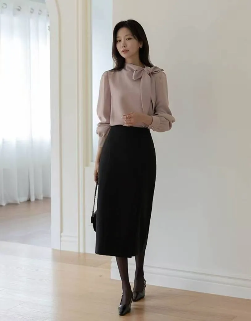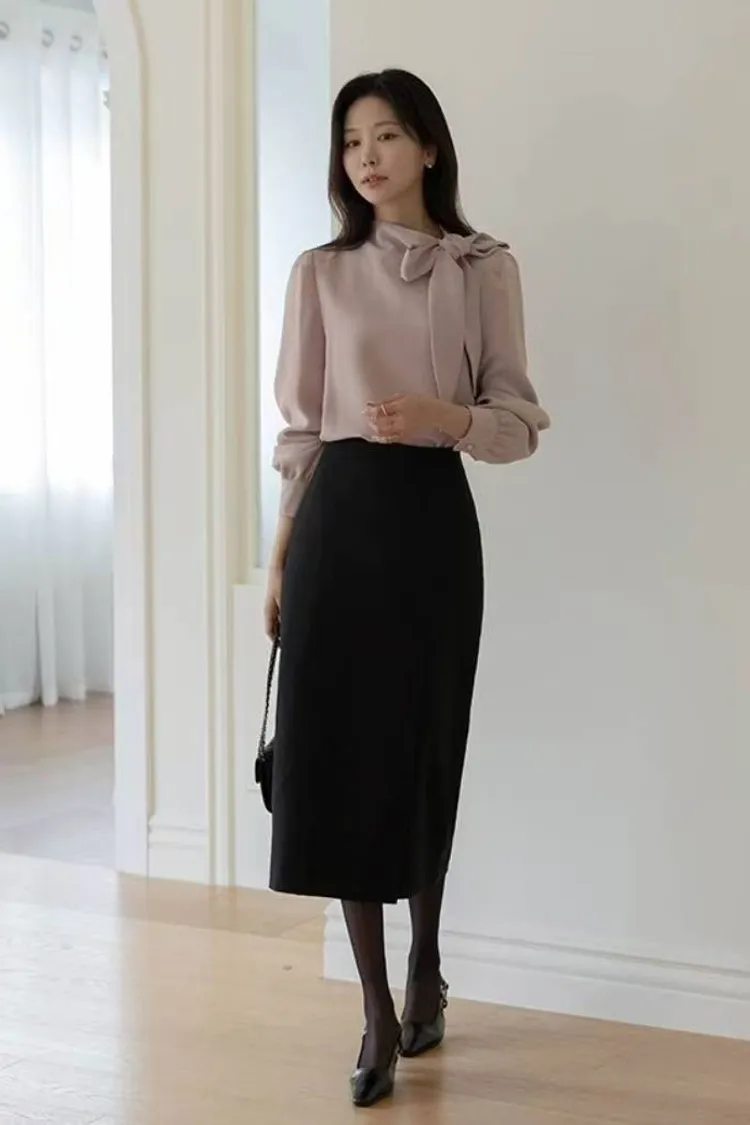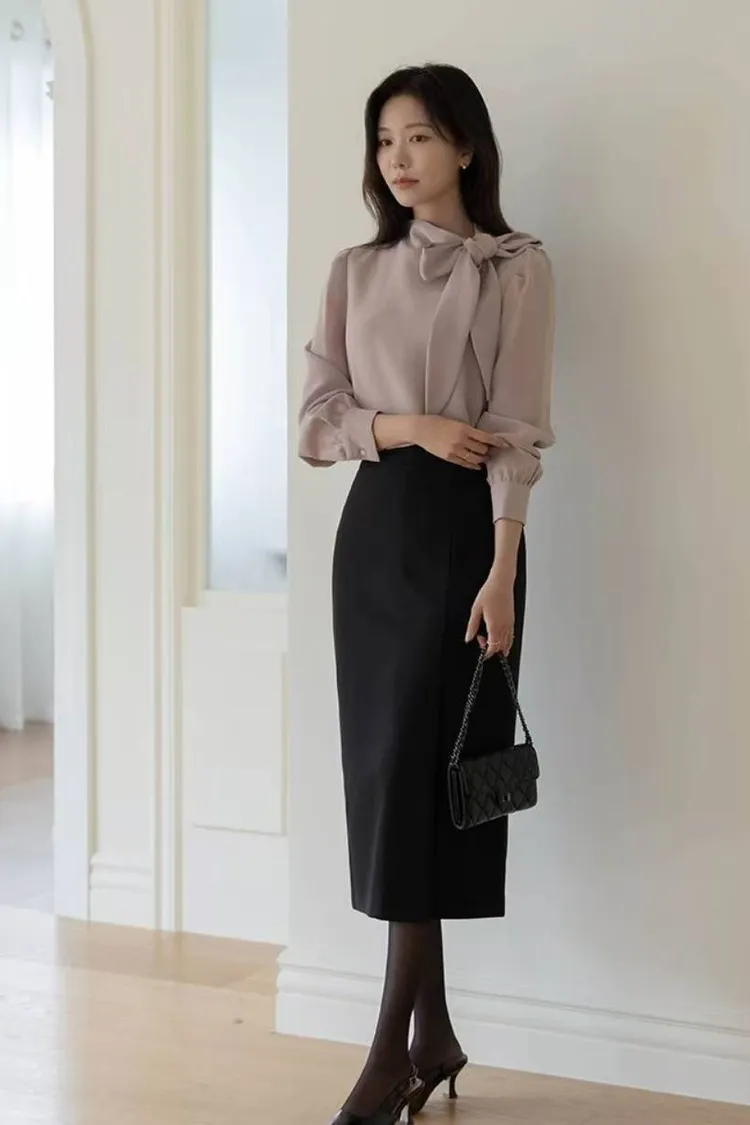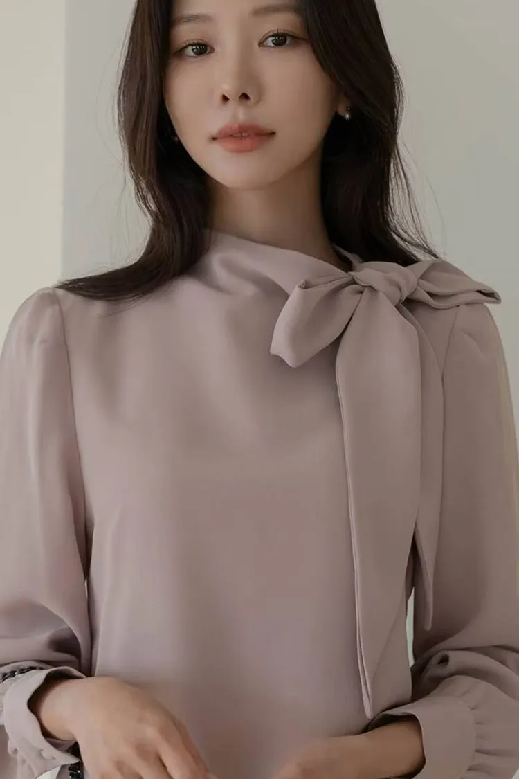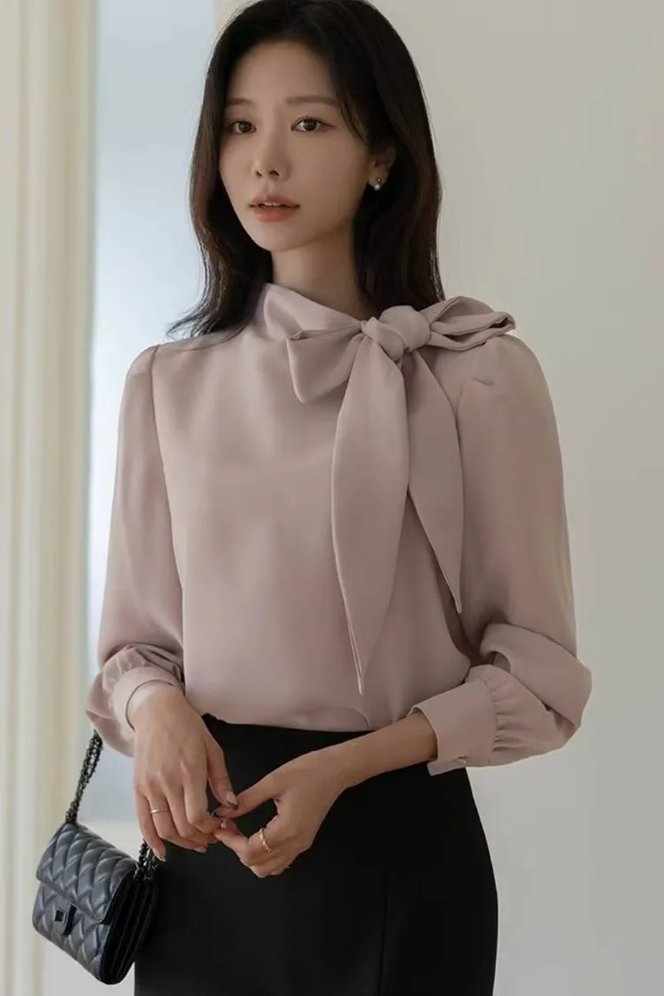 這款長袖雪紡襯衫以其精緻的緞帶蝴蝶結領口設計為最大亮點,