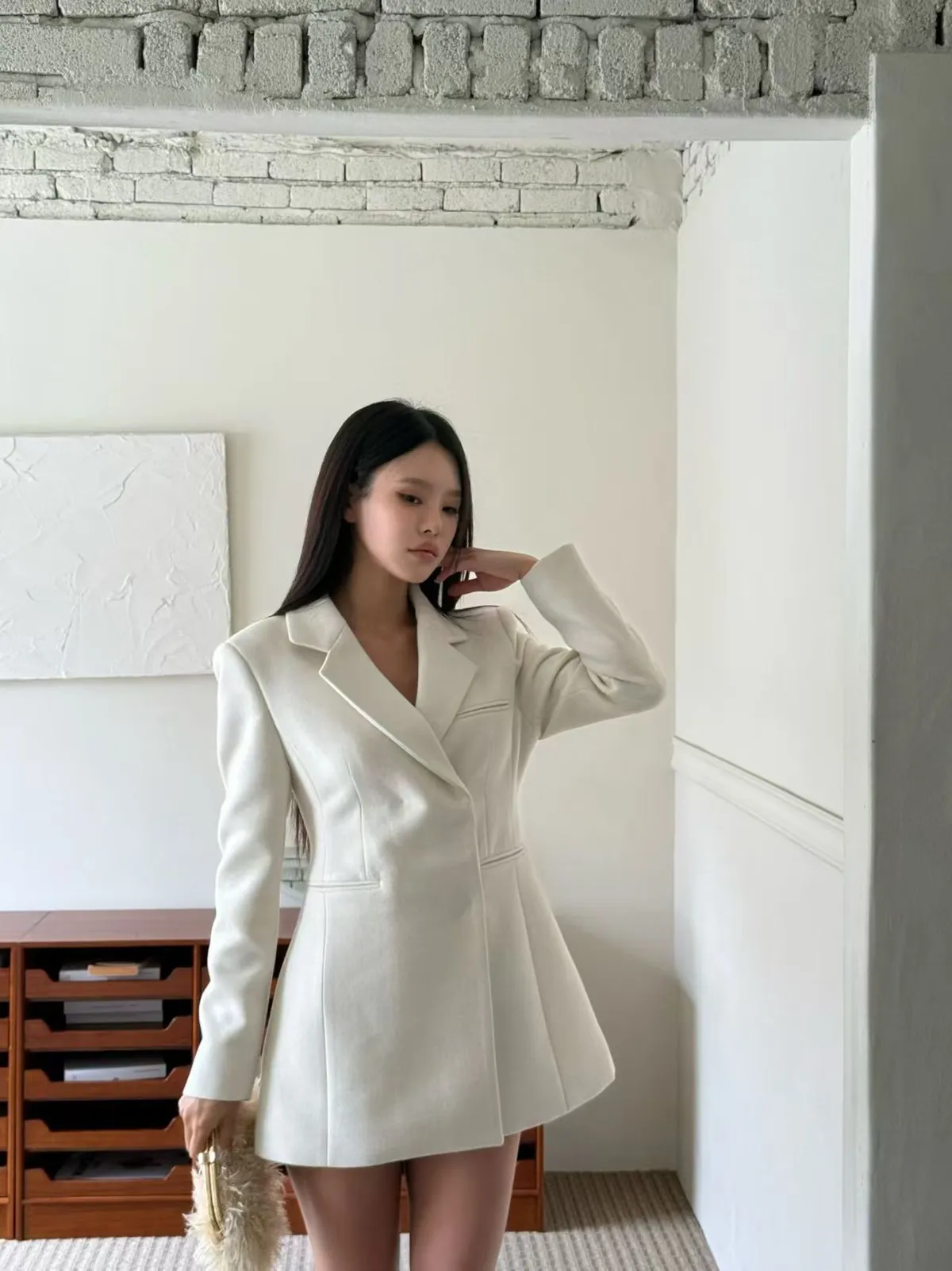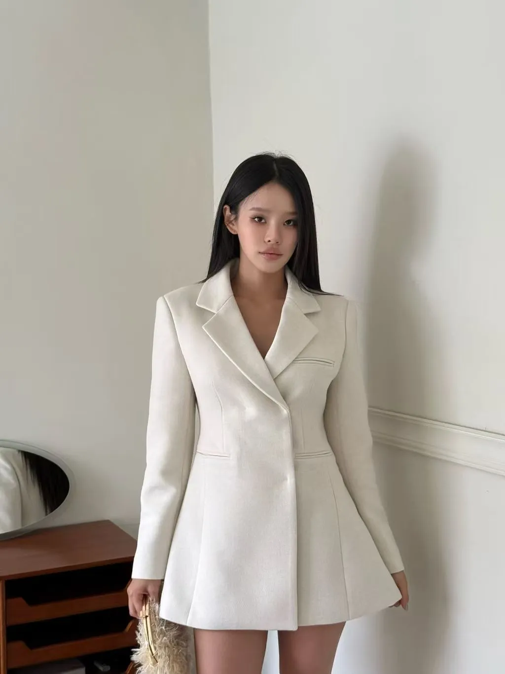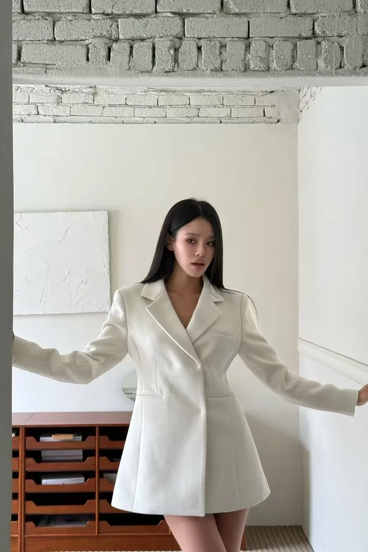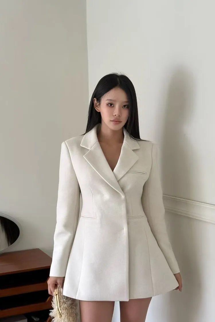 完美融合了西裝的俐落與洋裝的優雅。
