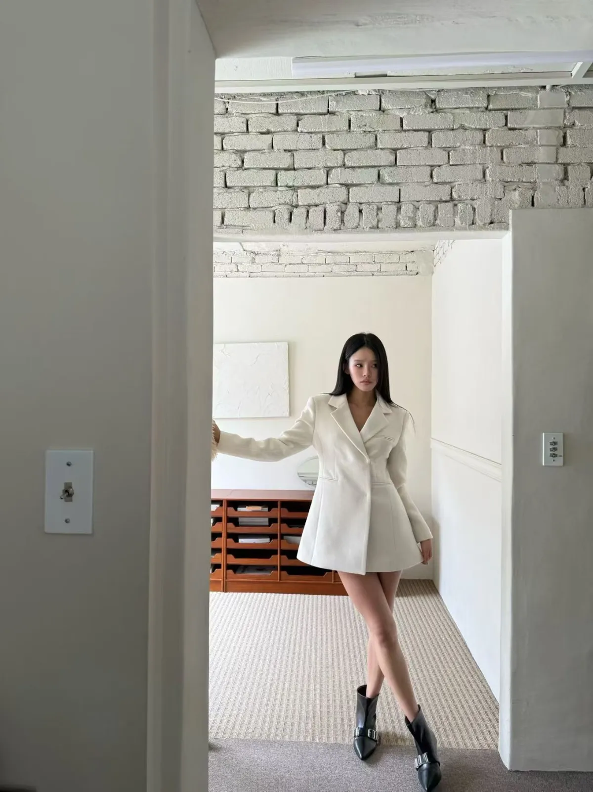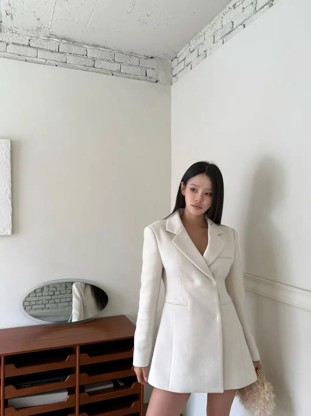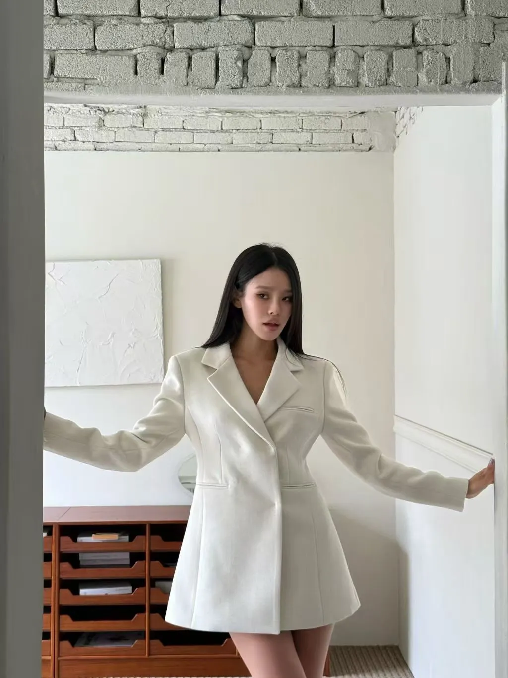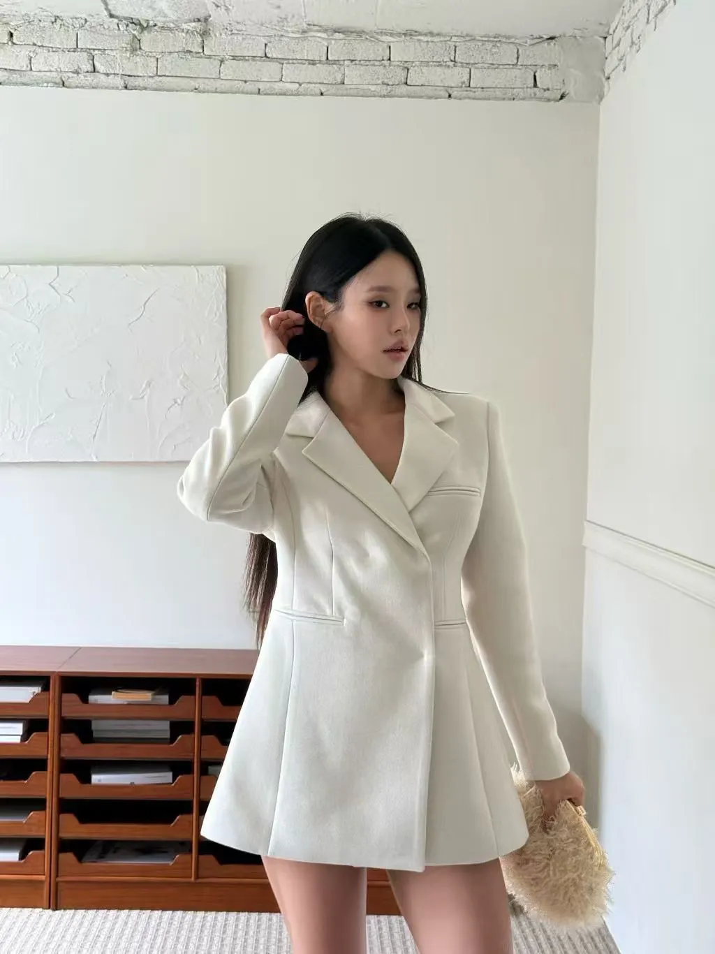 完美融合了西裝的俐落與洋裝的優雅。