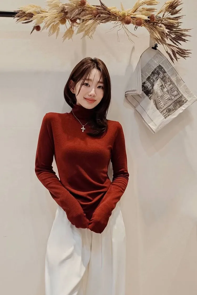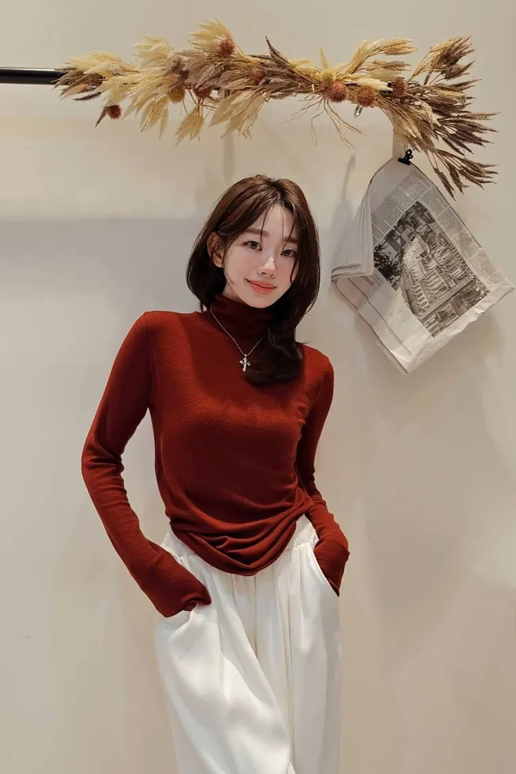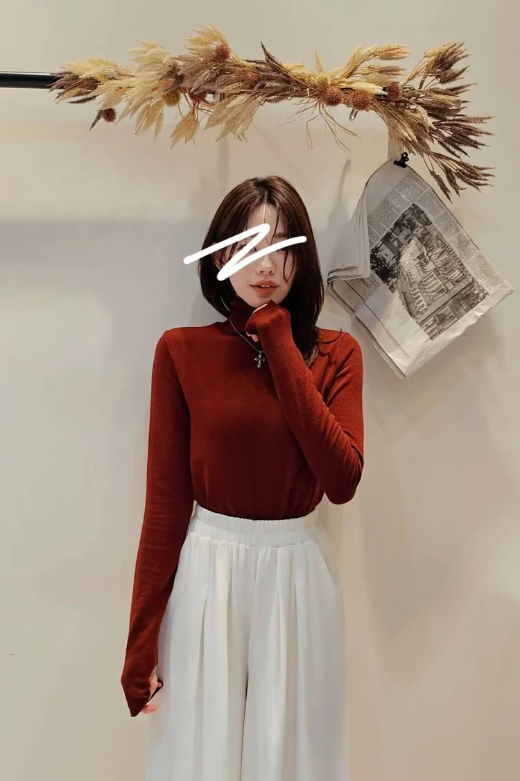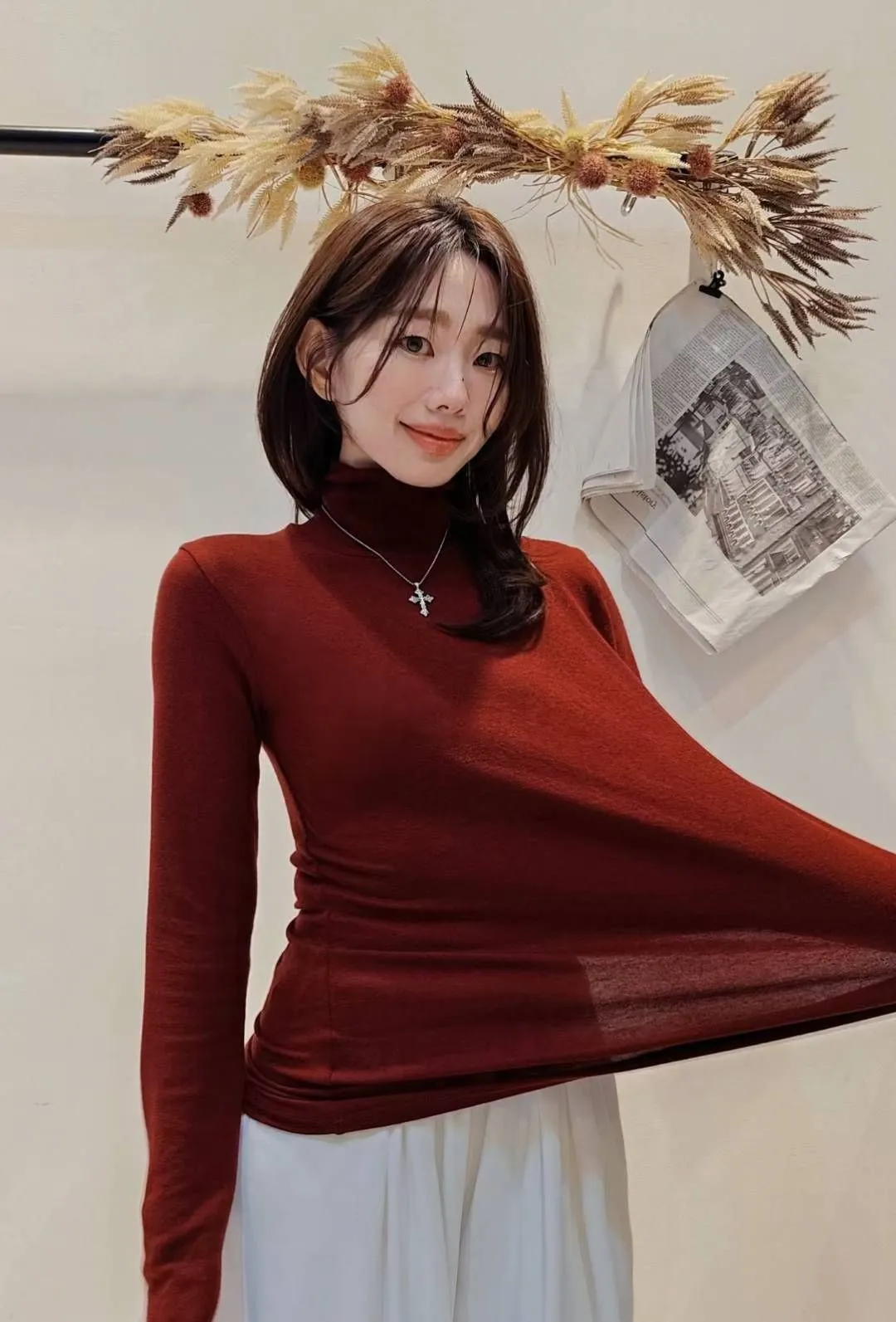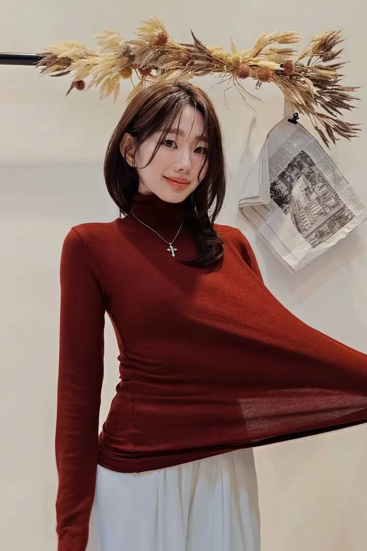 ✤韓國質感選品✤打底天絲羊毛超彈力T▸安可拉紅▸橄欖咖▸牛奶白▸高級灰▸黑