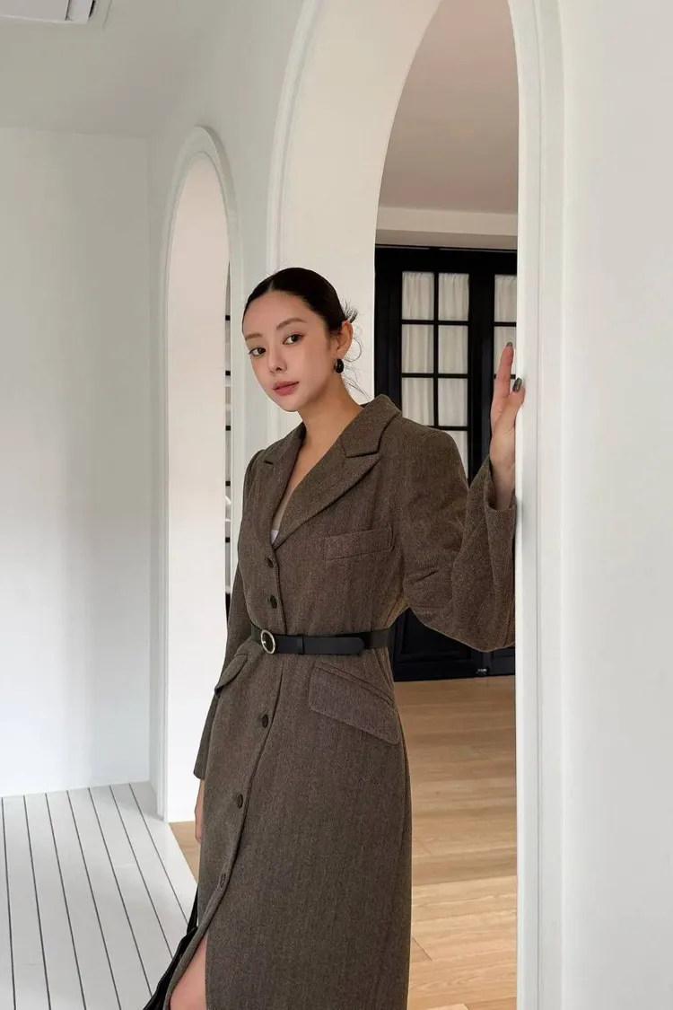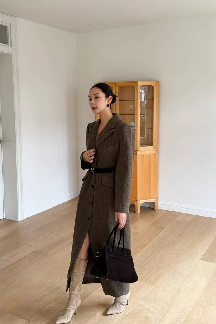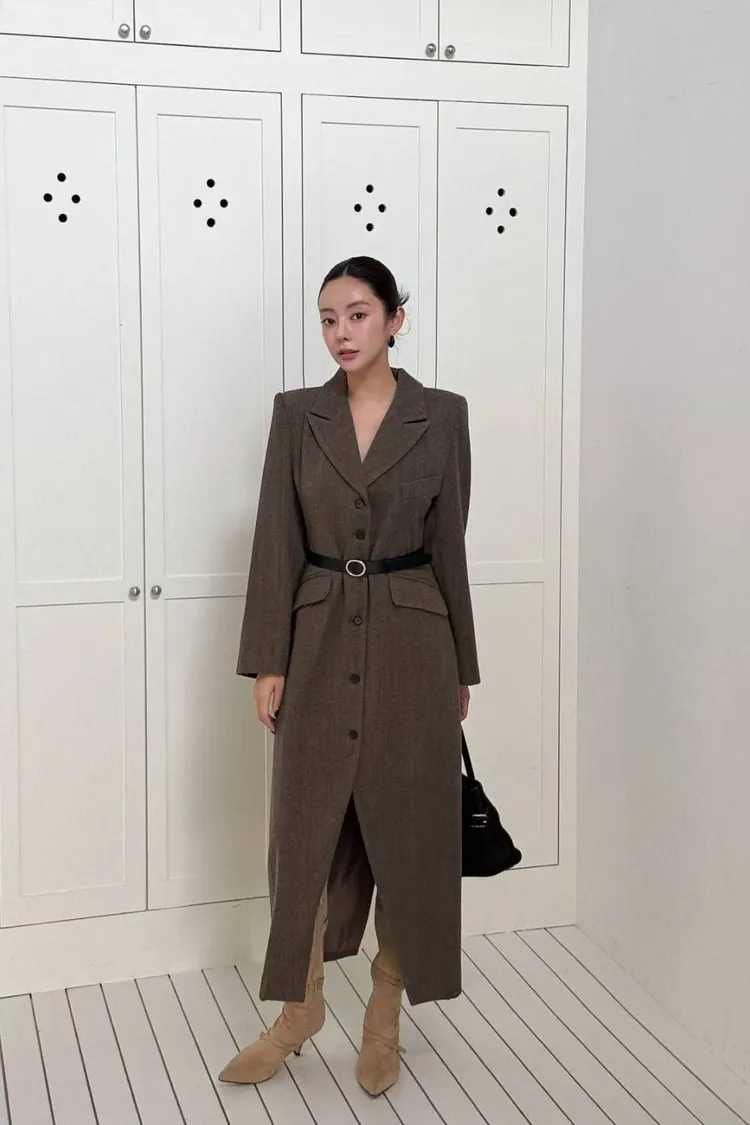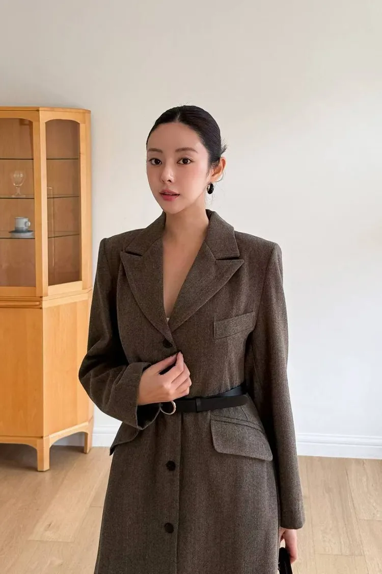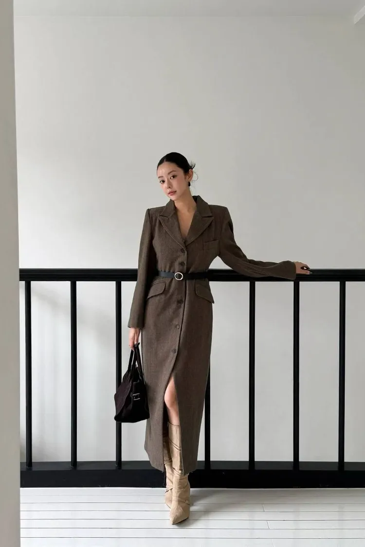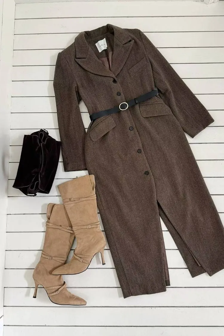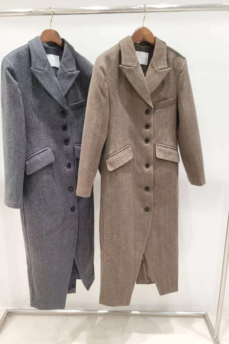 韓國代購 長款西裝翻領大衣