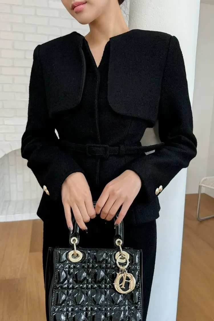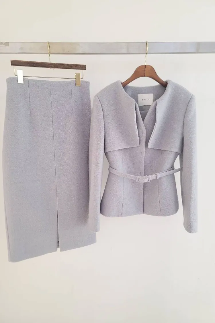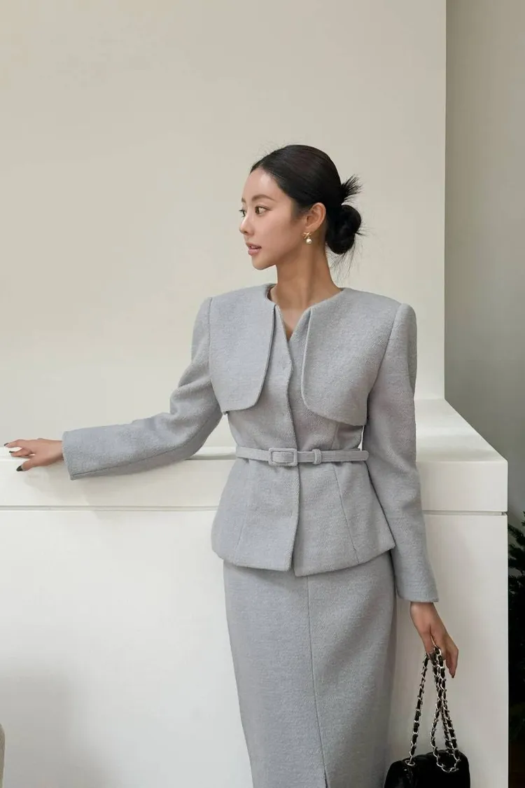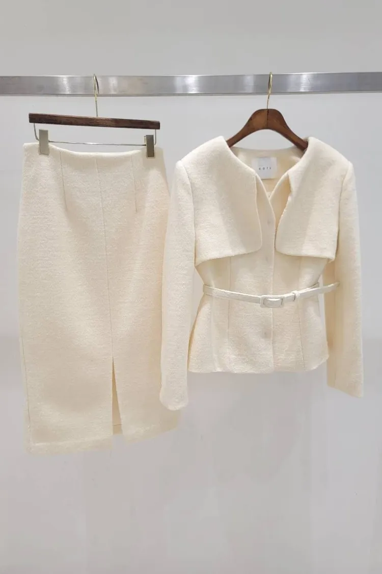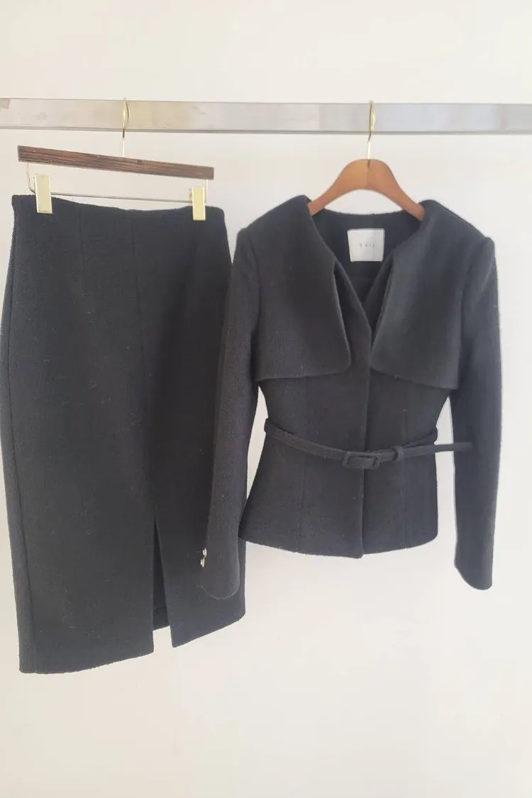 韓國代購 領片設計兩件式毛呢套裝