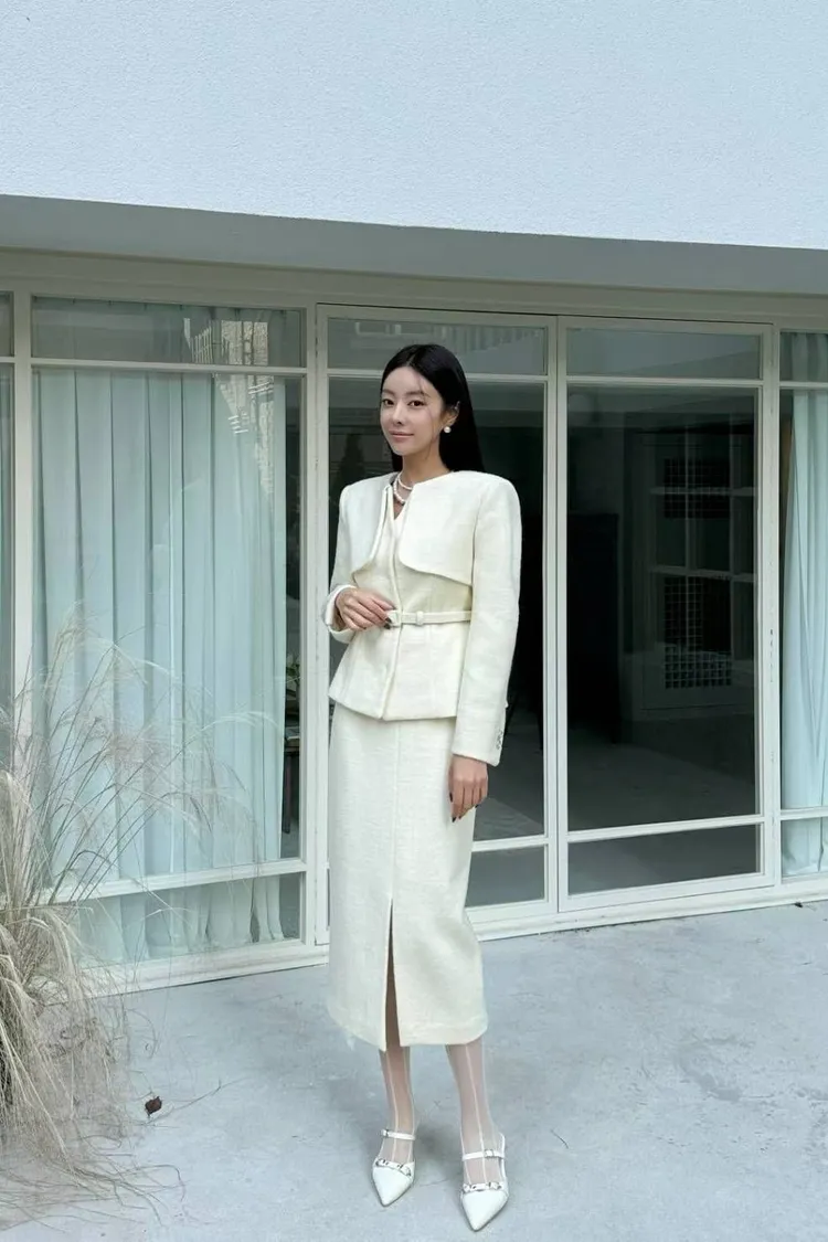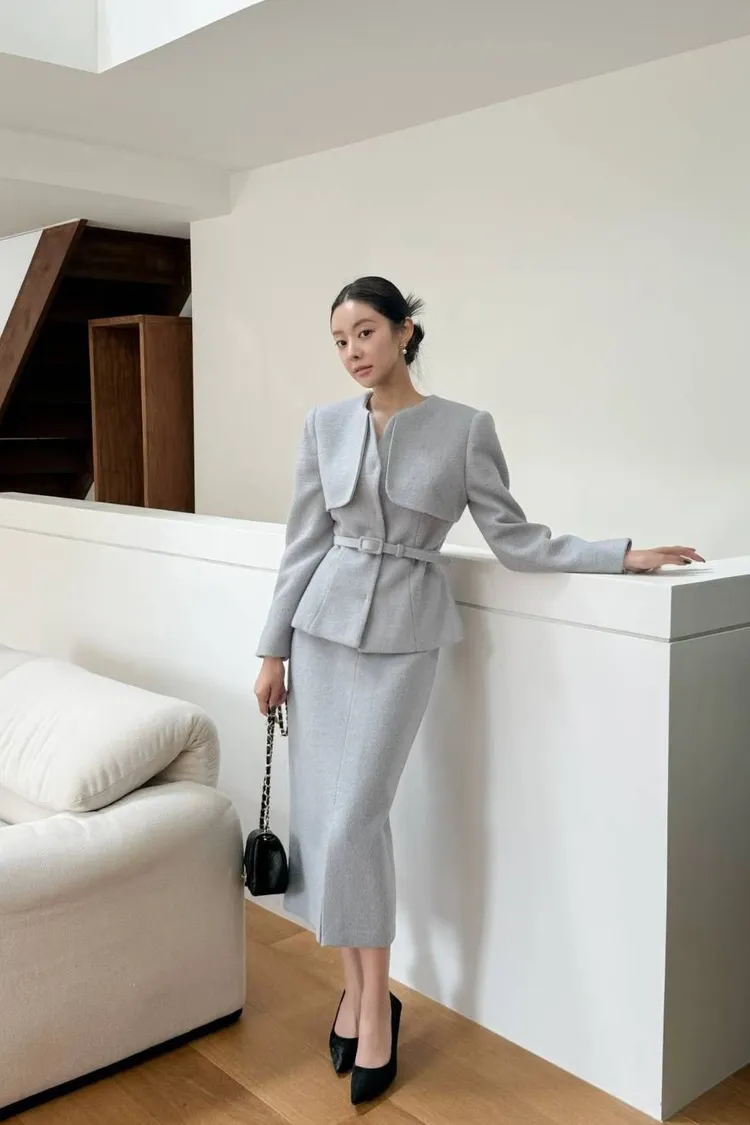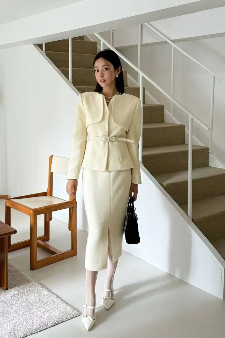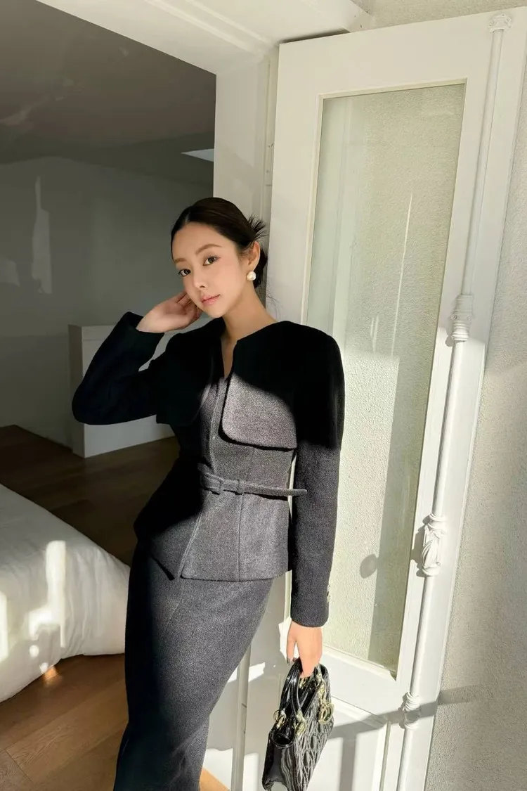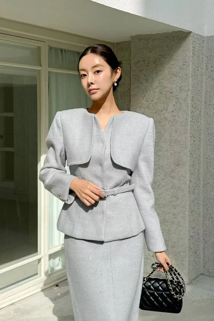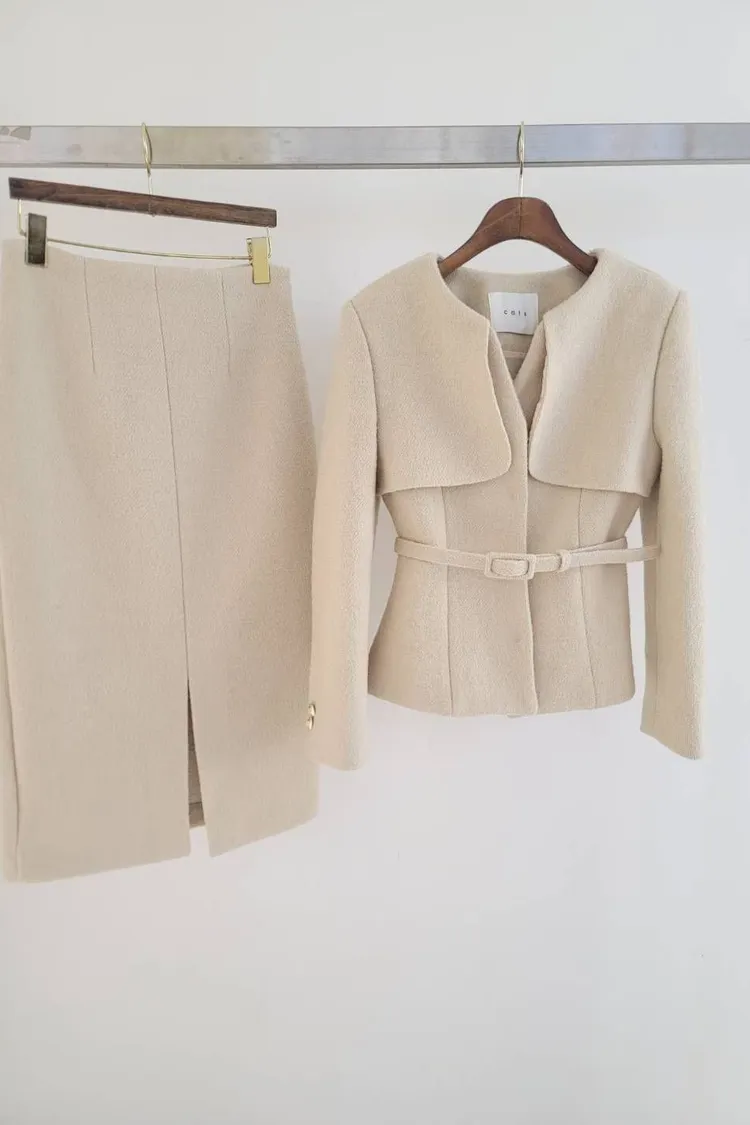 韓國代購 領片設計兩件式毛呢套裝