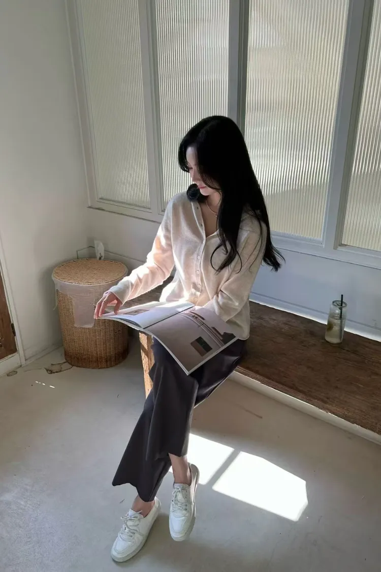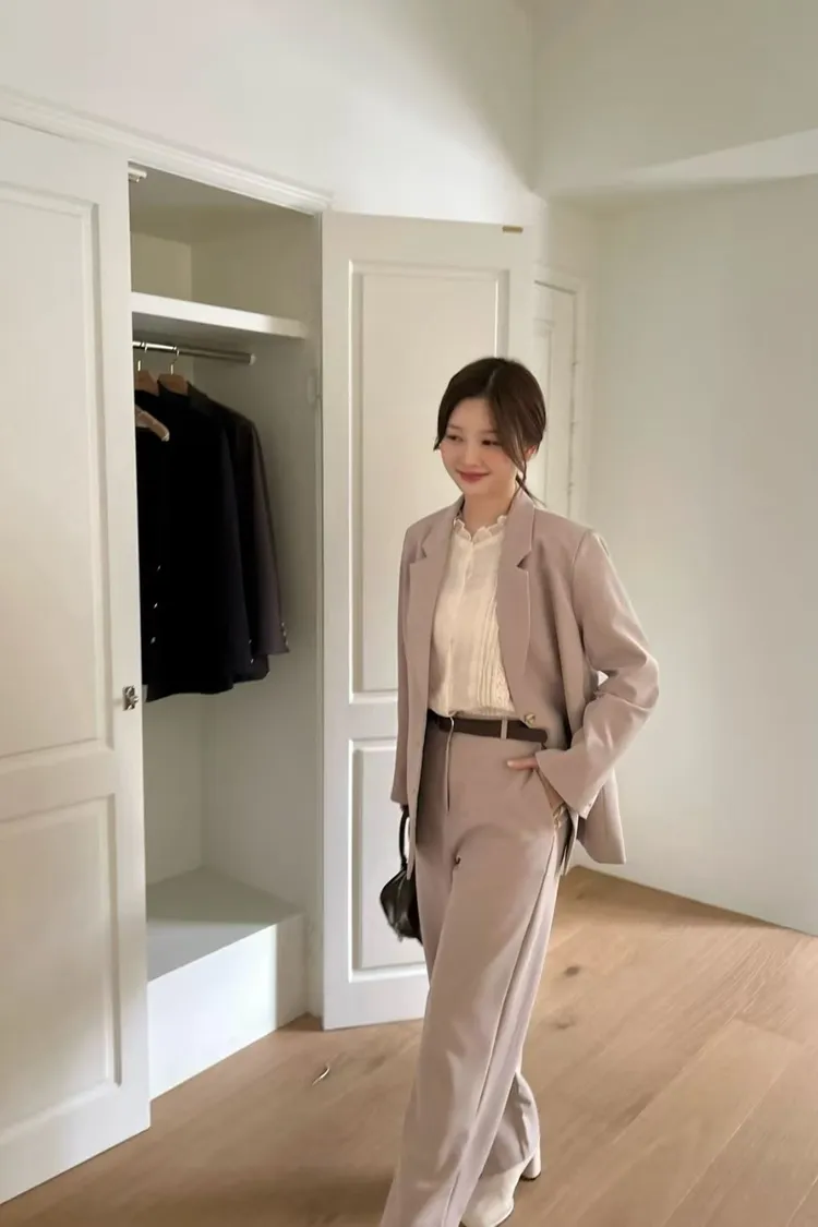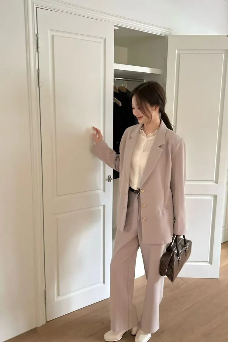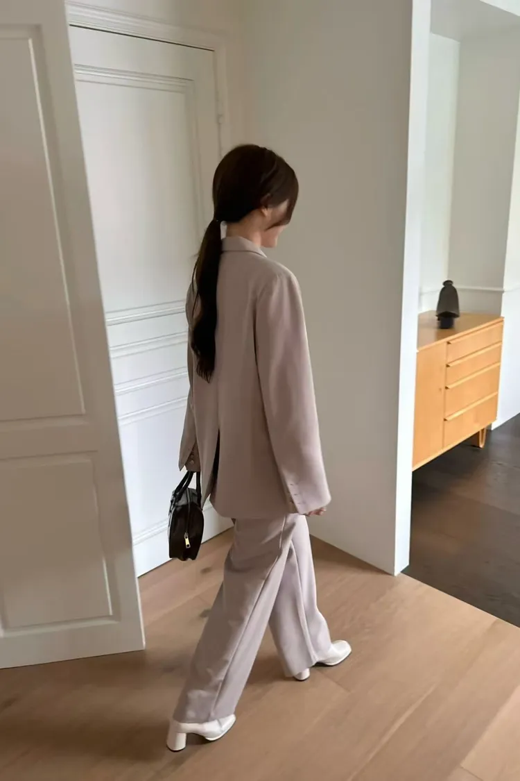 韓國代購 低飽和色系垂墜感百搭西裝褲