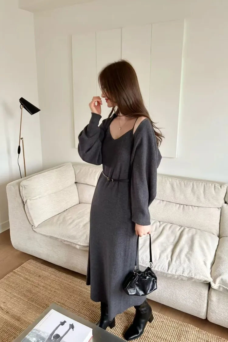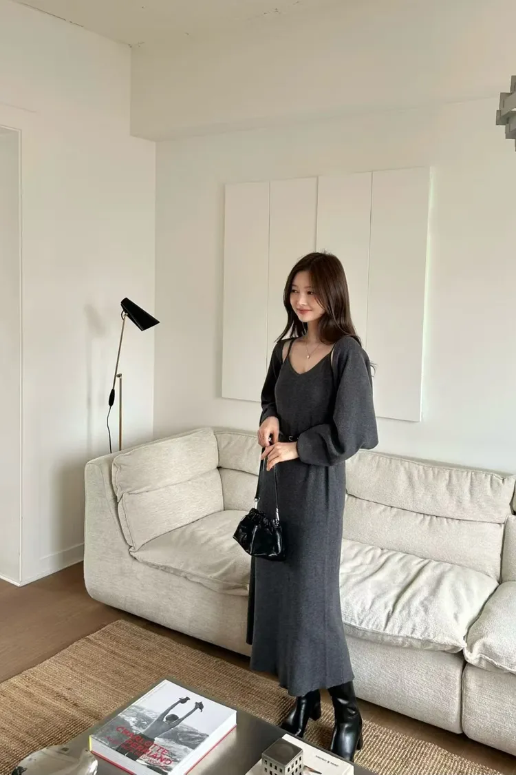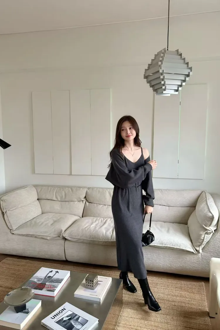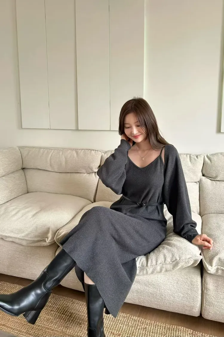 韓國代購 20%美麗諾羊毛細肩洋裝罩衫套裝