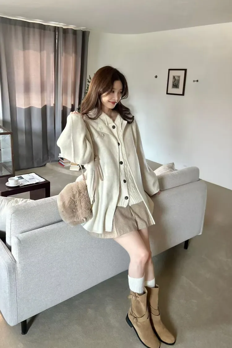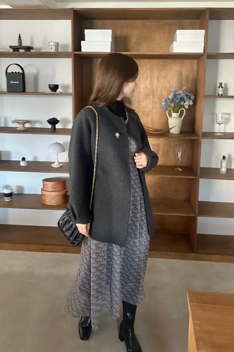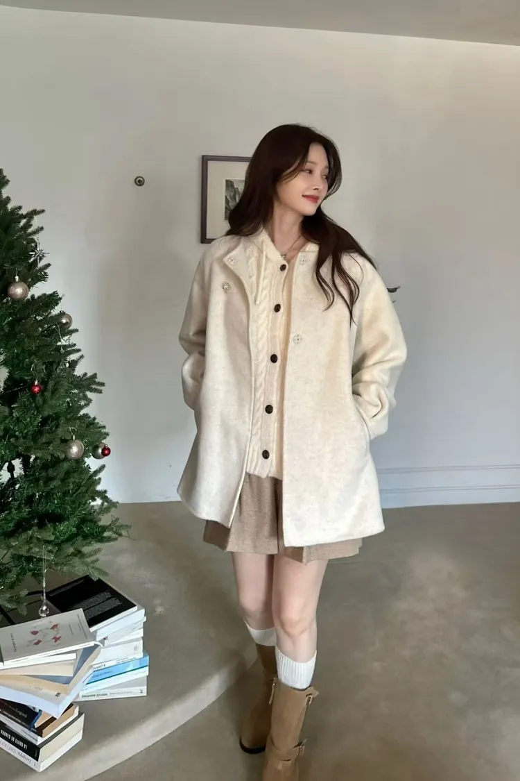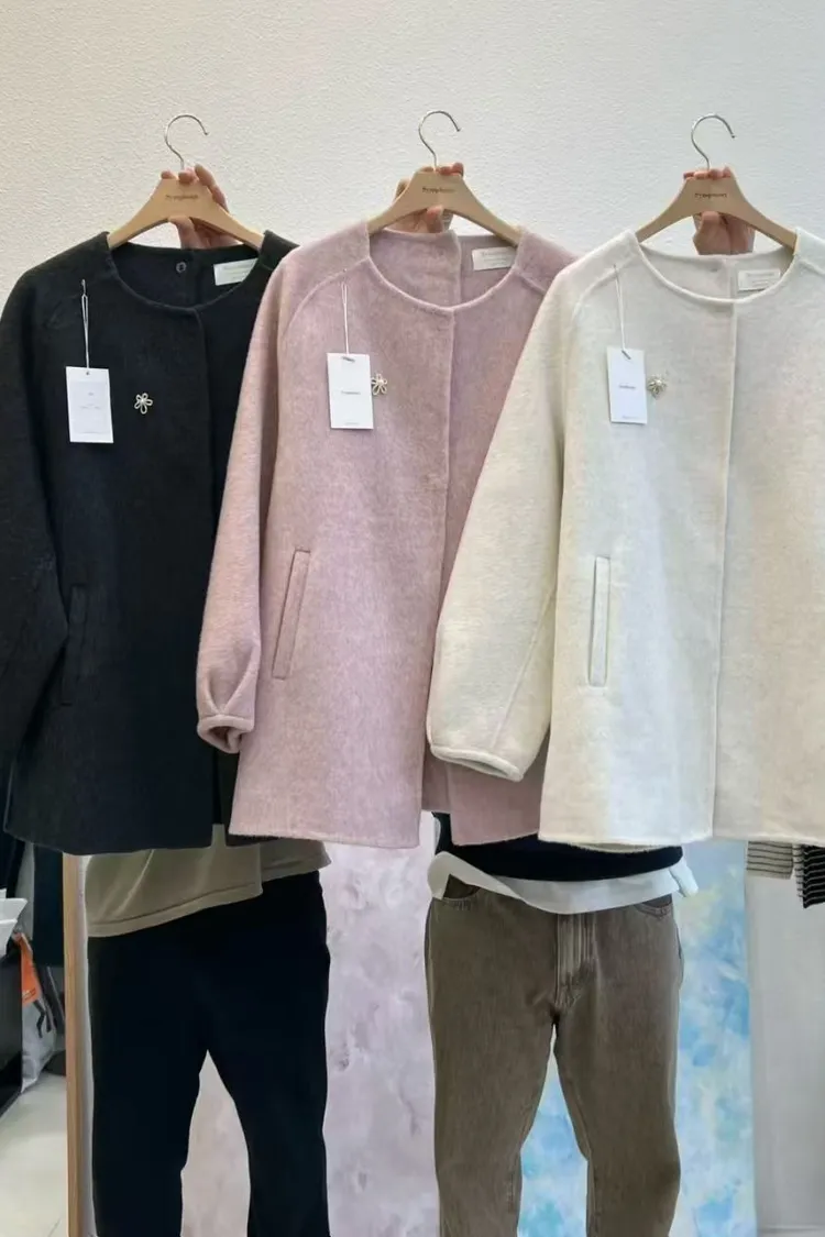 韓國代購 圓領羊毛外套