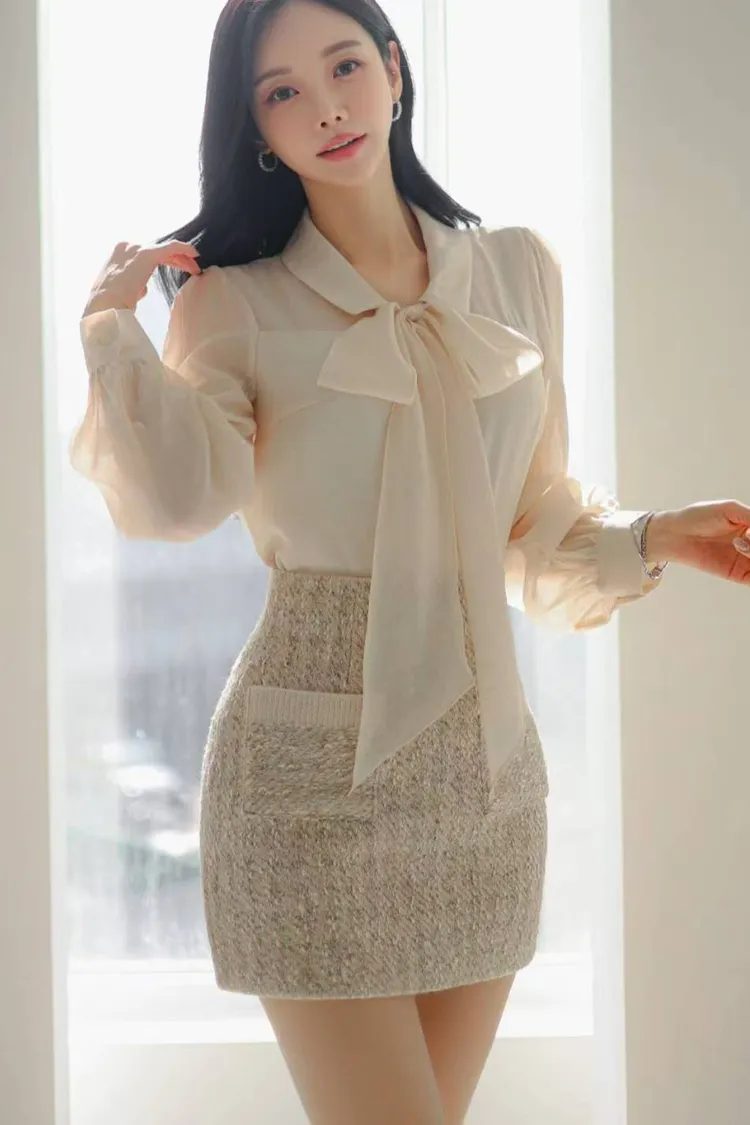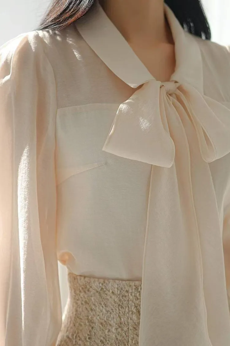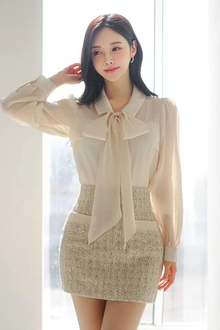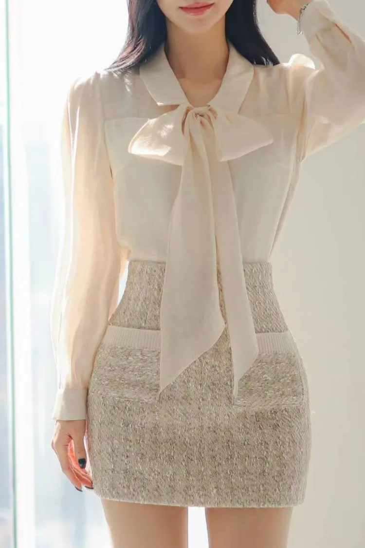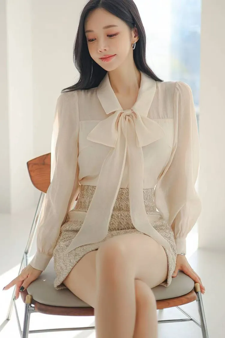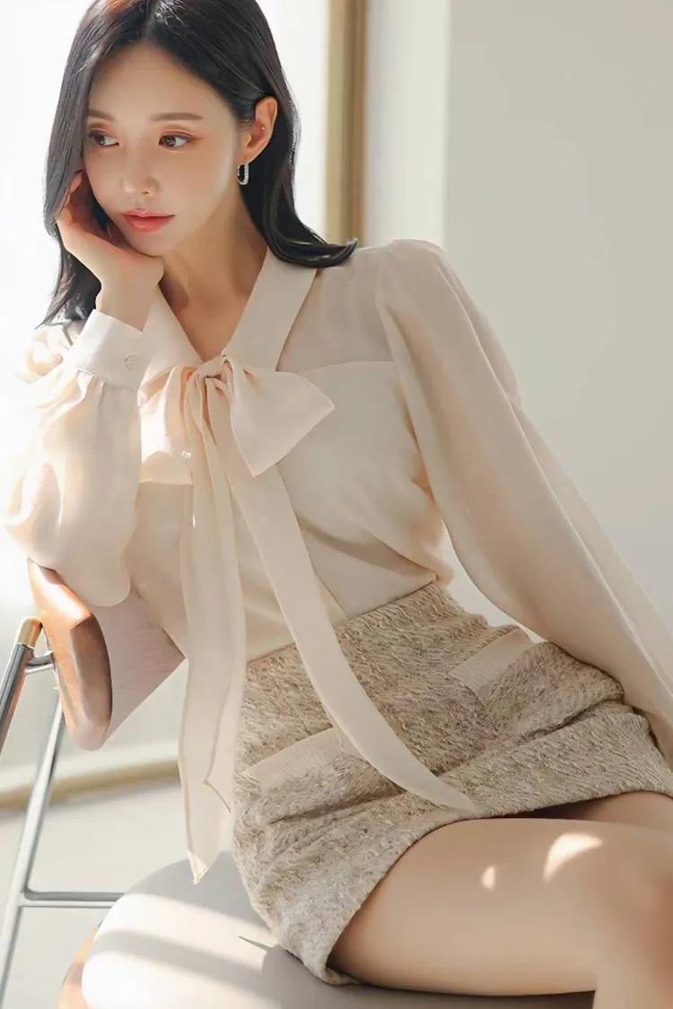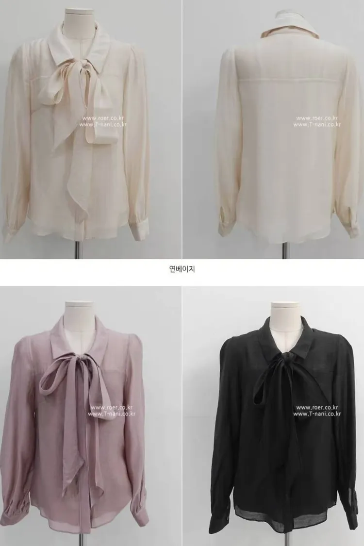 韓國代購 蝴蝶結綁帶領上衣