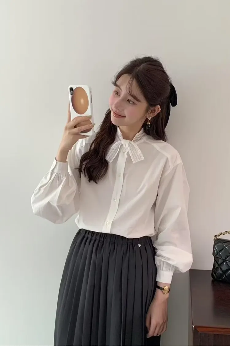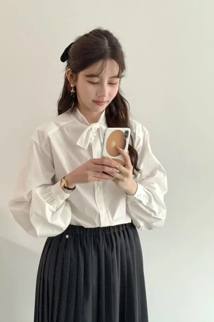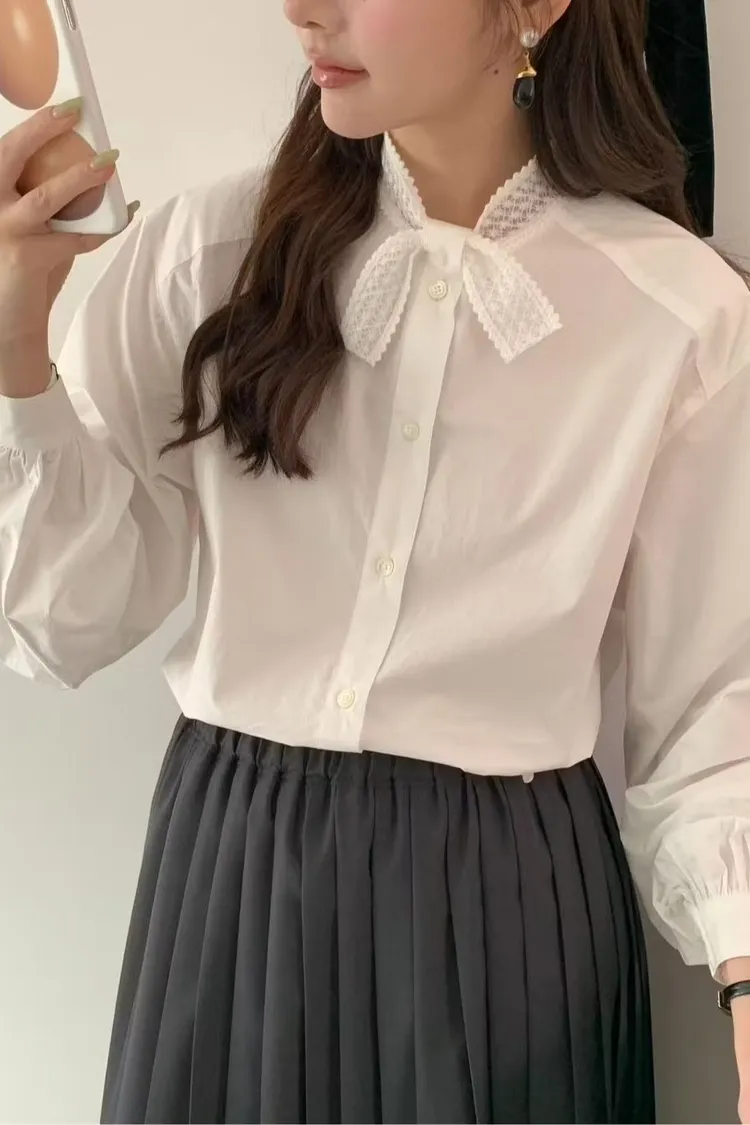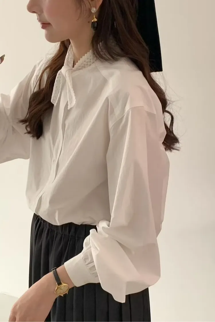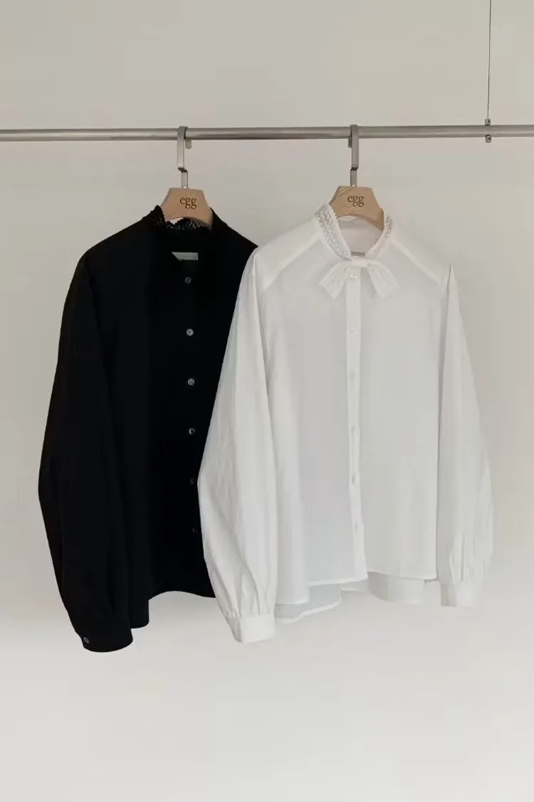 現貨2件 蕾絲交叉領襯衫