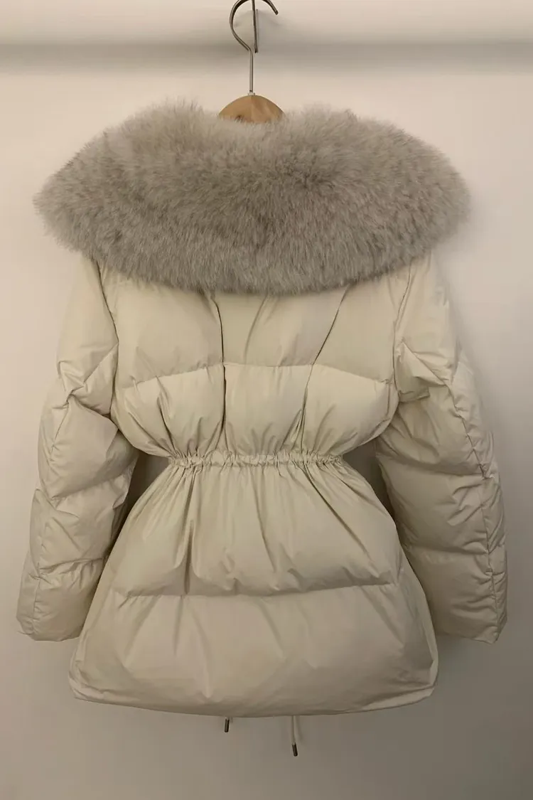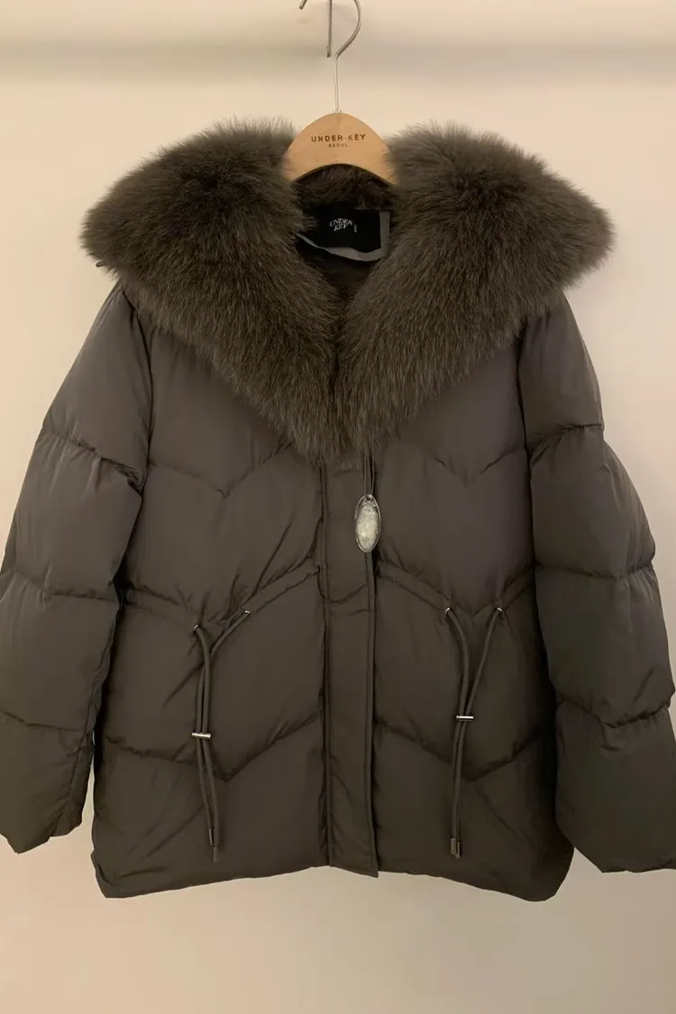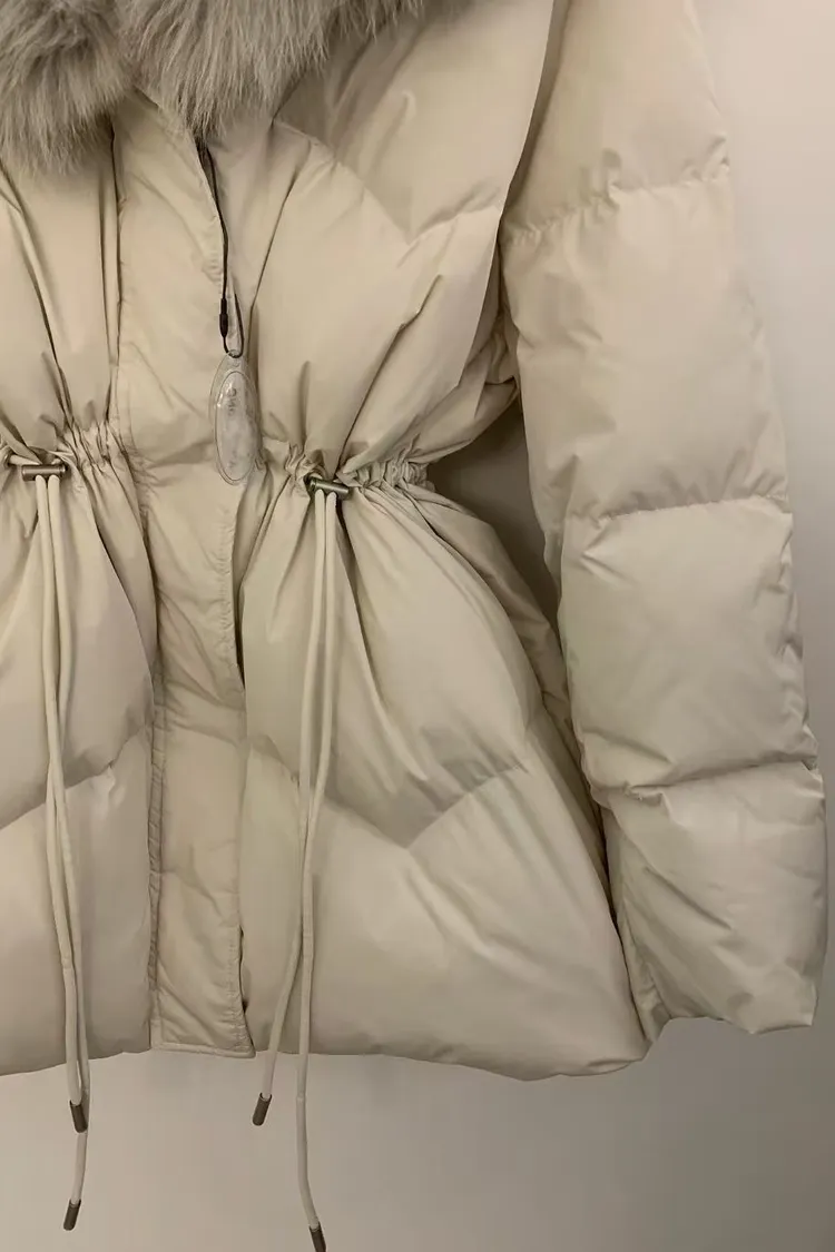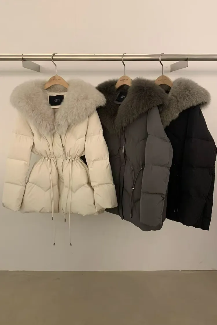 韓國代購 狐狸毛領抽繩縮腰羽絨外套