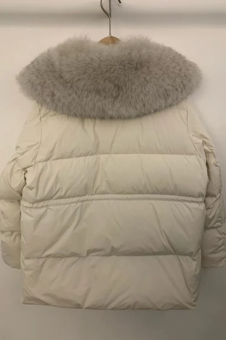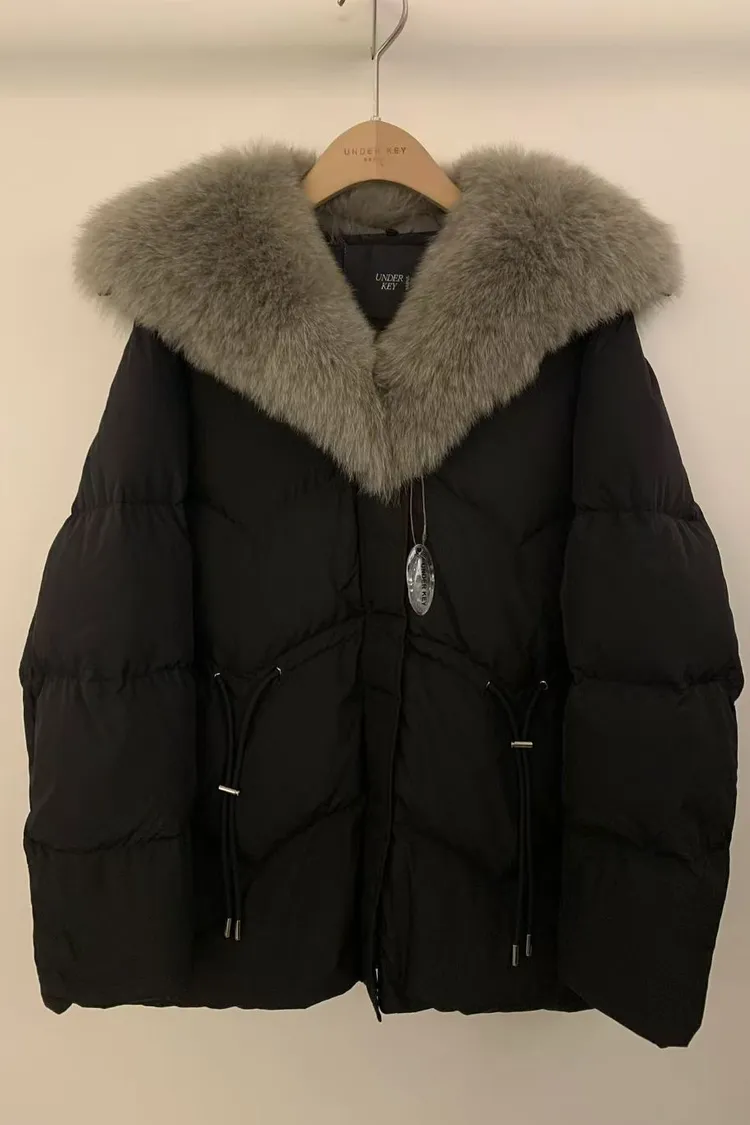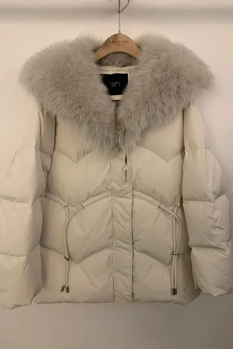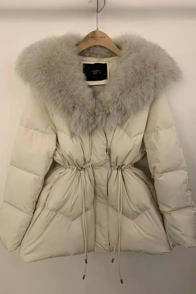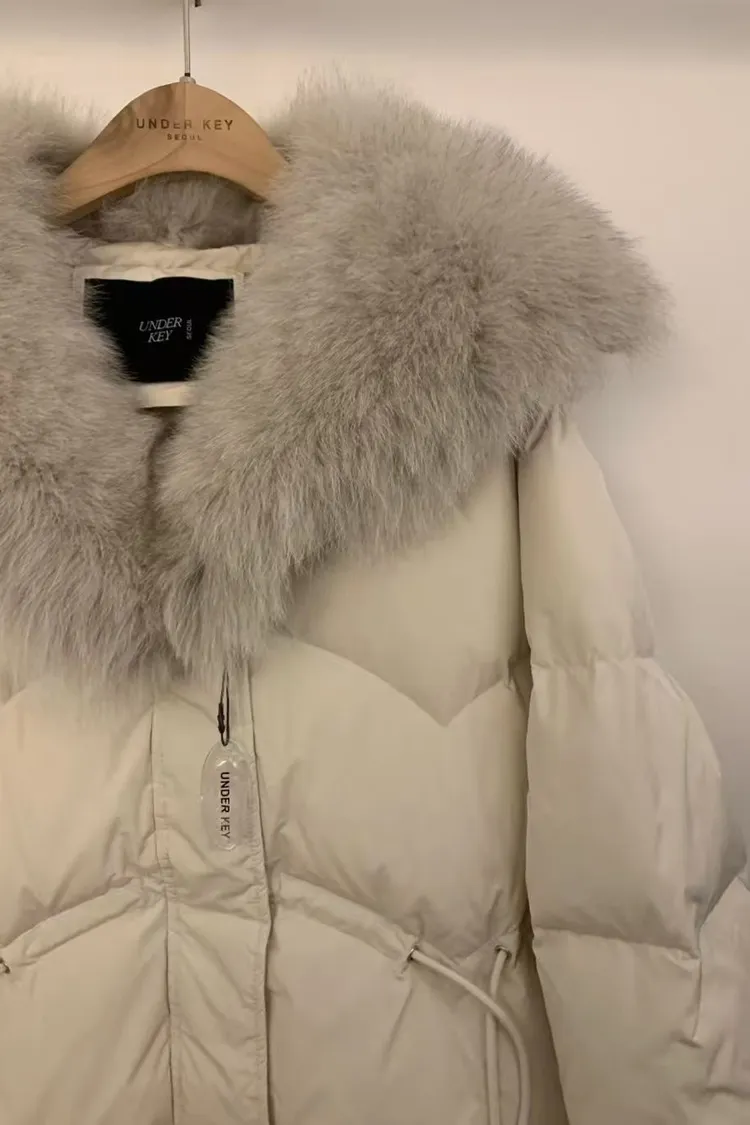 韓國代購 狐狸毛領抽繩縮腰羽絨外套