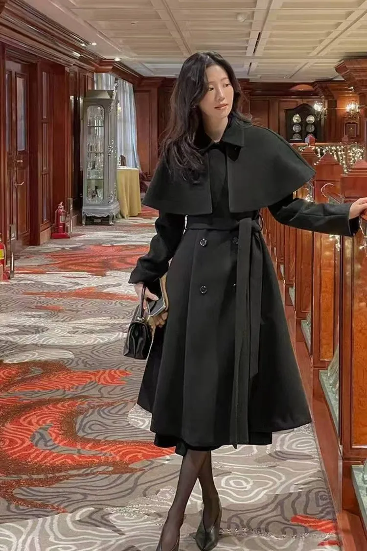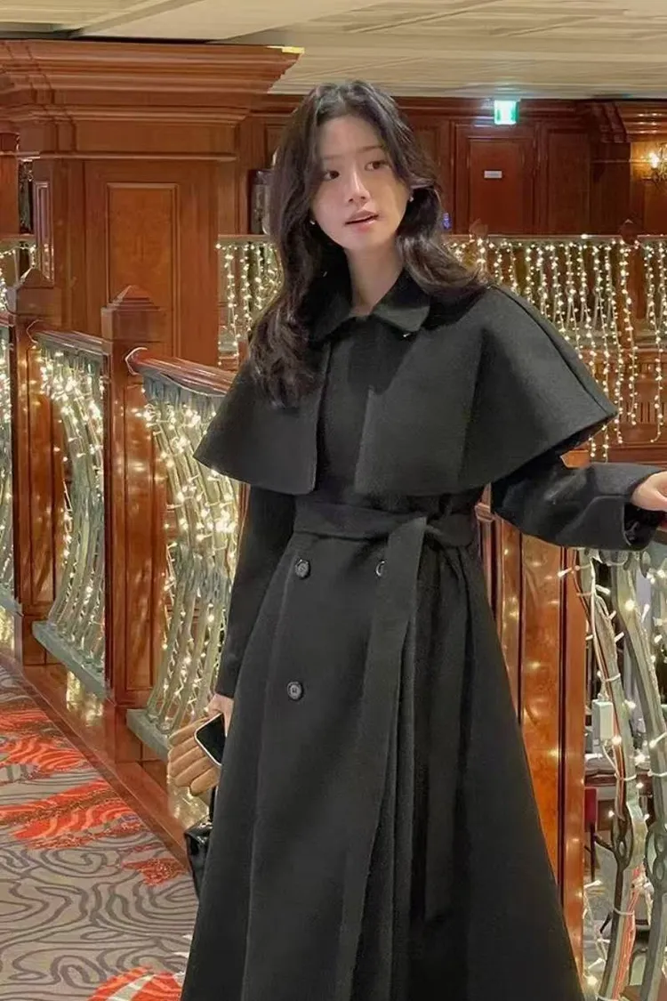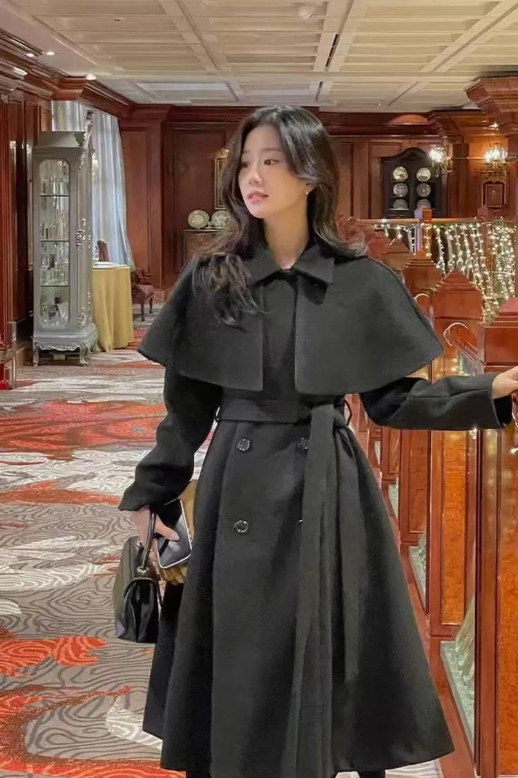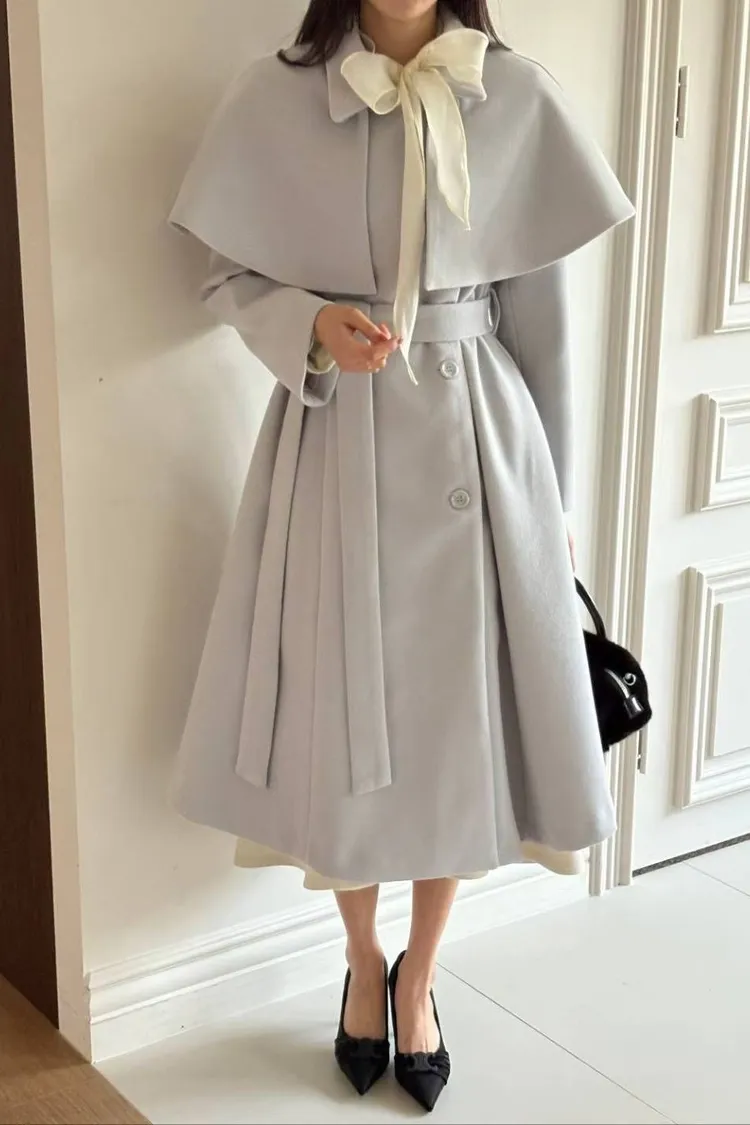 韓國代購 可拆式披肩造型大衣