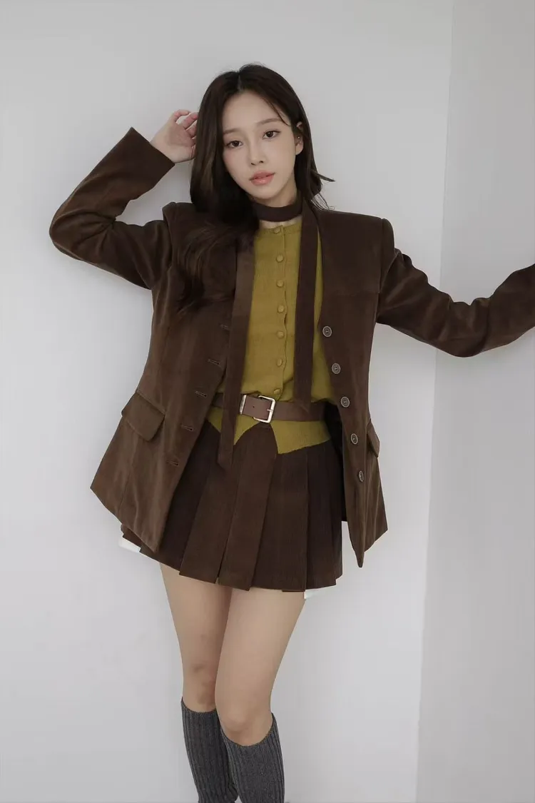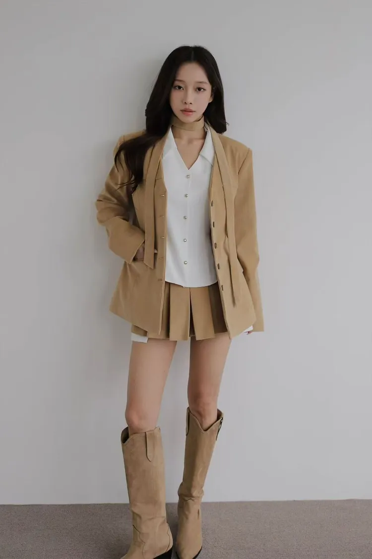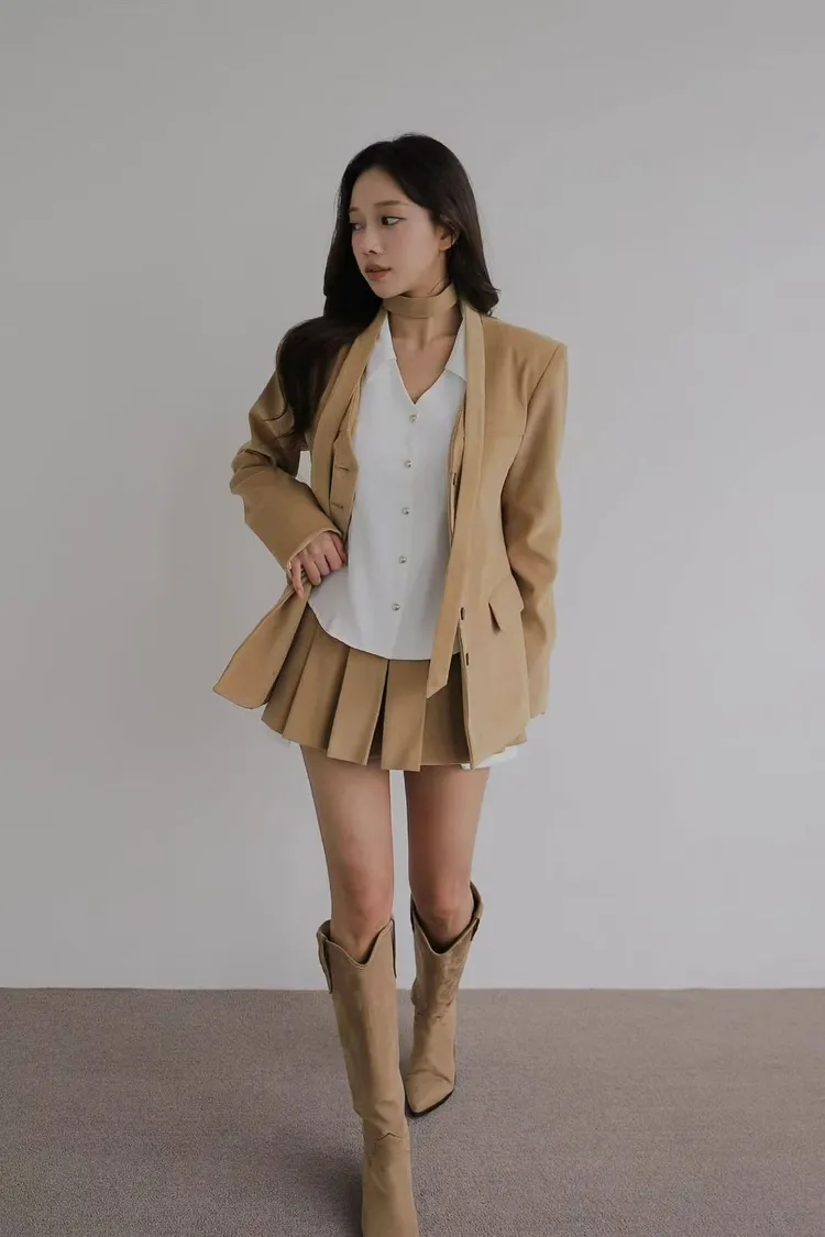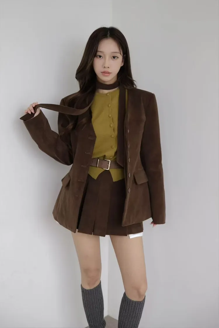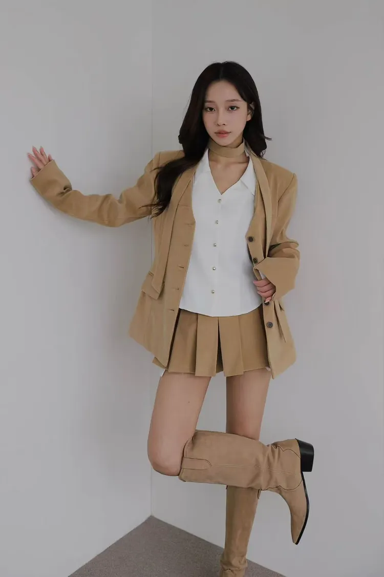 韓國代購 棉質排釦外套百褶短褲套裝