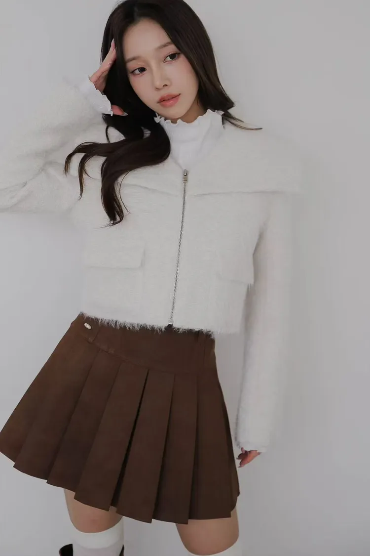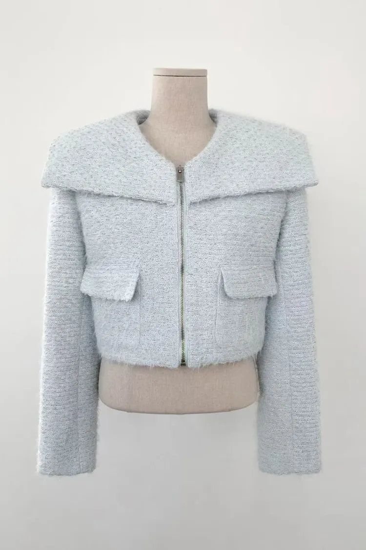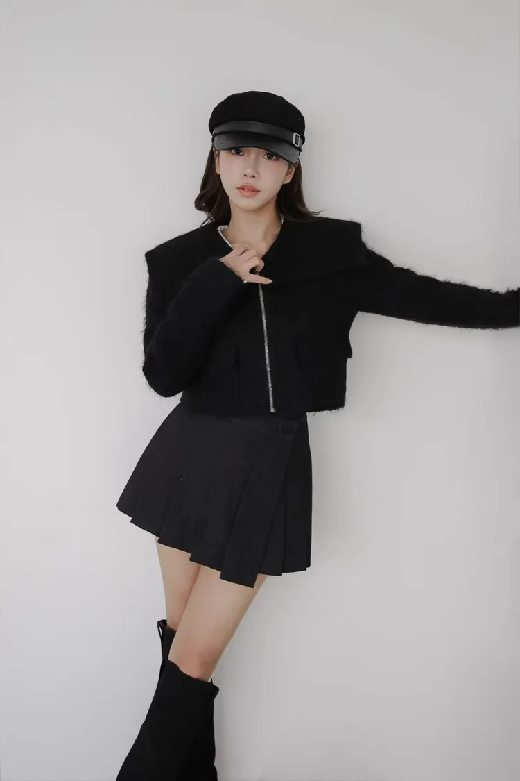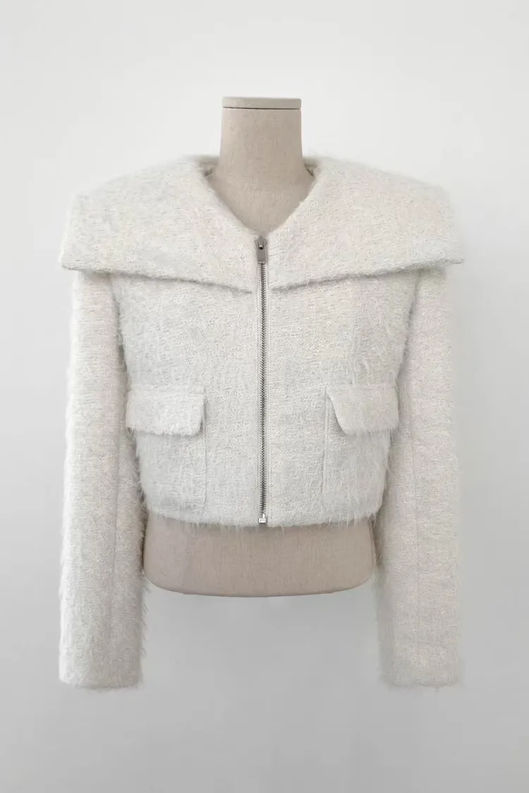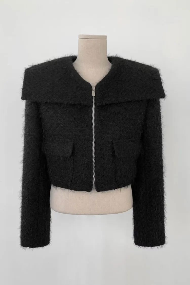 韓國代購 造型披肩領拉鍊短外套