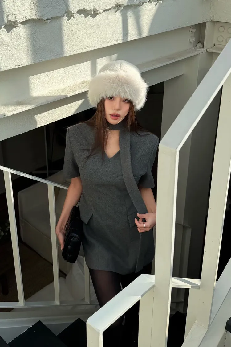 韓國代購 短袖V領OL套裝