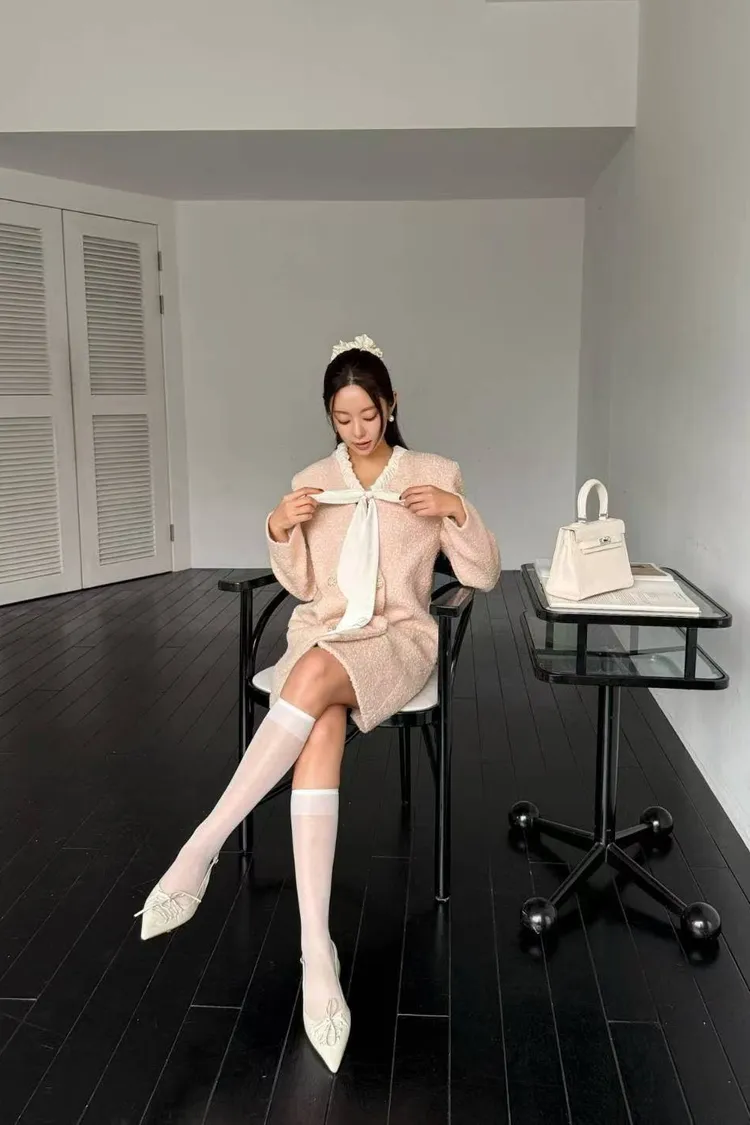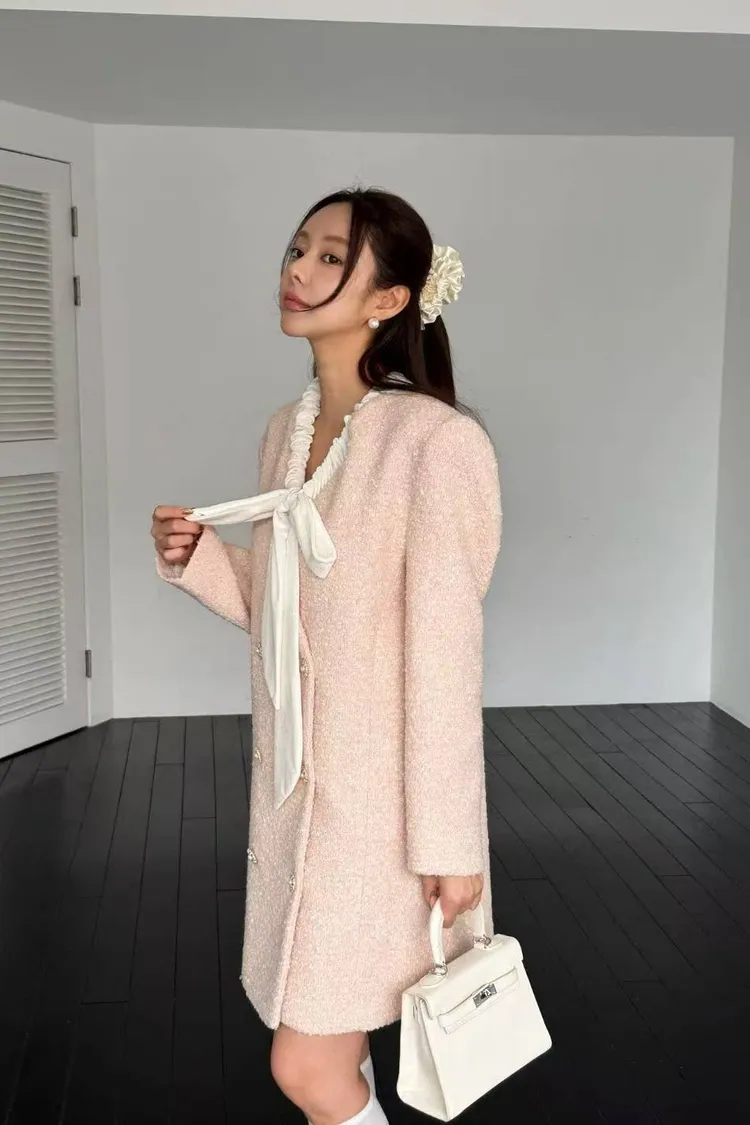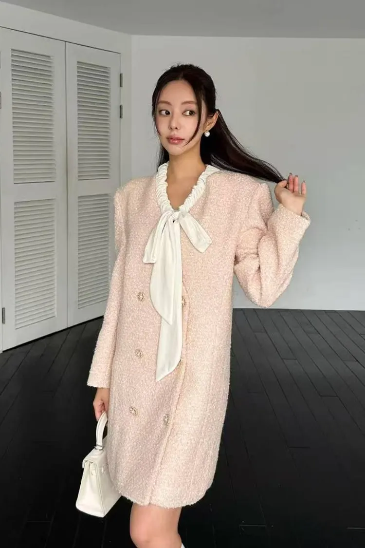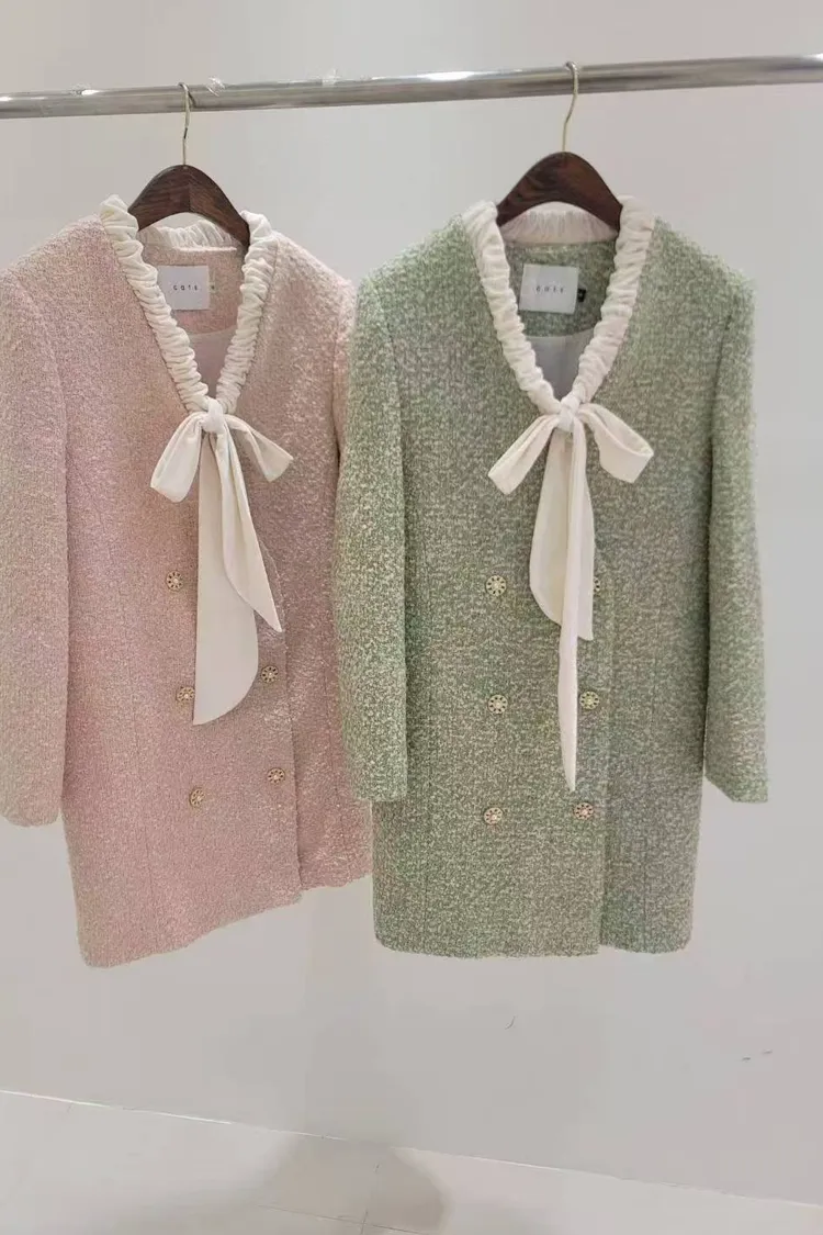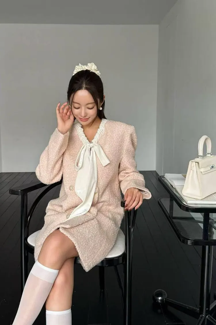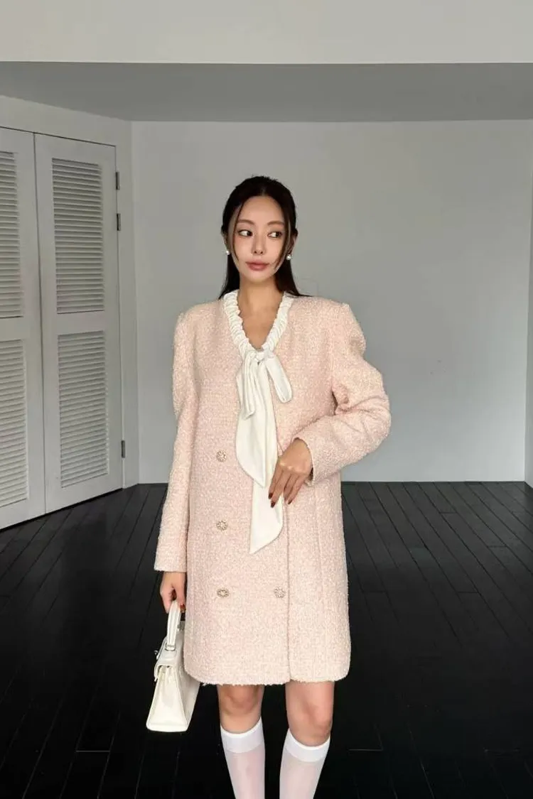 韓國代購 35%羊毛 撞色滾邊排釦小香風毛呢西裝裙