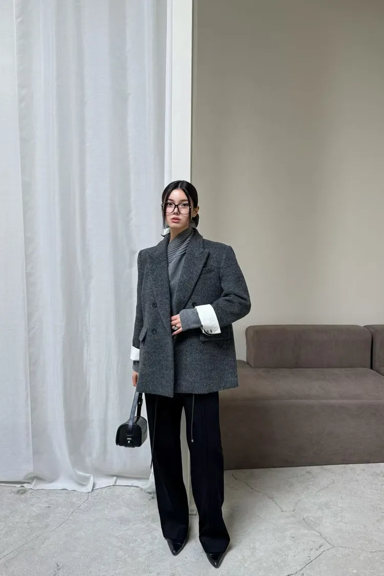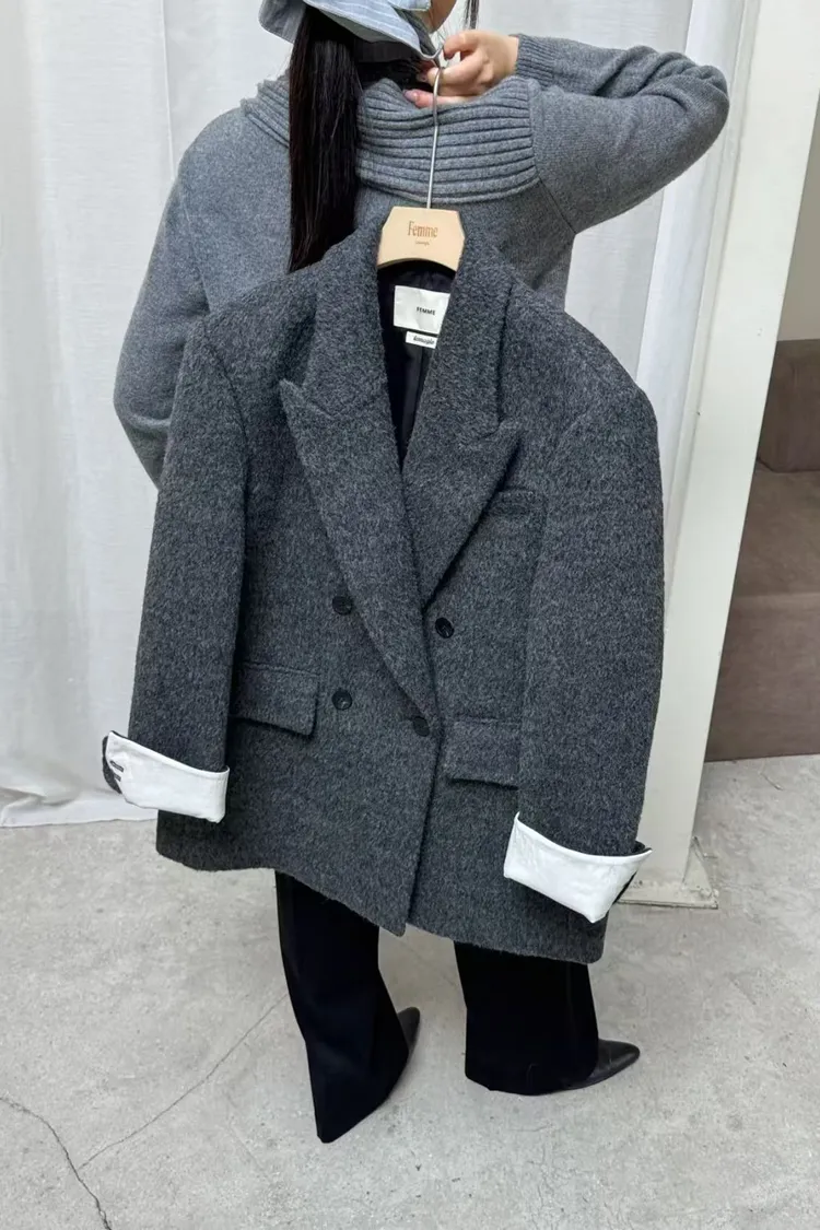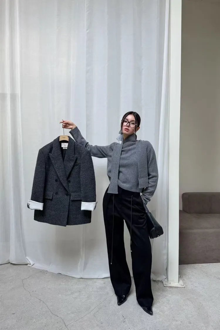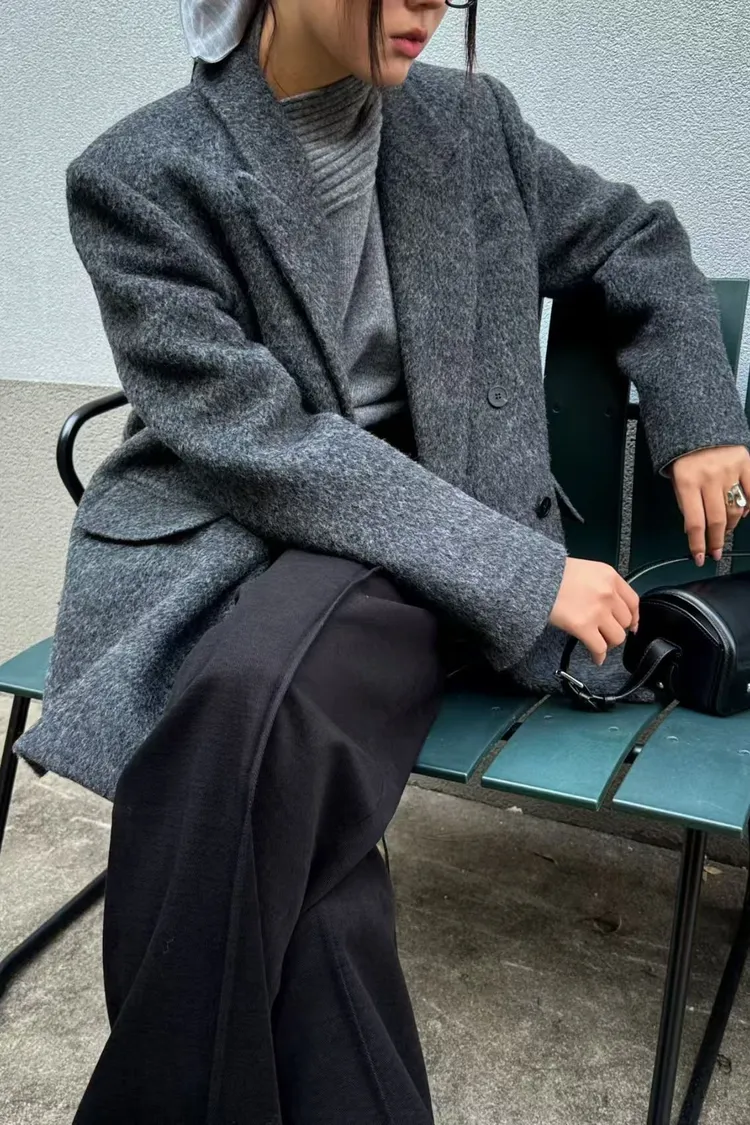 韓國代購 80%羊毛+9%羊駝毛 造型V領羊毛西裝外套