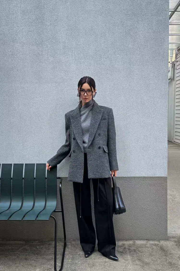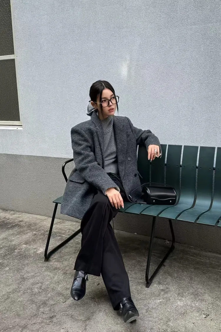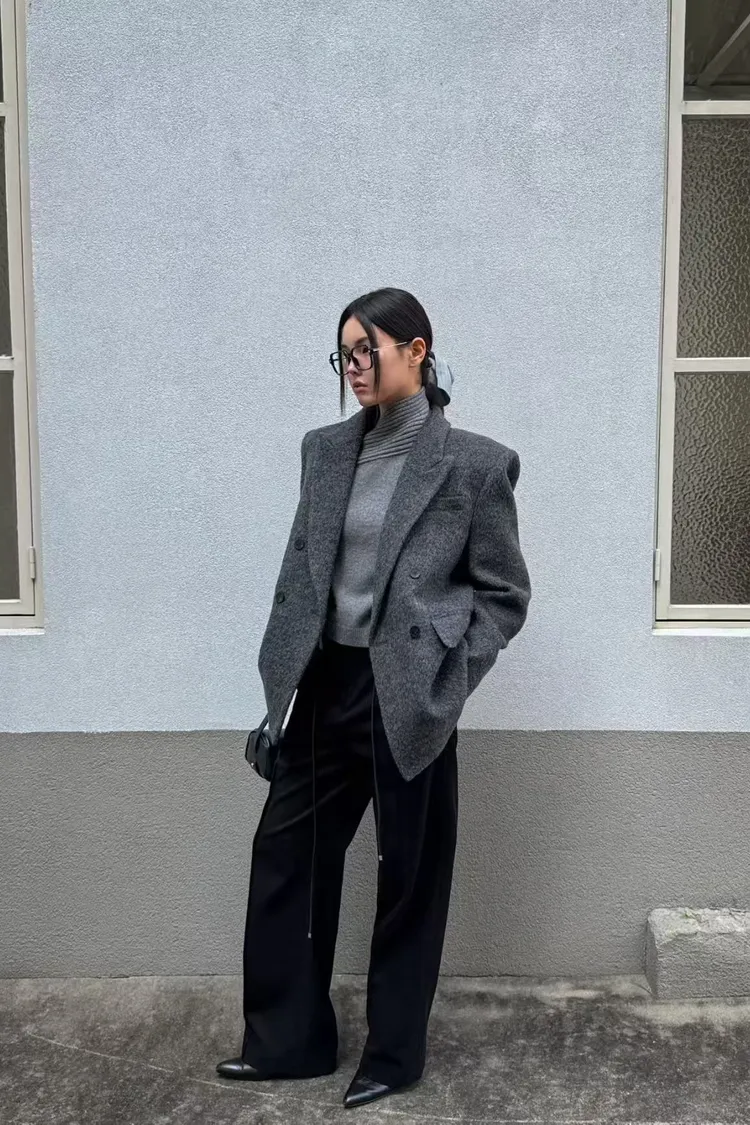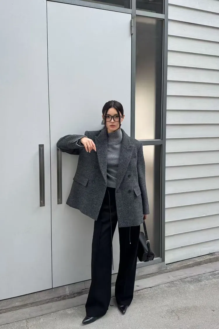 韓國代購 80%羊毛+9%羊駝毛 造型V領羊毛西裝外套