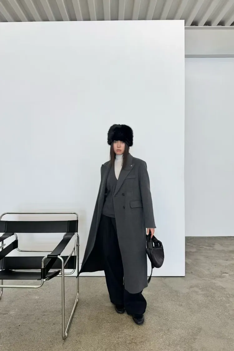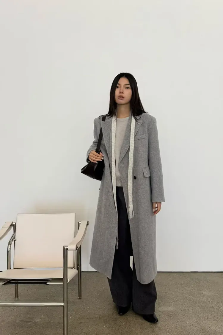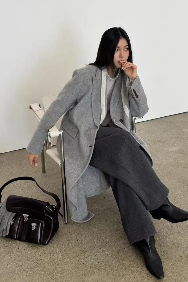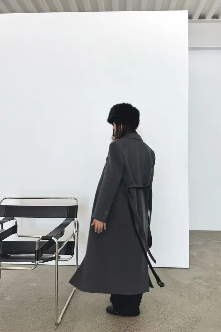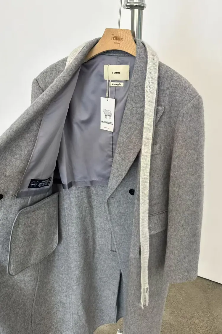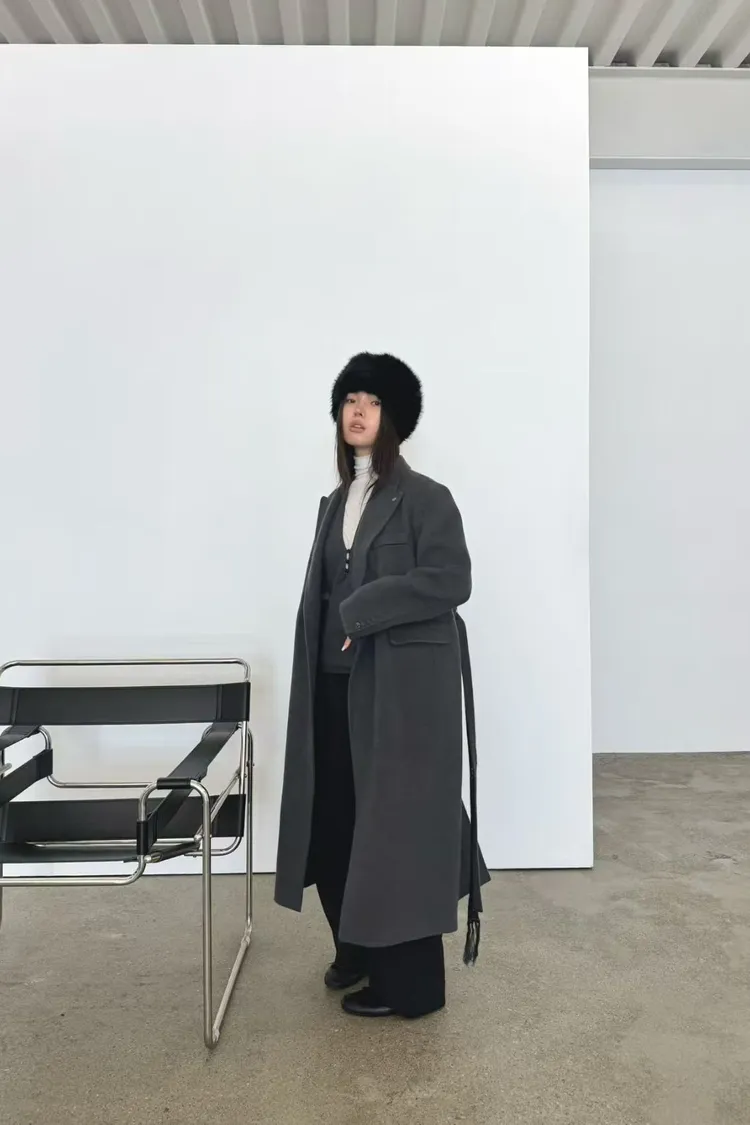 韓國代購 羊絨5%,羊毛95%繫帶大衣