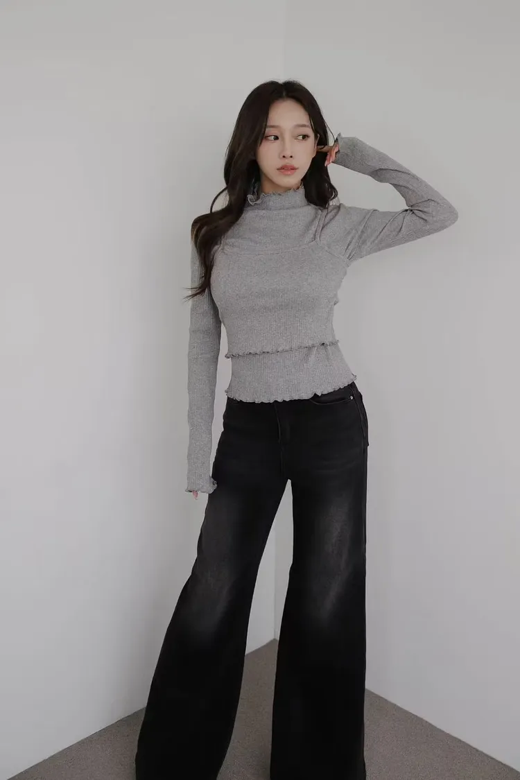 韓國代購 木耳領T恤背心套