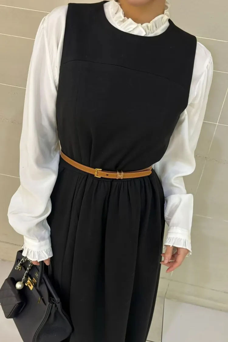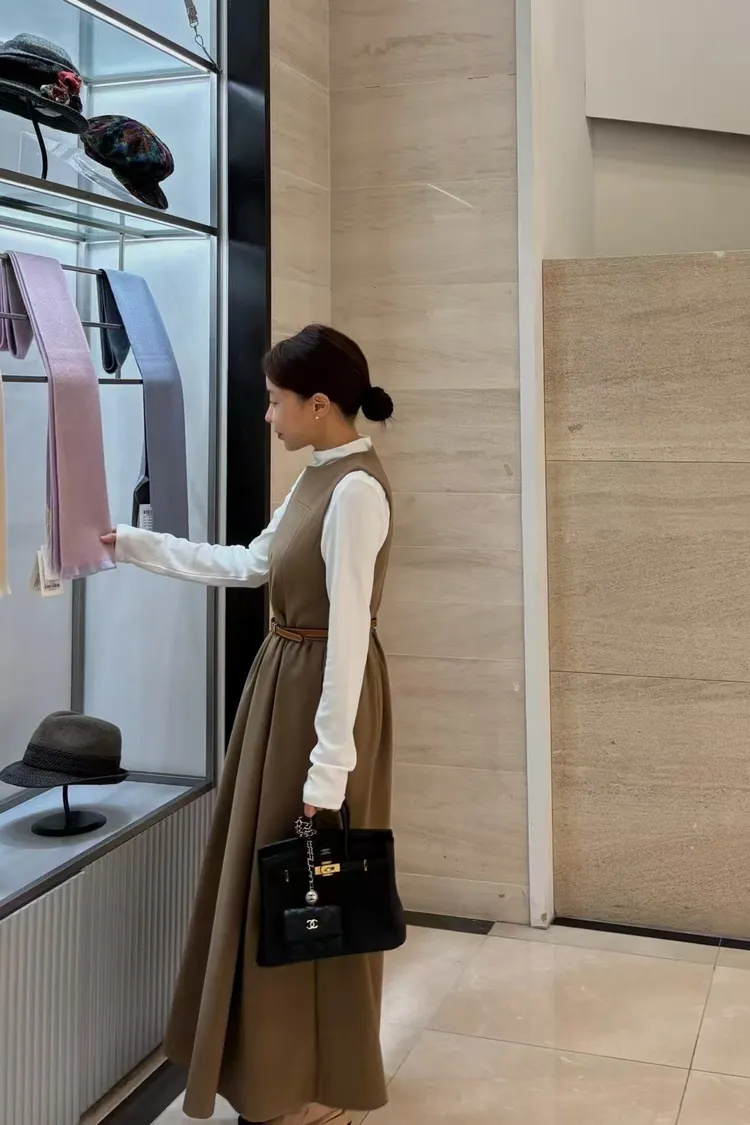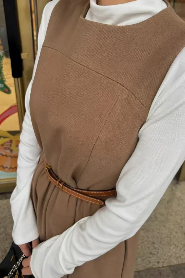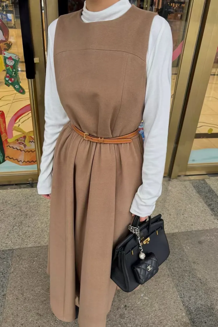 韓國代購 長版拉絨羊毛背心裙