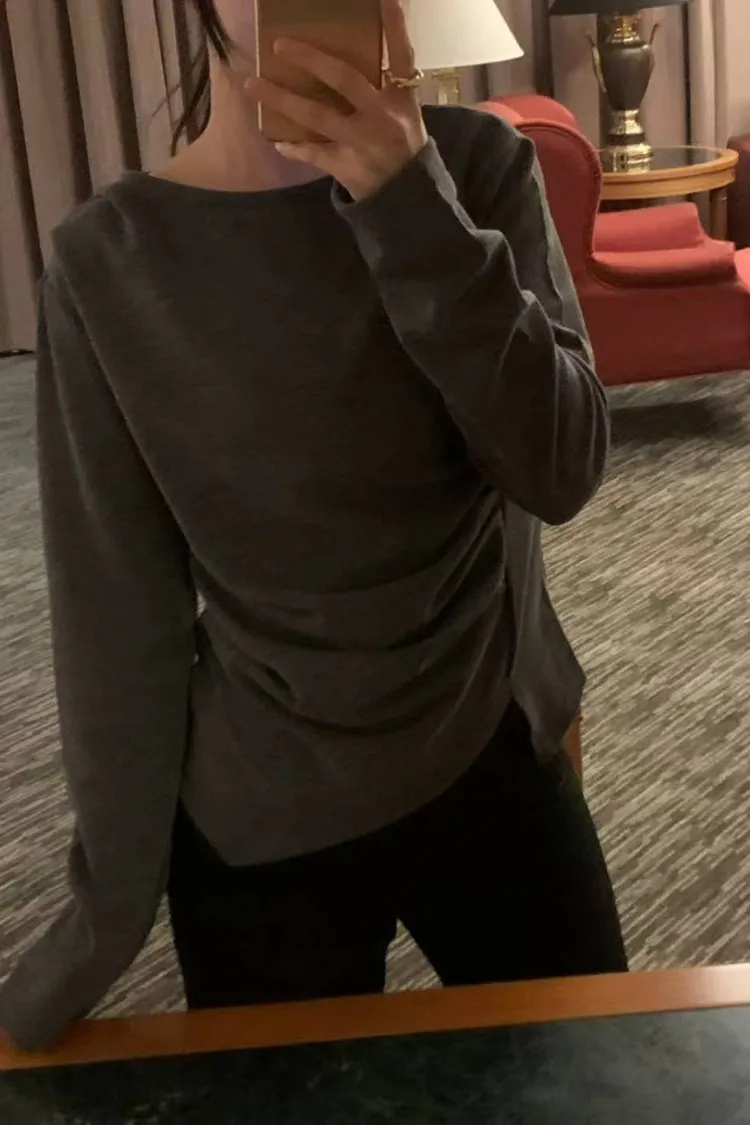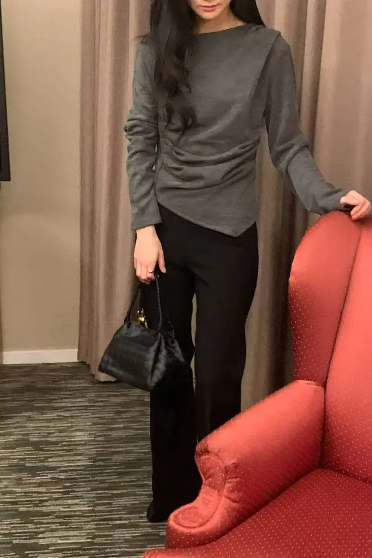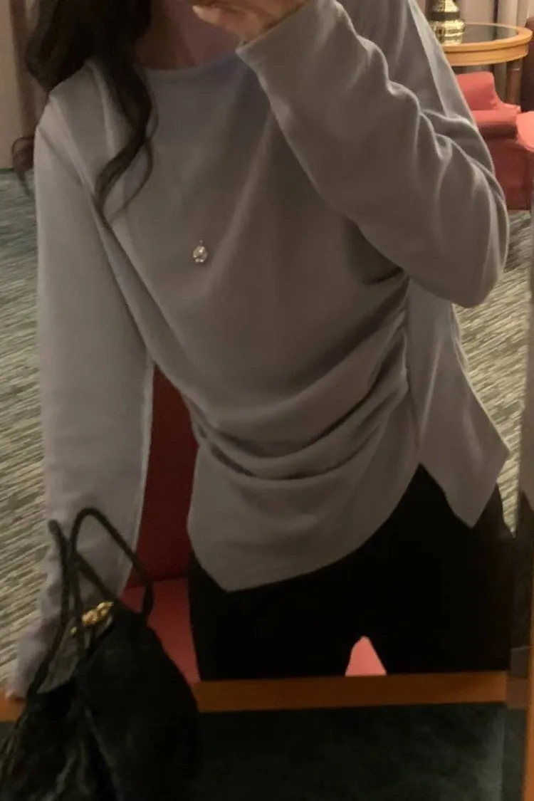 韓國代購 腰抓皺尖下擺上衣