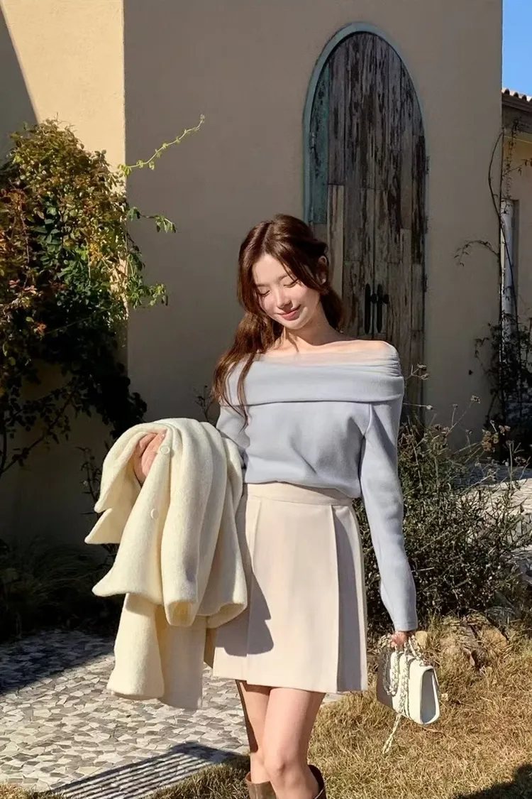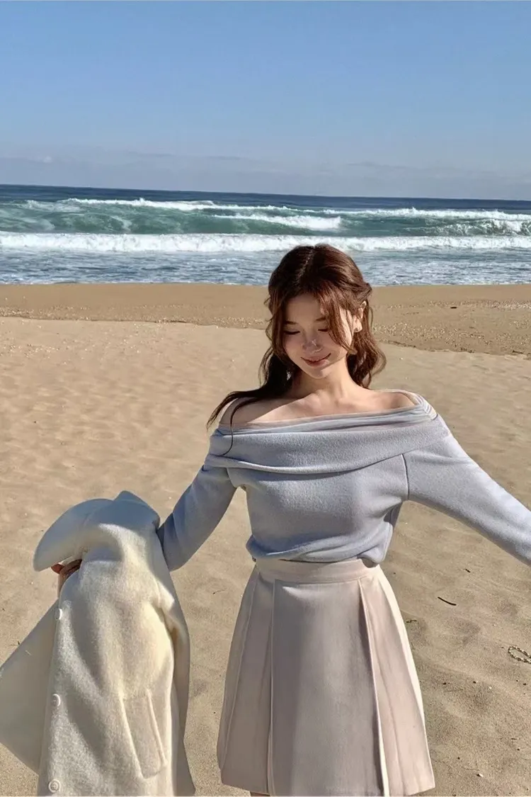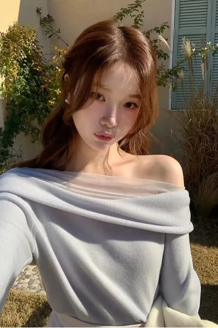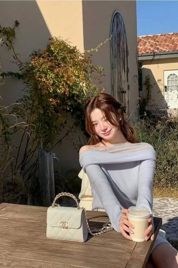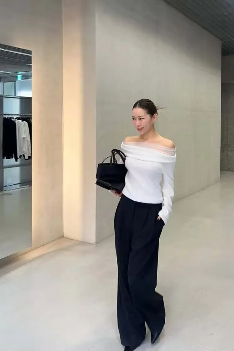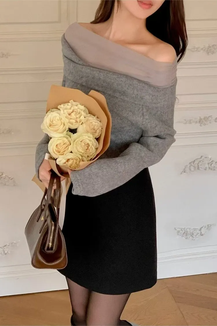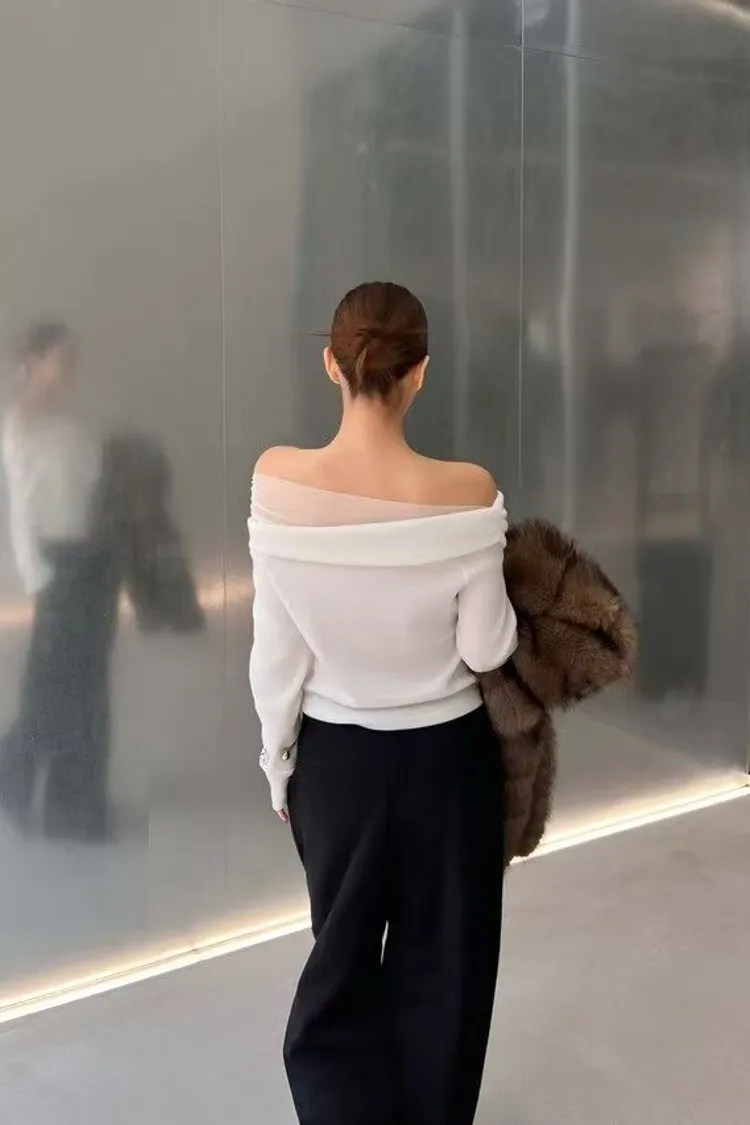 韓國代購 一字領裸紗氣質上衣