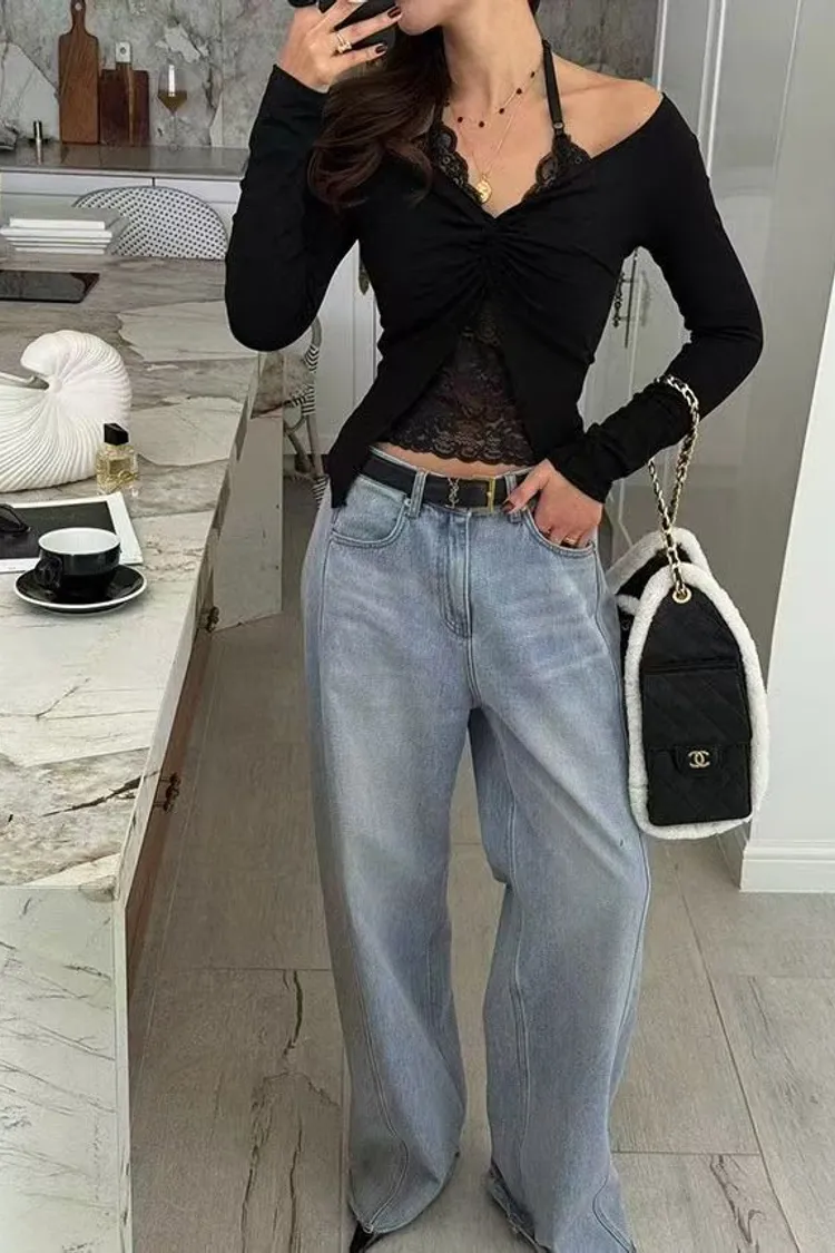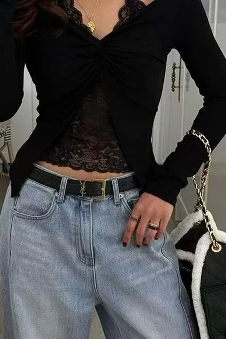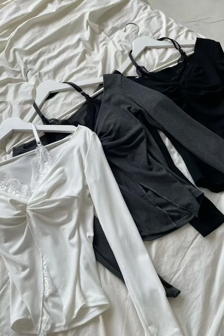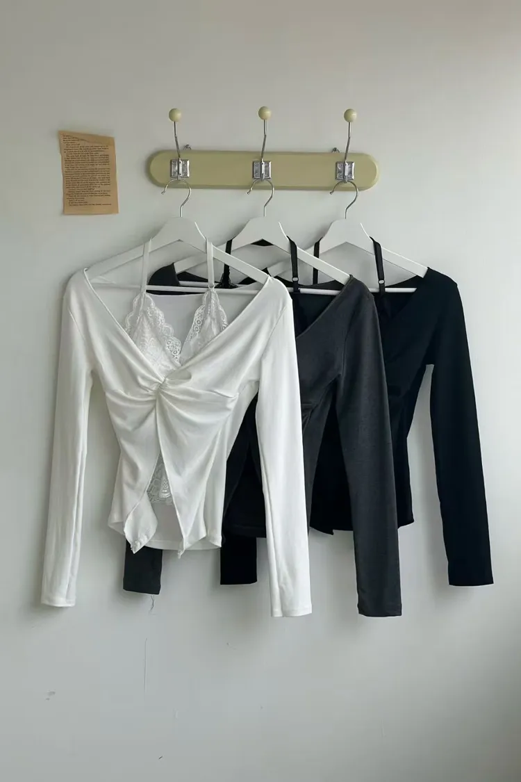 韓國代購 蕾絲背心扭結v領上衣
