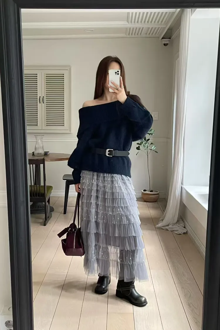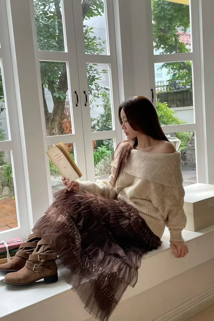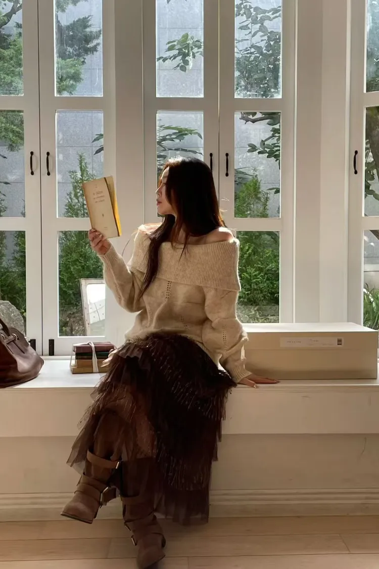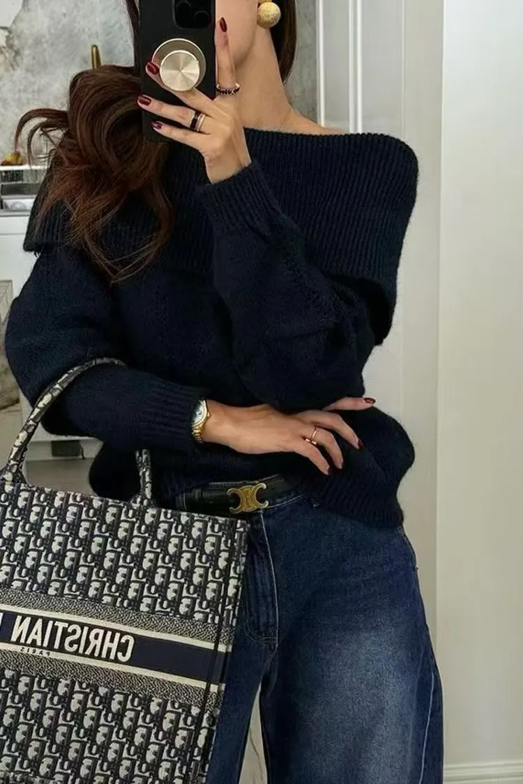 韓國代購 針織一字領毛衣