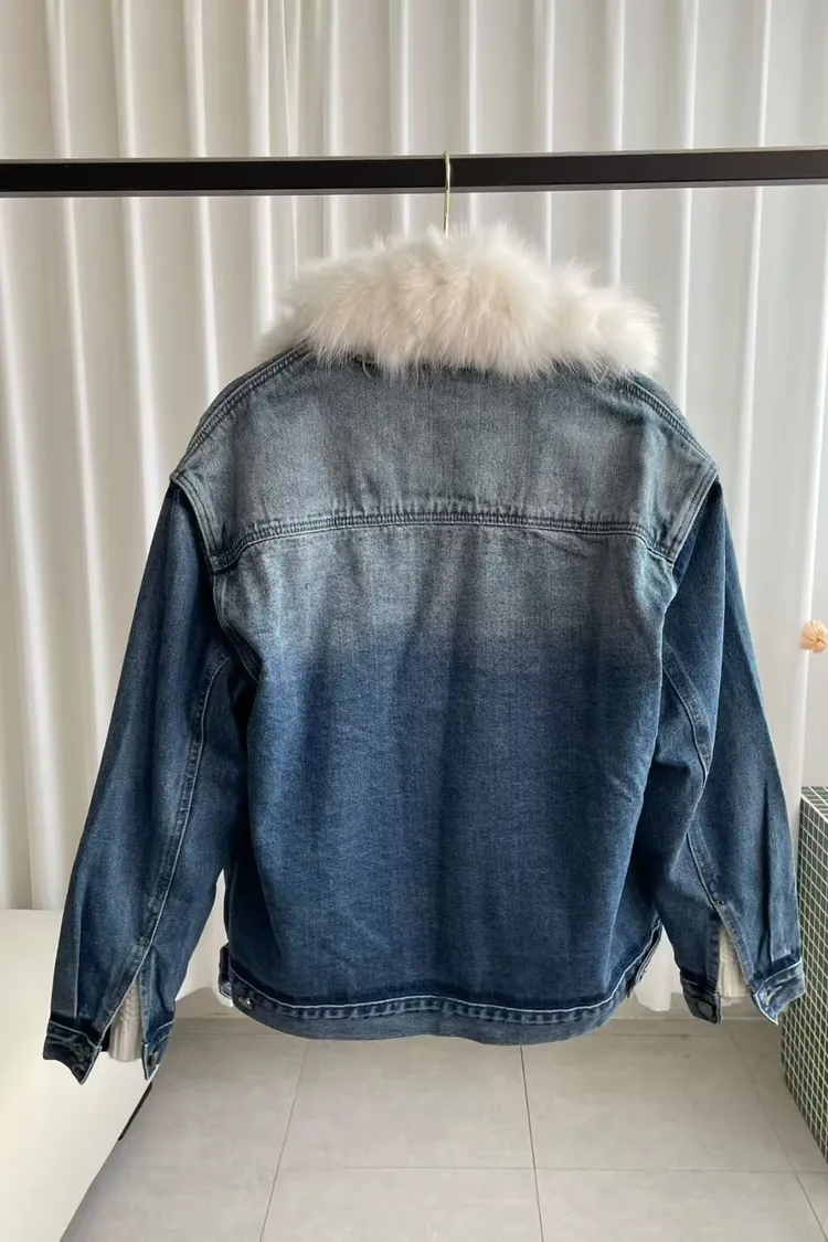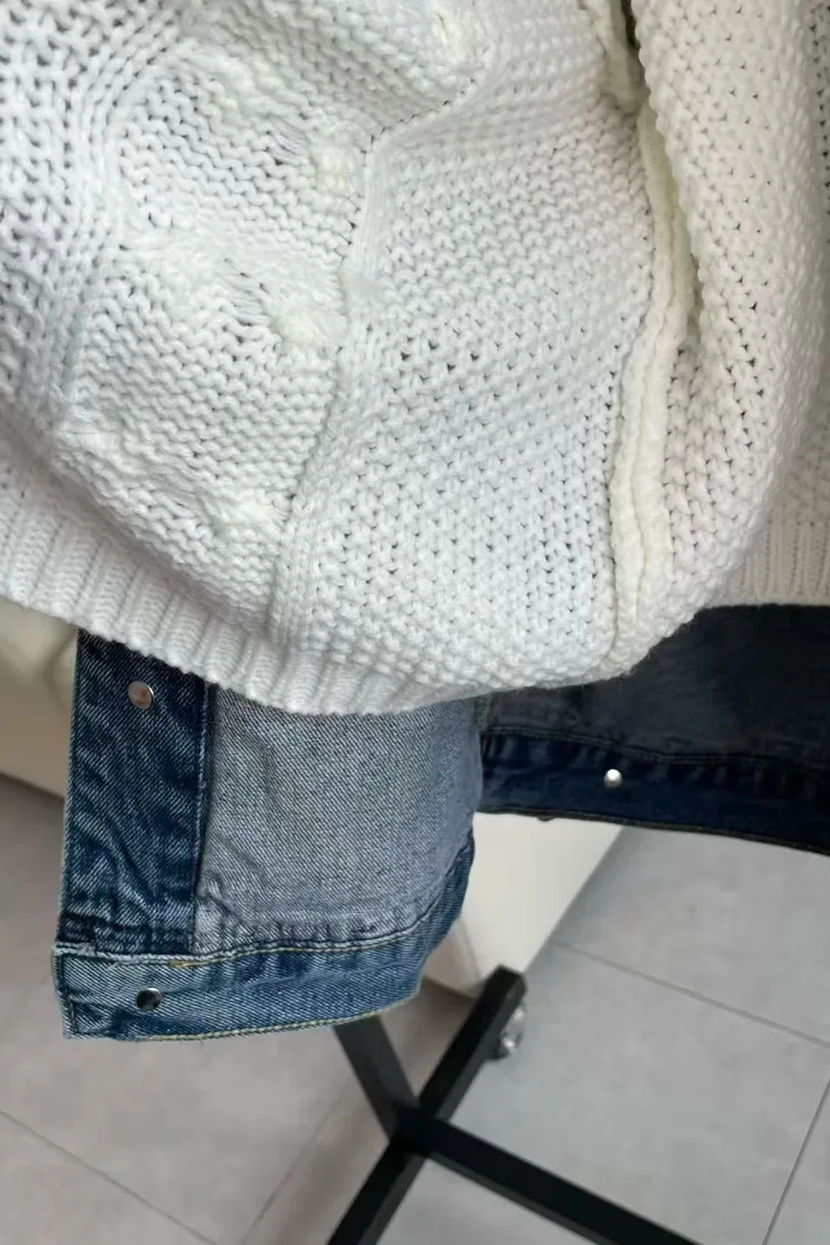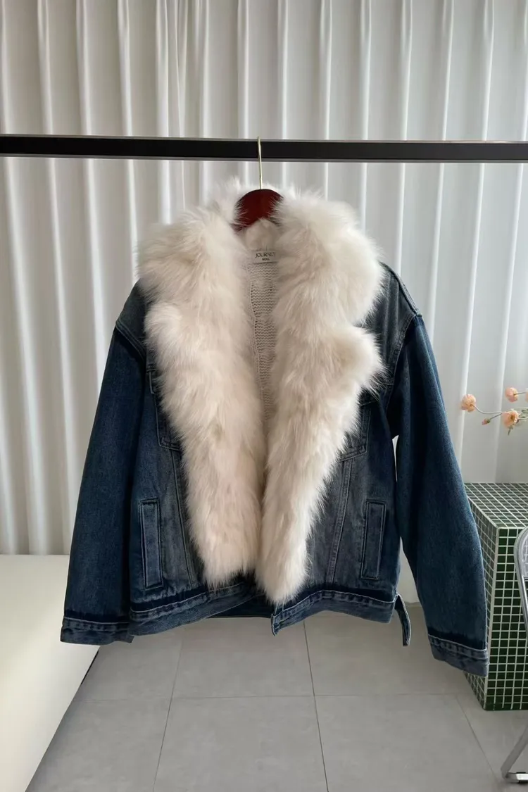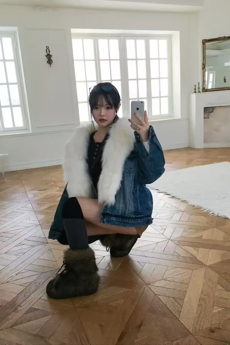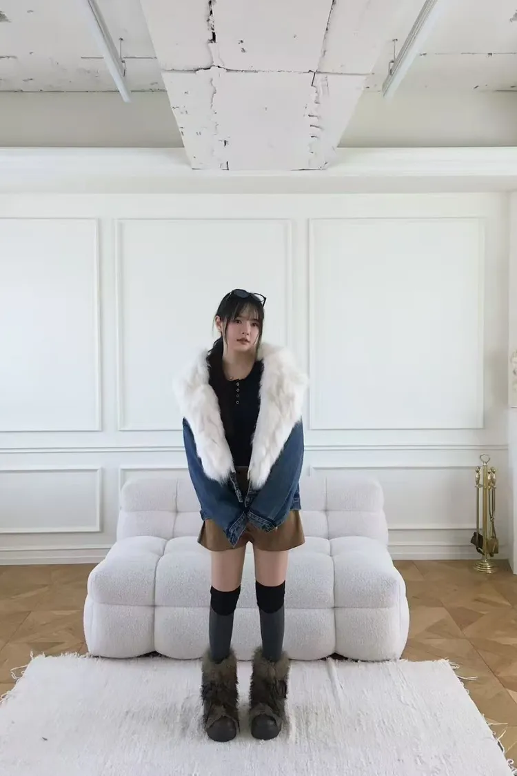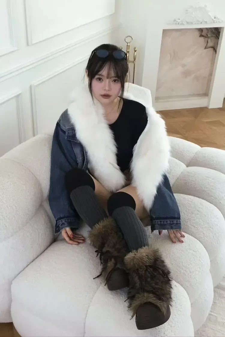 韓國代購 V領牛仔毛領針織內裡外套