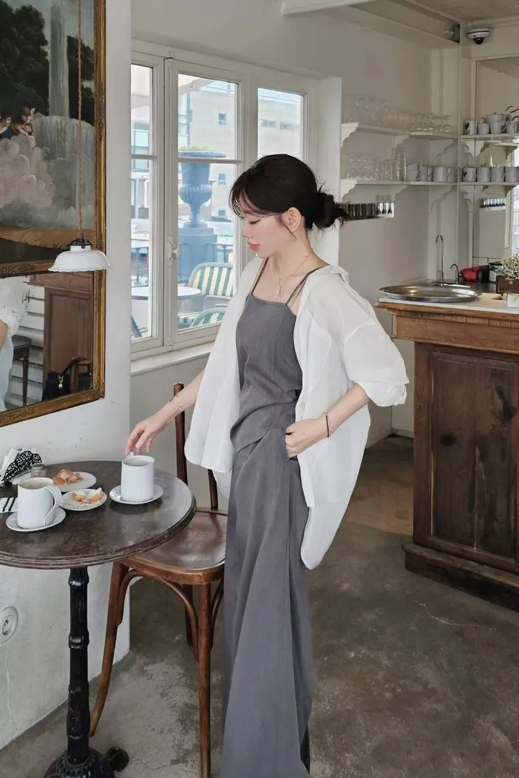 韓國代購 高智感西裝細肩帶上衣&長裙