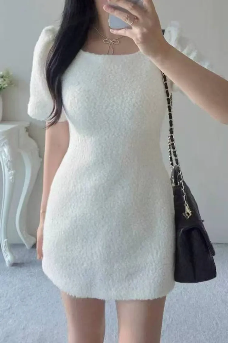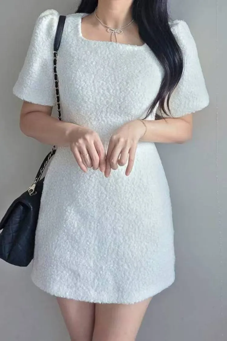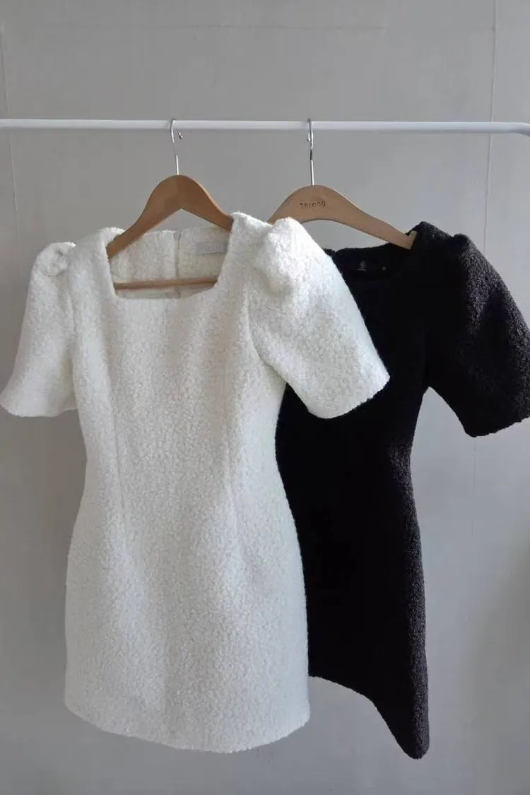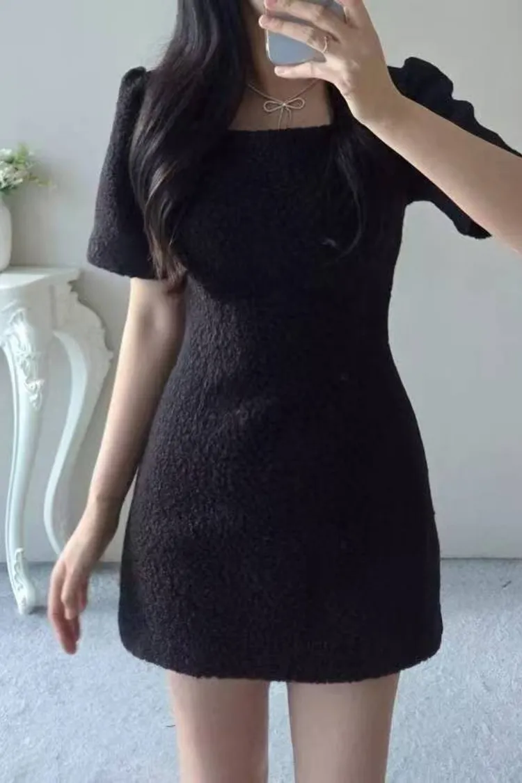 韓國代購 短袖毛呢修身連身裙