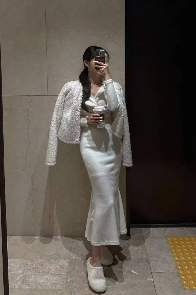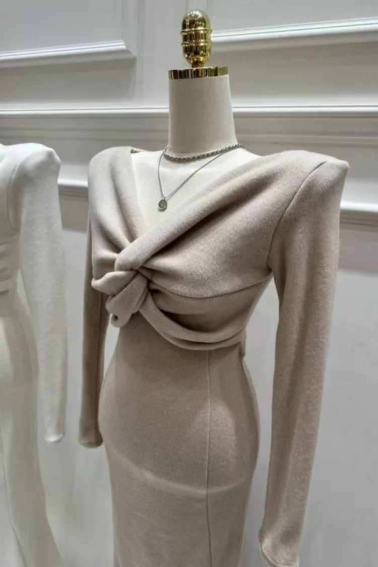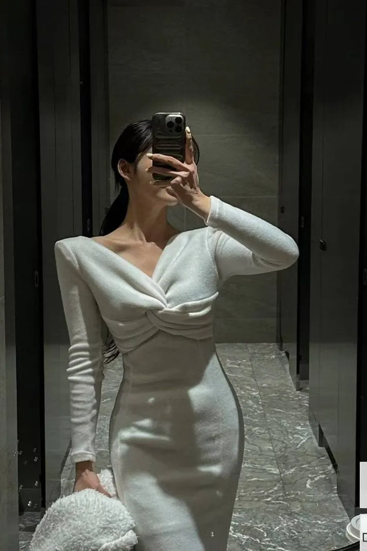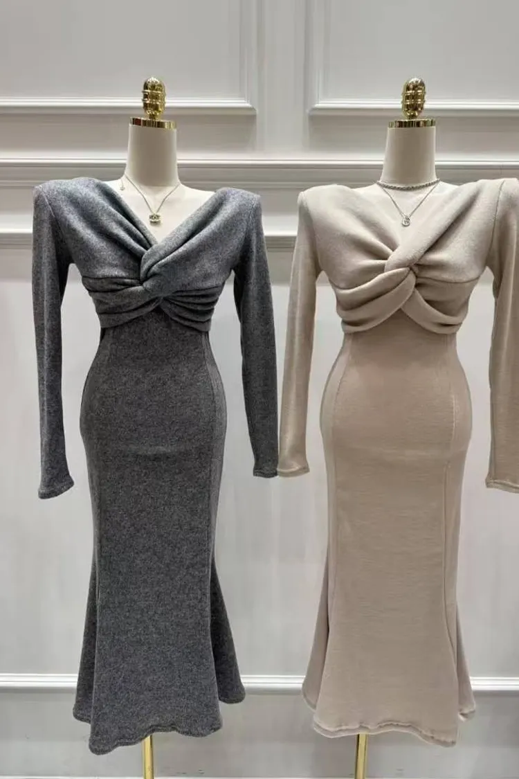 韓國代購 v領交叉扭結長洋裝