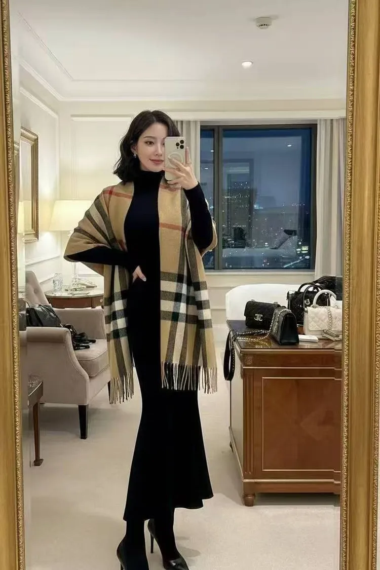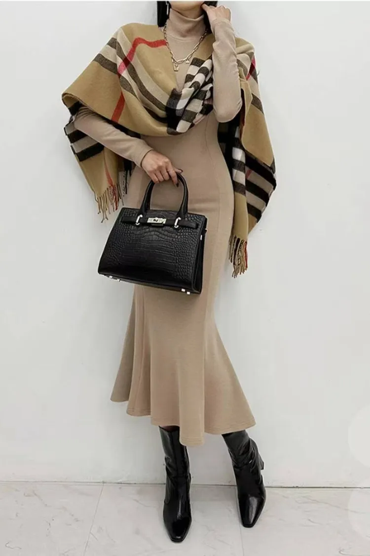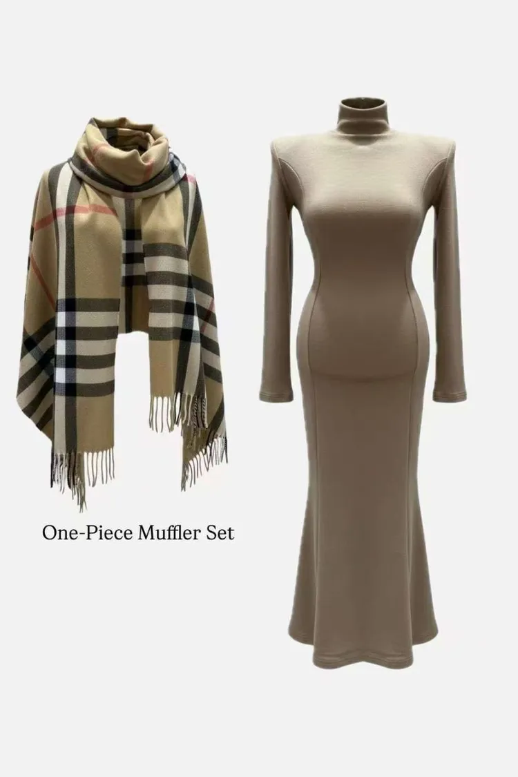 韓國代購 高領魚尾長洋裝套裝(含圍巾)